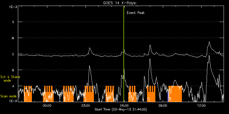 EIS Observation timeline overlay to GOES-Xray curve Code 1" 2" 40" 266" EIS Observations list for this event: STUDY ACRONYM ID DATE OBSERVED DESCRIPTION NOAA# TARGET 0 HH_Flare+AR_180x152H | 33386 | 2013/05/03 22:11:18 | AR 11731 | | Flare TIMELINE ID DATE OBSERVED FITS FILE XCEN (+W/-E) YCEN (+N/-S) DUR ----------------------------------------------------------------------------------------------------------------- 33386 | 2013/05/03 22:11:18.000 | eis_l0_20130503_221118.fits.gz | 623.92 | 322.84 | 5m17s 33386 | 2013/05/03 22:16:38.000 | eis_l0_20130503_221638.fits.gz | 624.46 | 322.92 | 5m19s 33386 | 2013/05/03 22:21:59.000 | eis_l0_20130503_222159.fits.gz | 625.08 | 322.84 | 5m18s 33386 | 2013/05/03 22:27:20.000 | eis_l0_20130503_222720.fits.gz | 625.70 | 322.84 | 5m18s 33386 | 2013/05/03 22:32:40.000 | eis_l0_20130503_223240.fits.gz | 626.23 | 322.92 | 5m19s 33386 | 2013/05/03 22:38:01.000 | eis_l0_20130503_223801.fits.gz | 626.85 | 322.69 | 5m19s 33386 | 2013/05/03 22:43:22.000 | eis_l0_20130503_224322.fits.gz | 627.39 | 322.69 | 5m19s 1 HH_Flare+AR_180x152H | 33387 | 2013/05/03 23:40:52 | AR 11731 | 1731 | Flare TIMELINE ID DATE OBSERVED FITS FILE XCEN (+W/-E) YCEN (+N/-S) DUR ----------------------------------------------------------------------------------------------------------------- 33387 | 2013/05/03 23:40:52.000 | eis_l0_20130503_234052.fits.gz | 663.84 | 227.30 | 5m17s 33387 | 2013/05/03 23:46:12.000 | eis_l0_20130503_234612.fits.gz | 664.45 | 227.23 | 5m17s 33387 | 2013/05/03 23:51:32.000 | eis_l0_20130503_235132.fits.gz | 664.99 | 227.15 | 5m18s 33387 | 2013/05/03 23:56:53.000 | eis_l0_20130503_235653.fits.gz | 665.69 | 226.99 | 5m18s 33387 | 2013/05/04 00:02:14.000 | eis_l0_20130504_000214.fits.gz | 666.31 | 226.92 | 5m18s 33387 | 2013/05/04 00:07:35.000 | eis_l0_20130504_000735.fits.gz | 666.77 | 227.15 | 5m18s 33387 | 2013/05/04 00:12:55.000 | eis_l0_20130504_001255.fits.gz | 667.39 | 226.84 | 5m18s 33387 | 2013/05/04 00:18:16.000 | eis_l0_20130504_001816.fits.gz | 668.01 | 226.99 | 5m17s 33387 | 2013/05/04 00:23:36.000 | eis_l0_20130504_002336.fits.gz | 668.62 | 226.84 | 5m18s 2 HH_Flare+AR_180x152H | 33388 | 2013/05/04 01:15:25 | AR 11731 | 1731 | Flare TIMELINE ID DATE OBSERVED FITS FILE XCEN (+W/-E) YCEN (+N/-S) DUR ----------------------------------------------------------------------------------------------------------------- 33388 | 2013/05/04 01:15:25.000 | eis_l0_20130504_011525.fits.gz | 614.44 | 226.45 | 5m18s 33388 | 2013/05/04 01:20:46.000 | eis_l0_20130504_012046.fits.gz | 615.05 | 226.45 | 5m18s 33388 | 2013/05/04 01:26:06.000 | eis_l0_20130504_012606.fits.gz | 615.59 | 226.45 | 5m19s 33388 | 2013/05/04 01:31:28.000 | eis_l0_20130504_013128.fits.gz | 616.14 | 226.30 | 5m17s 33388 | 2013/05/04 01:36:48.000 | eis_l0_20130504_013648.fits.gz | 616.75 | 226.22 | 5m18s 33388 | 2013/05/04 01:42:09.000 | eis_l0_20130504_014209.fits.gz | 617.37 | 226.14 | 5m18s 33388 | 2013/05/04 01:47:29.000 | eis_l0_20130504_014729.fits.gz | 618.07 | 226.14 | 5m17s 33388 | 2013/05/04 01:52:49.000 | eis_l0_20130504_015249.fits.gz | 618.53 | 226.07 | 5m18s 33388 | 2013/05/04 01:58:10.000 | eis_l0_20130504_015810.fits.gz | 618.99 | 226.14 | 5m18s 3 HH_Flare+AR_180x152H | 33452 | 2013/05/04 02:49:57 | AR 11731 | 1731 | Flare TIMELINE ID DATE OBSERVED FITS FILE XCEN (+W/-E) YCEN (+N/-S) DUR ----------------------------------------------------------------------------------------------------------------- 33452 | 2013/05/04 02:49:57.000 | eis_l0_20130504_024957.fits.gz | 604.49 | 226.68 | 5m17s 33452 | 2013/05/04 02:55:17.000 | eis_l0_20130504_025517.fits.gz | 605.03 | 226.68 | 5m18s 33452 | 2013/05/04 03:00:38.000 | eis_l0_20130504_030038.fits.gz | 605.73 | 226.53 | 5m18s 33452 | 2013/05/04 03:05:59.000 | eis_l0_20130504_030559.fits.gz | 606.27 | 226.37 | 5m18s 33452 | 2013/05/04 03:11:19.000 | eis_l0_20130504_031119.fits.gz | 606.81 | 226.53 | 5m19s 33452 | 2013/05/04 03:16:41.000 | eis_l0_20130504_031641.fits.gz | 607.43 | 226.37 | 5m17s 33452 | 2013/05/04 03:22:01.000 | eis_l0_20130504_032201.fits.gz | 607.97 | 226.29 | 5m18s 33452 | 2013/05/04 03:27:21.000 | eis_l0_20130504_032721.fits.gz | 608.51 | 226.37 | 5m19s 33452 | 2013/05/04 03:32:43.000 | eis_l0_20130504_033243.fits.gz | 609.13 | 226.22 | 5m17s 4 HH_Flare+AR_180x152H | 33390 | 2013/05/04 04:32:47 | AR 11731 | | Flare TIMELINE ID DATE OBSERVED FITS FILE XCEN (+W/-E) YCEN (+N/-S) DUR ----------------------------------------------------------------------------------------------------------------- 33390 | 2013/05/04 04:32:47.000 | eis_l0_20130504_043247.fits.gz | 545.65 | 224.91 | 5m17s 33390 | 2013/05/04 04:38:07.000 | eis_l0_20130504_043807.fits.gz | 546.27 | 224.75 | 5m18s 33390 | 2013/05/04 04:43:28.000 | eis_l0_20130504_044328.fits.gz | 546.81 | 224.68 | 5m18s 33390 | 2013/05/04 04:48:49.000 | eis_l0_20130504_044849.fits.gz | 547.43 | 224.60 | 5m17s 33390 | 2013/05/04 04:54:09.000 | eis_l0_20130504_045409.fits.gz | 547.97 | 224.52 | 5m18s 33390 | 2013/05/04 04:59:30.000 | eis_l0_20130504_045930.fits.gz | 548.43 | 224.60 | 5m18s 33390 | 2013/05/04 05:04:50.000 | eis_l0_20130504_050450.fits.gz | 548.97 | 224.52 | 5m19s 5 HH_Flare+AR_180x152H | 33453 | 2013/05/04 06:18:56 | AR 11731 | | Flare TIMELINE ID DATE OBSERVED FITS FILE XCEN (+W/-E) YCEN (+N/-S) DUR ----------------------------------------------------------------------------------------------------------------- 33453 | 2013/05/04 06:18:56.000 | eis_l0_20130504_061856.fits.gz | 596.79 | 94.14 | 5m18s 33453 | 2013/05/04 06:24:17.000 | eis_l0_20130504_062417.fits.gz | 597.41 | 93.83 | 5m18s 33453 | 2013/05/04 06:29:37.000 | eis_l0_20130504_062937.fits.gz | 597.95 | 93.98 | 5m18s 33453 | 2013/05/04 06:34:58.000 | eis_l0_20130504_063458.fits.gz | 598.49 | 93.60 | 5m17s 33453 | 2013/05/04 06:40:18.000 | eis_l0_20130504_064018.fits.gz | 599.03 | 93.67 | 5m18s 33453 | 2013/05/04 06:45:38.000 | eis_l0_20130504_064538.fits.gz | 599.65 | 93.83 | 5m19s 33453 | 2013/05/04 06:51