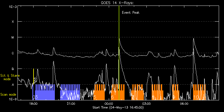 EIS Observation timeline overlay to GOES-Xray curve Code 1" 2" 40" 266" EIS Observations list for this event: STUDY ACRONYM ID DATE OBSERVED DESCRIPTION NOAA# TARGET 0 PRY_slot_contextLITE | 33507 | 2013/05/04 17:56:20 | EIS-AIA coalignment | 1734 | Active Region TIMELINE ID DATE OBSERVED FITS FILE XCEN (+W/-E) YCEN (+N/-S) DUR ----------------------------------------------------------------------------------------------------------------- 33507 | 2013/05/04 17:56:20.000 | eis_l0_20130504_175620.fits.gz | -15.29 | -0.50 | 2m56s 1 Alignment_266 | 33508 | 2013/05/04 17:59:34 | EIS-AIA coalignment | 1734 | Quiet Sun TIMELINE ID DATE OBSERVED FITS FILE XCEN (+W/-E) YCEN (+N/-S) DUR ----------------------------------------------------------------------------------------------------------------- 33508 | 2013/05/04 17:59:34.000 | eis_l0_20130504_175934.fits.gz | -132.49 | -0.58 | 1m23s 2 XRT_synop_AIA | 33509 | 2013/05/04 18:01:42 | EIS-AIA coalignment | 1734 | Quiet Sun TIMELINE ID DATE OBSERVED FITS FILE XCEN (+W/-E) YCEN (+N/-S) DUR ----------------------------------------------------------------------------------------------------------------- 33509 | 2013/05/04 18:01:42.000 | eis_l0_20130504_180142.fits.gz | -132.49 | -0.50 | 10s 3 Alignment_modify_v2 | 33461 | 2013/05/04 18:07:59 | Co-alingment. N-pole. | | Quiet Sun TIMELINE ID DATE OBSERVED FITS FILE XCEN (+W/-E) YCEN (+N/-S) DUR ----------------------------------------------------------------------------------------------------------------- 33461 | 2013/05/04 18:07:59.000 | eis_l0_20130504_180759.fits.gz | -9.55 | 944.47 | 2m34s 33461 | 2013/05/04 18:11:06.000 | eis_l0_20130504_181106.fits.gz | -9.55 | 944.62 | 2m34s 33461 | 2013/05/04 18:14:14.000 | eis_l0_20130504_181414.fits.gz | -9.55 | 944.39 | 2m34s 33461 | 2013/05/04 18:17:22.000 | eis_l0_20130504_181722.fits.gz | -9.47 | 944.32 | 2m33s 33461 | 2013/05/04 18:20:29.000 | eis_l0_20130504_182029.fits.gz | -9.55 | 944.39 | 2m34s 33461 | 2013/05/04 18:23:37.000 | eis_l0_20130504_182337.fits.gz | -9.63 | 944.62 | 2m34s 33461 | 2013/05/04 18:26:44.000 | eis_l0_20130504_182644.fits.gz | -9.47 | 944.47 | 2m34s 33461 | 2013/05/04 18:29:52.000 | eis_l0_20130504_182952.fits.gz | -9.47 | 944.47 | 2m34s 33461 | 2013/05/04 18:32:59.000 | eis_l0_20130504_183259.fits.gz | -9.47 | 944.55 | 2m34s 33461 | 2013/05/04 18:36:07.000 | eis_l0_20130504_183607.fits.gz | -9.47 | 944.62 | 2m34s 33461 | 2013/05/04 18:39:14.000 | eis_l0_20130504_183914.fits.gz | -9.47 | 944.55 | 2m34s 33461 | 2013/05/04 18:42:22.000 | eis_l0_20130504_184222.fits.gz | -9.47 | 944.55 | 2m34s 33461 | 2013/05/04 18:45:30.000 | eis_l0_20130504_184530.fits.gz | -9.47 | 944.62 | 2m33s 33461 | 2013/05/04 18:48:37.000 | eis_l0_20130504_184837.fits.gz | -9.47 | 944.47 | 2m34s 33461 | 2013/05/04 18:51:45.000 | eis_l0_20130504_185145.fits.gz | -9.47 | 944.47 | 2m34s 33461 | 2013/05/04 18:54:52.000 | eis_l0_20130504_185452.fits.gz | -9.55 | 944.55 | 2m34s 33461 | 2013/05/04 18:58:00.000 | eis_l0_20130504_185800.fits.gz | -9.63 | 944.62 | 2m34s 33461 | 2013/05/04 19:01:07.000 | eis_l0_20130504_190107.fits.gz | -9.55 | 944.47 | 2m34s 33461 | 2013/05/04 19:04:14.000 | eis_l0_20130504_190414.fits.gz | -9.55 | 944.47 | 2m34s 33461 | 2013/05/04 19:07:22.000 | eis_l0_20130504_190722.fits.gz | -9.47 | 944.55 | 2m34s 33461 | 2013/05/04 19:10:29.000 | eis_l0_20130504_191029.fits.gz | -9.47 | 944.70 | 2m34s 33461 | 2013/05/04 19:13:37.000 | eis_l0_20130504_191337.fits.gz | -9.39 | 944.47 | 2m34s 33461 | 2013/05/04 19:16:44.000 | eis_l0_20130504_191644.fits.gz | -9.55 | 944.39 | 2m34s 33461 | 2013/05/04 19:19:52.000 | eis_l0_20130504_191952.fits.gz | -9.55 | 944.39 | 2m34s 33461 | 2013/05/04 19:22:59.000 | eis_l0_20130504_192259.fits.gz | -9.47 | 944.55 | 2m35s 33461 | 2013/05/04 19:26:07.000 | eis_l0_20130504_192607.fits.gz | -9.39 | 944.55 | 2m34s 33461 | 2013/05/04 19:29:15.000 | eis_l0_20130504_192915.fits.gz | -9.47 | 944.47 | 2m33s 33461 | 2013/05/04 19:32:22.000 | eis_l0_20130504_193222.fits.gz | -9.55 | 944.55 | 2m34s 33461 | 2013/05/04 19:35:29.000 | eis_l0_20130504_193529.fits.gz | -9.55 | 944.62 | 2m34s 33461 | 2013/05/04 19:38:37.000 | eis_l0_20130504_193837.fits.gz | -9.55 | 944.62 | 2m34s 4 Alignment_modify_v2 | 33462 | 2013/05/04 20:07:45 | Co-alingment. E-limb. | | Quiet Sun TIMELINE ID DATE OBSERVED FITS FILE XCEN (+W/-E) YCEN (+N/-S) DUR ----------------------------------------------------------------------------------------------------------------- 33462 | 2013/05/04 20:07:45.000 | eis_l0_20130504_200745.fits.gz | -9893.92 | -9963.20 | 2m34s 33462 | 2013/05/04 20:10:53.000 | eis_l0_20130504_201053.fits.gz | -9893.92 | -9963.20 | 2m34s 33462 | 2013/05/04 20:14:00.000 | eis_l0_20130504_201400.fits.gz | -9893.92 | -9963.20 | 2m34s 33462 | 2013/05/04 20:17:08.000 | eis_l0_20130504_201708.fits.gz | -9893.92 | -9963.20 | 2m34s 33462 | 2013/05/04 20:20:15.000 | eis_l0_20130504_202015.fits.gz | -9893.92 | -9963.20 | 2m34s 33462 | 2013/05/04 20:23:23.000 | eis_l0_20130504_202323.fits.gz | -9893.92 | -9963.20 | 2m33s 33462 | 2013/05/04 20:26:30.000 | eis_l0_20130504_202630.fits.gz | -9893.92 | -9963.20 | 2m34s 33462 | 2013/05/04 20:29:38.000 | eis_l0_20130504_202938.fits.gz | -9893.92 | -9963.20 | 2m34s 33462 | 2013/05/04 20:32:45.000 | eis_l0_20130504_203245.fits.gz | -9893.92 | -9963.20 | 2m34s 33462 | 2013/05/04 20:35:53.000 | eis_l0_20130504_203553.fits.gz | -9893.92 | -9963.20 | 2m34s 33462 | 2013/05/04 20:39:00.000 | eis_l0_20130504_203900.fits.gz | -9893.92 | -9963.20 | 2m34s 33462 | 2013/05/04 20:42:08.000 | eis_l0_20130504_204208.fits.gz | -9893.92 | -9963.20 | 2m34s 33462 | 2013/05/04 20:45:15.000 | eis_l0_20130504_204515.fits.gz | -9893.92 | -9963.20 | 2m34s 33462 | 2013/05/04 20:48:23.000 | eis_l0_20130504_204823.fits.gz | -9893.92 | -9963.20 | 2m34s 33462 | 2013/05/04 20:51:31.000 | eis_l0_20130504_205131.fits.gz | -9893.92 | -9963.20 | 2m33s 33462 | 2013/05/04 20:54:38.000 | eis_l0_20130504_205438.fits.gz | -9893.92 | -9963.20 