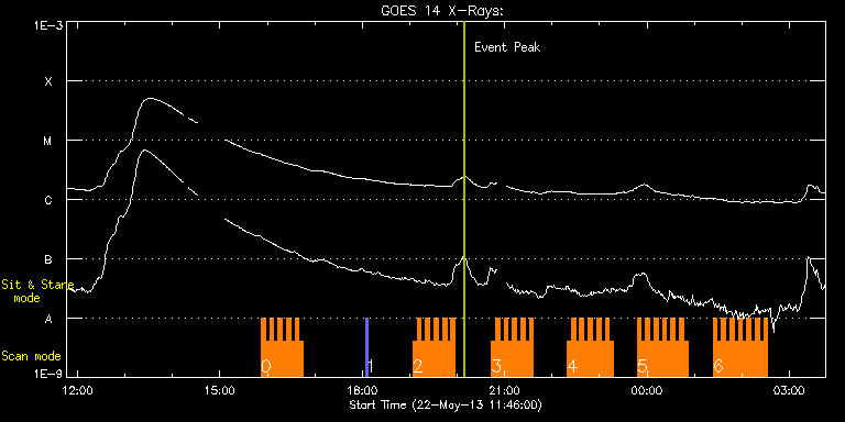EIS Observation timeline overlay to GOES-Xray curve Code 1" 2" 40" 266" EIS Observations list for this event: STUDY ACRONYM ID DATE OBSERVED DESCRIPTION NOAA# TARGET 0 HH_Flare+AR_180x152 | 33836 | 2013/05/22 15:52:08 | Flare Observations of AR | 1748 | Flare TIMELINE ID DATE OBSERVED FITS FILE XCEN (+W/-E) YCEN (+N/-S) DUR ----------------------------------------------------------------------------------------------------------------- 33836 | 2013/05/22 15:52:08.000 | eis_l0_20130522_155208.fits.gz | 562.07 | 170.99 | 5m19s 33836 | 2013/05/22 15:57:29.000 | eis_l0_20130522_155729.fits.gz | 562.77 | 170.91 | 5m19s 33836 | 2013/05/22 16:02:51.000 | eis_l0_20130522_160251.fits.gz | 563.31 | 170.76 | 5m18s 33836 | 2013/05/22 16:08:12.000 | eis_l0_20130522_160812.fits.gz | 564.00 | 170.68 | 5m18s 33836 | 2013/05/22 16:13:33.000 | eis_l0_20130522_161333.fits.gz | 564.62 | 170.84 | 5m18s 33836 | 2013/05/22 16:18:54.000 | eis_l0_20130522_161854.fits.gz | 565.24 | 170.76 | 5m18s 33836 | 2013/05/22 16:24:15.000 | eis_l0_20130522_162415.fits.gz | 565.94 | 170.76 | 5m18s 33836 | 2013/05/22 16:29:36.000 | eis_l0_20130522_162936.fits.gz | 566.55 | 170.84 | 5m17s 33836 | 2013/05/22 16:34:56.000 | eis_l0_20130522_163456.fits.gz | 567.25 | 170.68 | 5m18s 33836 | 2013/05/22 16:40:17.000 | eis_l0_20130522_164017.fits.gz | 567.94 | 170.68 | 5m18s 1 PRY_slot_contextLITE | 33810 | 2013/05/22 18:04:51 | EIS-AIA alignment | | Active Region TIMELINE ID DATE OBSERVED FITS FILE XCEN (+W/-E) YCEN (+N/-S) DUR ----------------------------------------------------------------------------------------------------------------- 33810 | 2013/05/22 18:04:51.000 | eis_l0_20130522_180451.fits.gz | -15.37 | -0.58 | 2m56s 2 HH_Flare+AR_180x152 | 33837 | 2013/05/22 19:03:58 | Flare Observations of AR | 1748 | Flare TIMELINE ID DATE OBSERVED FITS FILE XCEN (+W/-E) YCEN (+N/-S) DUR ----------------------------------------------------------------------------------------------------------------- 33837 | 2013/05/22 19:03:58.000 | eis_l0_20130522_190358.fits.gz | 584.94 | 170.29 | 5m18s 33837 | 2013/05/22 19:09:19.000 | eis_l0_20130522_190919.fits.gz | 585.63 | 170.06 | 5m17s 33837 | 2013/05/22 19:14:39.000 | eis_l0_20130522_191439.fits.gz | 586.10 | 170.06 | 5m19s 33837 | 2013/05/22 19:20:00.000 | eis_l0_20130522_192000.fits.gz | 586.79 | 170.06 | 5m18s 33837 | 2013/05/22 19:25:21.000 | eis_l0_20130522_192521.fits.gz | 587.41 | 170.14 | 5m18s 33837 | 2013/05/22 19:30:41.000 | eis_l0_20130522_193041.fits.gz | 588.18 | 169.99 | 5m18s 33837 | 2013/05/22 19:36:02.000 | eis_l0_20130522_193602.fits.gz | 588.72 | 170.06 | 5m18s 33837 | 2013/05/22 19:41:23.000 | eis_l0_20130522_194123.fits.gz | 589.34 | 169.99 | 5m19s 33837 | 2013/05/22 19:46:44.000 | eis_l0_20130522_194644.fits.gz | 589.96 | 169.99 | 5m18s 33837 | 2013/05/22 19:52:05.000 | eis_l0_20130522_195205.fits.gz | 590.58 | 169.91 | 5m17s 3 HH_Flare+AR_180x152 | 33838 | 2013/05/22 20:43:09 | Flare Observations of AR | 1748 | Flare TIMELINE ID DATE OBSERVED FITS FILE XCEN (+W/-E) YCEN (+N/-S) DUR ----------------------------------------------------------------------------------------------------------------- 33838 | 2013/05/22 20:43:09.000 | eis_l0_20130522_204309.fits.gz | 596.60 | 169.75 | 5m18s 33838 | 2013/05/22 20:48:30.000 | eis_l0_20130522_204830.fits.gz | 597.22 | 169.52 | 5m17s 33838 | 2013/05/22 20:53:50.000 | eis_l0_20130522_205350.fits.gz | 597.76 | 169.60 | 5m18s 33838 | 2013/05/22 20:59:11.000 | eis_l0_20130522_205911.fits.gz | 598.46 | 169.52 | 5m18s 33838 | 2013/05/22 21:04:31.000 | eis_l0_20130522_210431.fits.gz | 599.00 | 169.68 | 5m19s 33838 | 2013/05/22 21:09:52.000 | eis_l0_20130522_210952.fits.gz | 599.54 | 169.68 | 5m19s 33838 | 2013/05/22 21:15:13.000 | eis_l0_20130522_211513.fits.gz | 600.31 | 169.52 | 5m19s 33838 | 2013/05/22 21:20:34.000 | eis_l0_20130522_212034.fits.gz | 600.85 | 169.45 | 5m18s 33838 | 2013/05/22 21:25:55.000 | eis_l0_20130522_212555.fits.gz | 601.62 | 169.60 | 5m19s 33838 | 2013/05/22 21:31:17.000 | eis_l0_20130522_213117.fits.gz | 602.24 | 169.52 | 5m18s 4 HH_Flare+AR_180x152 | 33839 | 2013/05/22 22:19:00 | Flare Observations of AR | 1748 | Flare TIMELINE ID DATE OBSERVED FITS FILE XCEN (+W/-E) YCEN (+N/-S) DUR ----------------------------------------------------------------------------------------------------------------- 33839 | 2013/05/22 22:19:00.000 | eis_l0_20130522_221900.fits.gz | 607.65 | 169.37 | 5m18s 33839 | 2013/05/22 22:24:21.000 | eis_l0_20130522_222421.fits.gz | 608.19 | 169.21 | 5m18s 33839 | 2013/05/22 22:29:42.000 | eis_l0_20130522_222942.fits.gz | 608.89 | 169.21 | 5m17s 33839 | 2013/05/22 22:35:02.000 | eis_l0_20130522_223502.fits.gz | 609.50 | 169.29 | 5m17s 33839 | 2013/05/22 22:40:22.000 | eis_l0_20130522_224022.fits.gz | 610.12 | 169.21 | 5m18s 33839 | 2013/05/22 22:45:43.000 | eis_l0_20130522_224543.fits.gz | 610.74 | 169.06 | 5m18s 33839 | 2013/05/22 22:51:04.000 | eis_l0_20130522_225104.fits.gz | 611.28 | 168.98 | 5m19s 33839 | 2013/05/22 22:56:25.000 | eis_l0_20130522_225625.fits.gz | 611.90 | 169.14 | 5m18s 33839 | 2013/05/22 23:01:46.000 | eis_l0_20130522_230146.fits.gz | 612.52 | 169.14 | 5m18s 33839 | 2013/05/22 23:07:06.000 | eis_l0_20130522_230706.fits.gz | 613.13 | 169.06 | 5m18s 33839 | 2013/05/22 23:12:27.000 | eis_l0_20130522_231227.fits.gz | 613.67 | 169.06 | 5m17s 5 HH_Flare+AR_180x152 | 33840 | 2013/05/22 23:47:35 | Flare Observations of AR | 1748 | Flare TIMELINE ID DATE OBSERVED FITS FILE XCEN (+W/-E) YCEN (+N/-S) DUR ----------------------------------------------------------------------------------------------------------------- 33840 | 2013/05/22 23:47:35.000 | eis_l0_20130522_234735.fits.gz | 617.69 | 168.98 | 5m18s 33840 | 2013/05/22 23:52:56.000 | eis_l0_20130522_235256.fits.gz | 618.39 | 168.98 | 5m18s 33840 | 2013/05/22 23:58:17.000 | eis_l0_20130522_235817.fits.gz | 619.01 | 168.98 | 5m17s 33840 | 2013/05/23 00:03:37.000 | eis_l0_20130523_000337.fits.gz | 619.54 | 168.90 | 5m17s 33840 | 