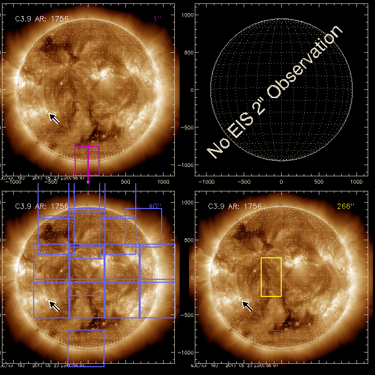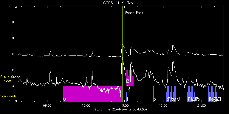 EIS Observation timeline overlay to GOES-Xray curve Code 1" 2" 40" 266" EIS Observations list for this event: STUDY ACRONYM ID DATE OBSERVED DESCRIPTION NOAA# TARGET 0 SK_CH_DIAG_320x384 | 33870 | 2013/05/23 10:13:20 | HOP 081 | | Coronal Hole TIMELINE ID DATE OBSERVED FITS FILE XCEN (+W/-E) YCEN (+N/-S) DUR ----------------------------------------------------------------------------------------------------------------- 33870 | 2013/05/23 10:13:20.000 | eis_l0_20130523_101320.fits.gz | -11.79 | -950.65 | 4h35m38s 1 PRY_slot_contextLITE | 33896 | 2013/05/23 15:06:34 | Limb Full CCD | | Active Region TIMELINE ID DATE OBSERVED FITS FILE XCEN (+W/-E) YCEN (+N/-S) DUR ----------------------------------------------------------------------------------------------------------------- 33896 | 2013/05/23 15:06:34.000 | eis_l0_20130523_150634.fits.gz | -27.19 | -950.34 | 2m56s 2 HPW023_FULLCCD_300s | 33897 | 2013/05/23 15:09:42 | Limb Full CCD | | Quiet Sun TIMELINE ID DATE OBSERVED FITS FILE XCEN (+W/-E) YCEN (+N/-S) DUR ----------------------------------------------------------------------------------------------------------------- 33897 | 2013/05/23 15:09:42.000 | eis_l0_20130523_150942.fits.gz | 0.02 | -1000.41 | 5m 33897 | 2013/05/23 15:15:09.000 | eis_l0_20130523_151509.fits.gz | 0.10 | -1000.41 | 5m 33897 | 2013/05/23 15:20:36.000 | eis_l0_20130523_152036.fits.gz | 0.10 | -1000.41 | 5m1s 33897 | 2013/05/23 15:26:04.000 | eis_l0_20130523_152604.fits.gz | 0.10 | -1000.49 | 5m 33897 | 2013/05/23 15:31:31.000 | eis_l0_20130523_153131.fits.gz | 0.17 | -1000.49 | 5m 33897 | 2013/05/23 15:36:58.000 | eis_l0_20130523_153658.fits.gz | 0.10 | -1000.57 | 5m 3 PRY_slot_contextLITE | 33872 | 2013/05/23 17:13:35 | EIS-AIA Align | | Active Region TIMELINE ID DATE OBSERVED FITS FILE XCEN (+W/-E) YCEN (+N/-S) DUR ----------------------------------------------------------------------------------------------------------------- 33872 | 2013/05/23 17:13:35.000 | eis_l0_20130523_171335.fits.gz | -15.21 | -0.35 | 2m56s 4 XRT_synop_AIA | 33873 | 2013/05/23 17:16:49 | EIS-AIA Align | | Quiet Sun TIMELINE ID DATE OBSERVED FITS FILE XCEN (+W/-E) YCEN (+N/-S) DUR ----------------------------------------------------------------------------------------------------------------- 33873 | 2013/05/23 17:16:49.000 | eis_l0_20130523_171649.fits.gz | -132.49 | -0.50 | 11s 5 full_sun_slot_scan_2 | 33844 | 2013/05/23 18:14:57 | HOP 130 | 1745 | Quiet Sun TIMELINE ID DATE OBSERVED FITS FILE XCEN (+W/-E) YCEN (+N/-S) DUR ----------------------------------------------------------------------------------------------------------------- 33844 | 2013/05/23 18:14:57.000 | eis_l0_20130523_181457.fits.gz | 920.80 | 185.42 | 5m27s 6 full_sun_slot_scan_2 | 33845 | 2013/05/23 18:20:29 | HOP 130 | 1746 | Quiet Sun TIMELINE ID DATE OBSERVED FITS FILE XCEN (+W/-E) YCEN (+N/-S) DUR ----------------------------------------------------------------------------------------------------------------- 33845 | 2013/05/23 18:20:29.000 | eis_l0_20130523_182029.fits.gz | 920.72 | -286.42 | 5m27s 7 full_sun_slot_scan_2 | 33846 | 2013/05/23 18:30:43 | HOP 130 | 1748 | Quiet Sun TIMELINE ID DATE OBSERVED FITS FILE XCEN (+W/-E) YCEN (+N/-S) DUR ----------------------------------------------------------------------------------------------------------------- 33846 | 2013/05/23 18:30:43.000 | eis_l0_20130523_183043.fits.gz | 452.68 | 185.42 | 5m28s 8 full_sun_slot_scan_2 | 33847 | 2013/05/23 18:36:16 | HOP 130 | | Quiet Sun TIMELINE ID DATE OBSERVED FITS FILE XCEN (+W/-E) YCEN (+N/-S) DUR ----------------------------------------------------------------------------------------------------------------- 33847 | 2013/05/23 18:36:16.000 | eis_l0_20130523_183616.fits.gz | 452.68 | -286.42 | 5m27s 9 full_sun_slot_scan_2 | 33848 | 2013/05/23 18:46:44 | HOP 130 | | Quiet Sun TIMELINE ID DATE OBSERVED FITS FILE XCEN (+W/-E) YCEN (+N/-S) DUR ----------------------------------------------------------------------------------------------------------------- 33848 | 2013/05/23 18:46:44.000 | eis_l0_20130523_184644.fits.gz | -15.29 | 185.50 | 5m27s 10 full_sun_slot_scan_2 | 33849 | 2013/05/23 18:52:16 | HOP 130 | 1754 | Quiet Sun TIMELINE ID DATE OBSERVED FITS FILE XCEN (+W/-E) YCEN (+N/-S) DUR ----------------------------------------------------------------------------------------------------------------- 33849 | 2013/05/23 18:52:16.000 | eis_l0_20130523_185216.fits.gz | -15.21 | -286.35 | 5m26s 11 full_sun_slot_scan_2 | 33850 | 2013/05/23 19:51:43 | HOP 130 | 1753 | Quiet Sun TIMELINE ID DATE OBSERVED FITS FILE XCEN (+W/-E) YCEN (+N/-S) DUR ----------------------------------------------------------------------------------------------------------------- 33850 | 2013/05/23 19:51:43.000 | eis_l0_20130523_195143.fits.gz | -483.26 | 185.50 | 5m28s 12 full_sun_slot_scan_2 | 33851 | 2013/05/23 19:57:16 | HOP 130 | 1754 | Quiet Sun TIMELINE ID DATE OBSERVED FITS FILE XCEN (+W/-E) YCEN (+N/-S) DUR ----------------------------------------------------------------------------------------------------------------- 33851 | 2013/05/23 19:57:16.000 | eis_l0_20130523_195716.fits.gz | -483.18 | -286.35 | 5m26s 13 full_sun_slot_scan_2 | 33852 | 2013/05/23 20:07:43 | HOP 130 | | Quiet Sun TIMELINE ID DATE OBSERVED FITS FILE XCEN (+W/-E) YCEN (+N/-S) DUR ----------------------------------------------------------------------------------------------------------------- 33852 | 2013/05/23 20:07:43.000 | eis_l0_20130523_200743.fits.gz | -9884.69 | -9777.20 | 5m27s 14 full_sun_slot_scan_2 | 33853 | 2013/05/23 20:13:16 | HOP 130 | | Quiet Sun TIMELINE ID DATE OBSERVED FITS FILE XCEN (+W/-E) YCEN (+N/-S) DUR ----------------------------------------------------------------------------------------------------------------- 33853 | 2013/05/23 20:13:16.000 | eis_l0_20130523_201316.fits.gz | -9884.69 | -10249.20 | 5m26s 15 full_sun_slot_scan_2 | 33854 | 2013/05/23 20:23:43 | HOP 130 | | Quiet Sun TIMELINE ID DATE OBS