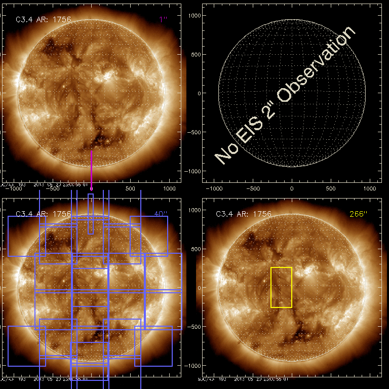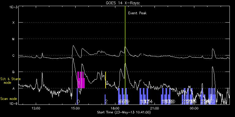 EIS Observation timeline overlay to GOES-Xray curve Code 1" 2" 40" 266" EIS Observations list for this event: STUDY ACRONYM ID DATE OBSERVED DESCRIPTION NOAA# TARGET 0 PRY_slot_contextLITE | 33896 | 2013/05/23 15:06:34 | Limb Full CCD | | Active Region TIMELINE ID DATE OBSERVED FITS FILE XCEN (+W/-E) YCEN (+N/-S) DUR ----------------------------------------------------------------------------------------------------------------- 33896 | 2013/05/23 15:06:34.000 | eis_l0_20130523_150634.fits.gz | -27.19 | -950.34 | 2m56s 1 HPW023_FULLCCD_300s | 33897 | 2013/05/23 15:09:42 | Limb Full CCD | | Quiet Sun TIMELINE ID DATE OBSERVED FITS FILE XCEN (+W/-E) YCEN (+N/-S) DUR ----------------------------------------------------------------------------------------------------------------- 33897 | 2013/05/23 15:09:42.000 | eis_l0_20130523_150942.fits.gz | 0.02 | -1000.41 | 5m 33897 | 2013/05/23 15:15:09.000 | eis_l0_20130523_151509.fits.gz | 0.10 | -1000.41 | 5m 33897 | 2013/05/23 15:20:36.000 | eis_l0_20130523_152036.fits.gz | 0.10 | -1000.41 | 5m1s 33897 | 2013/05/23 15:26:04.000 | eis_l0_20130523_152604.fits.gz | 0.10 | -1000.49 | 5m 33897 | 2013/05/23 15:31:31.000 | eis_l0_20130523_153131.fits.gz | 0.17 | -1000.49 | 5m 33897 | 2013/05/23 15:36:58.000 | eis_l0_20130523_153658.fits.gz | 0.10 | -1000.57 | 5m 2 PRY_slot_contextLITE | 33872 | 2013/05/23 17:13:35 | EIS-AIA Align | | Active Region TIMELINE ID DATE OBSERVED FITS FILE XCEN (+W/-E) YCEN (+N/-S) DUR ----------------------------------------------------------------------------------------------------------------- 33872 | 2013/05/23 17:13:35.000 | eis_l0_20130523_171335.fits.gz | -15.21 | -0.35 | 2m56s 3 XRT_synop_AIA | 33873 | 2013/05/23 17:16:49 | EIS-AIA Align | | Quiet Sun TIMELINE ID DATE OBSERVED FITS FILE XCEN (+W/-E) YCEN (+N/-S) DUR ----------------------------------------------------------------------------------------------------------------- 33873 | 2013/05/23 17:16:49.000 | eis_l0_20130523_171649.fits.gz | -132.49 | -0.50 | 11s 4 full_sun_slot_scan_2 | 33844 | 2013/05/23 18:14:57 | HOP 130 | 1745 | Quiet Sun TIMELINE ID DATE OBSERVED FITS FILE XCEN (+W/-E) YCEN (+N/-S) DUR ----------------------------------------------------------------------------------------------------------------- 33844 | 2013/05/23 18:14:57.000 | eis_l0_20130523_181457.fits.gz | 920.80 | 185.42 | 5m27s 5 full_sun_slot_scan_2 | 33845 | 2013/05/23 18:20:29 | HOP 130 | 1746 | Quiet Sun TIMELINE ID DATE OBSERVED FITS FILE XCEN (+W/-E) YCEN (+N/-S) DUR ----------------------------------------------------------------------------------------------------------------- 33845 | 2013/05/23 18:20:29.000 | eis_l0_20130523_182029.fits.gz | 920.72 | -286.42 | 5m27s 6 full_sun_slot_scan_2 | 33846 | 2013/05/23 18:30:43 | HOP 130 | 1748 | Quiet Sun TIMELINE ID DATE OBSERVED FITS FILE XCEN (+W/-E) YCEN (+N/-S) DUR ----------------------------------------------------------------------------------------------------------------- 33846 | 2013/05/23 18:30:43.000 | eis_l0_20130523_183043.fits.gz | 452.68 | 185.42 | 5m28s 7 full_sun_slot_scan_2 | 33847 | 2013/05/23 18:36:16 | HOP 130 | | Quiet Sun TIMELINE ID DATE OBSERVED FITS FILE XCEN (+W/-E) YCEN (+N/-S) DUR ----------------------------------------------------------------------------------------------------------------- 33847 | 2013/05/23 18:36:16.000 | eis_l0_20130523_183616.fits.gz | 452.68 | -286.42 | 5m27s 8 full_sun_slot_scan_2 | 33848 | 2013/05/23 18:46:44 | HOP 130 | | Quiet Sun TIMELINE ID DATE OBSERVED FITS FILE XCEN (+W/-E) YCEN (+N/-S) DUR ----------------------------------------------------------------------------------------------------------------- 33848 | 2013/05/23 18:46:44.000 | eis_l0_20130523_184644.fits.gz | -15.29 | 185.50 | 5m27s 9 full_sun_slot_scan_2 | 33849 | 2013/05/23 18:52:16 | HOP 130 | 1754 | Quiet Sun TIMELINE ID DATE OBSERVED FITS FILE XCEN (+W/-E) YCEN (+N/-S) DUR ----------------------------------------------------------------------------------------------------------------- 33849 | 2013/05/23 18:52:16.000 | eis_l0_20130523_185216.fits.gz | -15.21 | -286.35 | 5m26s 10 full_sun_slot_scan_2 | 33850 | 2013/05/23 19:51:43 | HOP 130 | 1753 | Quiet Sun TIMELINE ID DATE OBSERVED FITS FILE XCEN (+W/-E) YCEN (+N/-S) DUR ----------------------------------------------------------------------------------------------------------------- 33850 | 2013/05/23 19:51:43.000 | eis_l0_20130523_195143.fits.gz | -483.26 | 185.50 | 5m28s 11 full_sun_slot_scan_2 | 33851 | 2013/05/23 19:57:16 | HOP 130 | 1754 | Quiet Sun TIMELINE ID DATE OBSERVED FITS FILE XCEN (+W/-E) YCEN (+N/-S) DUR ----------------------------------------------------------------------------------------------------------------- 33851 | 2013/05/23 19:57:16.000 | eis_l0_20130523_195716.fits.gz | -483.18 | -286.35 | 5m26s 12 full_sun_slot_scan_2 | 33852 | 2013/05/23 20:07:43 | HOP 130 | | Quiet Sun TIMELINE ID DATE OBSERVED FITS FILE XCEN (+W/-E) YCEN (+N/-S) DUR ----------------------------------------------------------------------------------------------------------------- 33852 | 2013/05/23 20:07:43.000 | eis_l0_20130523_200743.fits.gz | -9884.69 | -9777.20 | 5m27s 13 full_sun_slot_scan_2 | 33853 | 2013/05/23 20:13:16 | HOP 130 | | Quiet Sun TIMELINE ID DATE OBSERVED FITS FILE XCEN (+W/-E) YCEN (+N/-S) DUR ----------------------------------------------------------------------------------------------------------------- 33853 | 2013/05/23 20:13:16.000 | eis_l0_20130523_201316.fits.gz | -9884.69 | -10249.20 | 5m26s 14 full_sun_slot_scan_2 | 33854 | 2013/05/23 20:23:43 | HOP 130 | | Quiet Sun TIMELINE ID DATE OBSERVED FITS FILE XCEN (+W/-E) YCEN (+N/-S) DUR ----------------------------------------------------------------------------------------------------------------- 33854 | 2013/05/23 20:23:43.000 | eis_l0_20130523_202343.fits.gz | 738.26 | 655.55 | 5m27s 15 full_sun_slot_scan_2 | 33855 | 2013/05/23 21:28:43 | HOP 130 | | Quiet Sun TIMELINE ID DATE OBSERVED