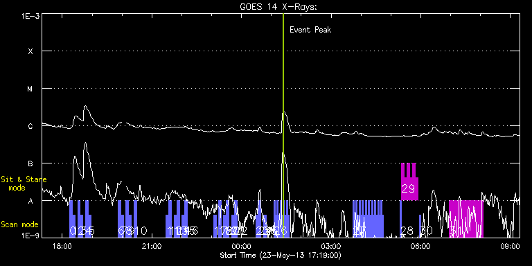 EIS Observation timeline overlay to GOES-Xray curve Code 1" 2" 40" 266" EIS Observations list for this event: STUDY ACRONYM ID DATE OBSERVED DESCRIPTION NOAA# TARGET 0 full_sun_slot_scan_2 | 33844 | 2013/05/23 18:14:57 | HOP 130 | 1745 | Quiet Sun TIMELINE ID DATE OBSERVED FITS FILE XCEN (+W/-E) YCEN (+N/-S) DUR ----------------------------------------------------------------------------------------------------------------- 33844 | 2013/05/23 18:14:57.000 | eis_l0_20130523_181457.fits.gz | 920.80 | 185.42 | 5m27s 1 full_sun_slot_scan_2 | 33845 | 2013/05/23 18:20:29 | HOP 130 | 1746 | Quiet Sun TIMELINE ID DATE OBSERVED FITS FILE XCEN (+W/-E) YCEN (+N/-S) DUR ----------------------------------------------------------------------------------------------------------------- 33845 | 2013/05/23 18:20:29.000 | eis_l0_20130523_182029.fits.gz | 920.72 | -286.42 | 5m27s 2 full_sun_slot_scan_2 | 33846 | 2013/05/23 18:30:43 | HOP 130 | 1748 | Quiet Sun TIMELINE ID DATE OBSERVED FITS FILE XCEN (+W/-E) YCEN (+N/-S) DUR ----------------------------------------------------------------------------------------------------------------- 33846 | 2013/05/23 18:30:43.000 | eis_l0_20130523_183043.fits.gz | 452.68 | 185.42 | 5m28s 3 full_sun_slot_scan_2 | 33847 | 2013/05/23 18:36:16 | HOP 130 | | Quiet Sun TIMELINE ID DATE OBSERVED FITS FILE XCEN (+W/-E) YCEN (+N/-S) DUR ----------------------------------------------------------------------------------------------------------------- 33847 | 2013/05/23 18:36:16.000 | eis_l0_20130523_183616.fits.gz | 452.68 | -286.42 | 5m27s 4 full_sun_slot_scan_2 | 33848 | 2013/05/23 18:46:44 | HOP 130 | | Quiet Sun TIMELINE ID DATE OBSERVED FITS FILE XCEN (+W/-E) YCEN (+N/-S) DUR ----------------------------------------------------------------------------------------------------------------- 33848 | 2013/05/23 18:46:44.000 | eis_l0_20130523_184644.fits.gz | -15.29 | 185.50 | 5m27s 5 full_sun_slot_scan_2 | 33849 | 2013/05/23 18:52:16 | HOP 130 | 1754 | Quiet Sun TIMELINE ID DATE OBSERVED FITS FILE XCEN (+W/-E) YCEN (+N/-S) DUR ----------------------------------------------------------------------------------------------------------------- 33849 | 2013/05/23 18:52:16.000 | eis_l0_20130523_185216.fits.gz | -15.21 | -286.35 | 5m26s 6 full_sun_slot_scan_2 | 33850 | 2013/05/23 19:51:43 | HOP 130 | 1753 | Quiet Sun TIMELINE ID DATE OBSERVED FITS FILE XCEN (+W/-E) YCEN (+N/-S) DUR ----------------------------------------------------------------------------------------------------------------- 33850 | 2013/05/23 19:51:43.000 | eis_l0_20130523_195143.fits.gz | -483.26 | 185.50 | 5m28s 7 full_sun_slot_scan_2 | 33851 | 2013/05/23 19:57:16 | HOP 130 | 1754 | Quiet Sun TIMELINE ID DATE OBSERVED FITS FILE XCEN (+W/-E) YCEN (+N/-S) DUR ----------------------------------------------------------------------------------------------------------------- 33851 | 2013/05/23 19:57:16.000 | eis_l0_20130523_195716.fits.gz | -483.18 | -286.35 | 5m26s 8 full_sun_slot_scan_2 | 33852 | 2013/05/23 20:07:43 | HOP 130 | | Quiet Sun TIMELINE ID DATE OBSERVED FITS FILE XCEN (+W/-E) YCEN (+N/-S) DUR ----------------------------------------------------------------------------------------------------------------- 33852 | 2013/05/23 20:07:43.000 | eis_l0_20130523_200743.fits.gz | -9884.69 | -9777.20 | 5m27s 9 full_sun_slot_scan_2 | 33853 | 2013/05/23 20:13:16 | HOP 130 | | Quiet Sun TIMELINE ID DATE OBSERVED FITS FILE XCEN (+W/-E) YCEN (+N/-S) DUR ----------------------------------------------------------------------------------------------------------------- 33853 | 2013/05/23 20:13:16.000 | eis_l0_20130523_201316.fits.gz | -9884.69 | -10249.20 | 5m26s 10 full_sun_slot_scan_2 | 33854 | 2013/05/23 20:23:43 | HOP 130 | | Quiet Sun TIMELINE ID DATE OBSERVED FITS FILE XCEN (+W/-E) YCEN (+N/-S) DUR ----------------------------------------------------------------------------------------------------------------- 33854 | 2013/05/23 20:23:43.000 | eis_l0_20130523_202343.fits.gz | 738.26 | 655.55 | 5m27s 11 full_sun_slot_scan_2 | 33855 | 2013/05/23 21:28:43 | HOP 130 | | Quiet Sun TIMELINE ID DATE OBSERVED FITS FILE XCEN (+W/-E) YCEN (+N/-S) DUR ----------------------------------------------------------------------------------------------------------------- 33855 | 2013/05/23 21:28:43.000 | eis_l0_20130523_212843.fits.gz | 395.90 | 1032.60 | 5m27s 12 full_sun_slot_scan_2 | 33856 | 2013/05/23 21:34:16 | HOP 130 | | Quiet Sun TIMELINE ID DATE OBSERVED FITS FILE XCEN (+W/-E) YCEN (+N/-S) DUR ----------------------------------------------------------------------------------------------------------------- 33856 | 2013/05/23 21:34:16.000 | eis_l0_20130523_213416.fits.gz | 395.82 | 560.60 | 5m26s 13 full_sun_slot_scan_2 | 33857 | 2013/05/23 21:44:43 | HOP 130 | | Quiet Sun TIMELINE ID DATE OBSERVED FITS FILE XCEN (+W/-E) YCEN (+N/-S) DUR ----------------------------------------------------------------------------------------------------------------- 33857 | 2013/05/23 21:44:43.000 | eis_l0_20130523_214443.fits.gz | -15.37 | 1126.53 | 5m28s 14 full_sun_slot_scan_2 | 33858 | 2013/05/23 21:50:16 | HOP 130 | | Quiet Sun TIMELINE ID DATE OBSERVED FITS FILE XCEN (+W/-E) YCEN (+N/-S) DUR ----------------------------------------------------------------------------------------------------------------- 33858 | 2013/05/23 21:50:16.000 | eis_l0_20130523_215016.fits.gz | -15.21 | 654.53 | 5m26s 15 full_sun_slot_scan_2 | 33859 | 2013/05/23 22:00:43 | HOP 130 | | Quiet Sun TIMELINE ID DATE OBSERVED FITS FILE XCEN (+W/-E) YCEN (+N/-S) DUR ----------------------------------------------------------------------------------------------------------------- 33859 | 2013/05/23 22:00:43.000 | eis_l0_20130523_220043.fits.gz | -426.48 | 1032.44 | 5m27s 16 full_sun_slot_scan_2 | 33860 | 2013/05/23 22:06:16 | HOP 130 | | Quiet Sun TIMELINE ID DATE OBSERVED FITS FILE XCEN (+W/-E) YCEN (+N/-S) DUR -------------------------------------------------------------------