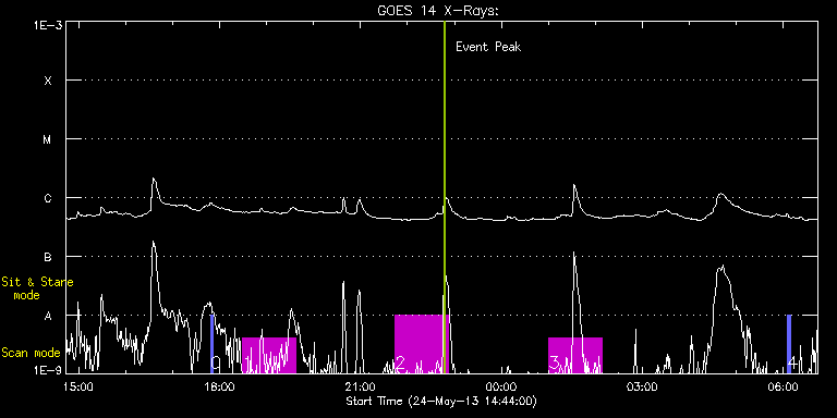 EIS Observation timeline overlay to GOES-Xray curve Code 1" 2" 40" 266" EIS Observations list for this event: STUDY ACRONYM ID DATE OBSERVED DESCRIPTION NOAA# TARGET 0 PRY_slot_contextLITE | 33884 | 2013/05/24 17:48:57 | EIS-AIA Align | 1753 | Active Region TIMELINE ID DATE OBSERVED FITS FILE XCEN (+W/-E) YCEN (+N/-S) DUR ----------------------------------------------------------------------------------------------------------------- 33884 | 2013/05/24 17:48:57.000 | eis_l0_20130524_174857.fits.gz | -15.21 | -0.35 | 2m56s 1 HPW022_VEL_480x512v1 | 33889 | 2013/05/24 18:29:47 | Fast AR Raster | 1754 | Active Region TIMELINE ID DATE OBSERVED FITS FILE XCEN (+W/-E) YCEN (+N/-S) DUR ----------------------------------------------------------------------------------------------------------------- 33889 | 2013/05/24 18:29:47.000 | eis_l0_20130524_182947.fits.gz | -306.20 | -327.33 | 1h7m38s 2 HPW022_VEL_480x512v1 | 33890 | 2013/05/24 21:44:35 | Fast AR Raster | 1754 | Active Region TIMELINE ID DATE OBSERVED FITS FILE XCEN (+W/-E) YCEN (+N/-S) DUR ----------------------------------------------------------------------------------------------------------------- 33890 | 2013/05/24 21:44:35.000 | eis_l0_20130524_214435.fits.gz | -280.55 | -327.26 | 1h7m40s 3 HPW022_VEL_480x512v1 | 33891 | 2013/05/25 01:01:00 | Fast AR Raster | 1756 | Active Region TIMELINE ID DATE OBSERVED FITS FILE XCEN (+W/-E) YCEN (+N/-S) DUR ----------------------------------------------------------------------------------------------------------------- 33891 | 2013/05/25 01:01:00.000 | eis_l0_20130525_010100.fits.gz | -254.44 | -327.26 | 1h7m40s 4 PRY_slot_contextLITE | 33880 | 2013/05/25 06:05:35 | Full CCD QS Disk Center Context | 1753 | Active Region TIMELINE ID DATE OBSERVED FITS FILE XCEN (+W/-E) YCEN (+N/-S) DUR ----------------------------------------------------------------------------------------------------------------- 33880 | 2013/05/25 06:05:35.000 | eis_l0_20130525_060535.fits.gz | -15.21 | -0.42 | 2m57s : Check study information : Download file : View thumbnails For this event, also check for: