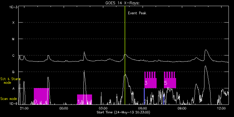 EIS Observation timeline overlay to GOES-Xray curve Code 1" 2" 40" 266" EIS Observations list for this event: STUDY ACRONYM ID DATE OBSERVED DESCRIPTION NOAA# TARGET 0 HPW022_VEL_480x512v1 | 33890 | 2013/05/24 21:44:35 | Fast AR Raster | 1754 | Active Region TIMELINE ID DATE OBSERVED FITS FILE XCEN (+W/-E) YCEN (+N/-S) DUR ----------------------------------------------------------------------------------------------------------------- 33890 | 2013/05/24 21:44:35.000 | eis_l0_20130524_214435.fits.gz | -280.55 | -327.26 | 1h7m40s 1 HPW022_VEL_480x512v1 | 33891 | 2013/05/25 01:01:00 | Fast AR Raster | 1756 | Active Region TIMELINE ID DATE OBSERVED FITS FILE XCEN (+W/-E) YCEN (+N/-S) DUR ----------------------------------------------------------------------------------------------------------------- 33891 | 2013/05/25 01:01:00.000 | eis_l0_20130525_010100.fits.gz | -254.44 | -327.26 | 1h7m40s 2 PRY_slot_contextLITE | 33880 | 2013/05/25 06:05:35 | Full CCD QS Disk Center Context | 1753 | Active Region TIMELINE ID DATE OBSERVED FITS FILE XCEN (+W/-E) YCEN (+N/-S) DUR ----------------------------------------------------------------------------------------------------------------- 33880 | 2013/05/25 06:05:35.000 | eis_l0_20130525_060535.fits.gz | -15.21 | -0.42 | 2m57s 3 HPW023_FULLCCD_300s | 33881 | 2013/05/25 06:08:43 | Full CCD QS Disk Center | | Quiet Sun TIMELINE ID DATE OBSERVED FITS FILE XCEN (+W/-E) YCEN (+N/-S) DUR ----------------------------------------------------------------------------------------------------------------- 33881 | 2013/05/25 06:08:43.000 | eis_l0_20130525_060843.fits.gz | 219.83 | -28.50 | 5m 33881 | 2013/05/25 06:14:10.000 | eis_l0_20130525_061410.fits.gz | 219.91 | -28.42 | 5m 33881 | 2013/05/25 06:19:37.000 | eis_l0_20130525_061937.fits.gz | 219.83 | -28.42 | 5m 33881 | 2013/05/25 06:25:05.000 | eis_l0_20130525_062505.fits.gz | 219.83 | -28.50 | 5m 33881 | 2013/05/25 06:30:32.000 | eis_l0_20130525_063032.fits.gz | 219.91 | -28.50 | 5m 33881 | 2013/05/25 06:35:59.000 | eis_l0_20130525_063559.fits.gz | 219.83 | -28.42 | 5m1s 33881 | 2013/05/25 06:41:27.000 | eis_l0_20130525_064127.fits.gz | 219.83 | -28.50 | 5m 33881 | 2013/05/25 06:46:54.000 | eis_l0_20130525_064654.fits.gz | 219.91 | -28.50 | 5m 33881 | 2013/05/25 06:52:21.000 | eis_l0_20130525_065221.fits.gz | 219.91 | -28.42 | 5m 33881 | 2013/05/25 06:57:49.000 | eis_l0_20130525_065749.fits.gz | 219.83 | -28.35 | 5m 4 PRY_slot_contextLITE | 33882 | 2013/05/25 07:35:33 | Full CCD QS Disk Center Context | 1753 | Active Region TIMELINE ID DATE OBSERVED FITS FILE XCEN (+W/-E) YCEN (+N/-S) DUR ----------------------------------------------------------------------------------------------------------------- 33882 | 2013/05/25 07:35:33.000 | eis_l0_20130525_073533.fits.gz | -15.29 | -0.19 | 2m56s 5 HPW023_FULLCCD_300s | 33883 | 2013/05/25 07:38:41 | Full CCD QS Disk Center | | Quiet Sun TIMELINE ID DATE OBSERVED FITS FILE XCEN (+W/-E) YCEN (+N/-S) DUR ----------------------------------------------------------------------------------------------------------------- 33883 | 2013/05/25 07:38:41.000 | eis_l0_20130525_073841.fits.gz | 100.03 | -28.35 | 5m 33883 | 2013/05/25 07:44:08.000 | eis_l0_20130525_074408.fits.gz | 100.10 | -28.50 | 5m 33883 | 2013/05/25 07:49:35.000 | eis_l0_20130525_074935.fits.gz | 100.03 | -28.50 | 5m1s 33883 | 2013/05/25 07:55:03.000 | eis_l0_20130525_075503.fits.gz | 100.03 | -28.50 | 5m 33883 | 2013/05/25 08:00:30.000 | eis_l0_20130525_080030.fits.gz | 100.10 | -28.50 | 5m 33883 | 2013/05/25 08:05:57.000 | eis_l0_20130525_080557.fits.gz | 100.03 | -28.50 | 5m 33883 | 2013/05/25 08:11:24.000 | eis_l0_20130525_081124.fits.gz | 100.03 | -28.35 | 5m1s 33883 | 2013/05/25 08:16:52.000 | eis_l0_20130525_081652.fits.gz | 100.03 | -28.50 | 5m 33883 | 2013/05/25 08:22:19.000 | eis_l0_20130525_082219.fits.gz | 99.95 | -28.35 | 5m 33883 | 2013/05/25 08:27:46.000 | eis_l0_20130525_082746.fits.gz | 100.03 | -28.58 | 5m : Check study information : Download file : View thumbnails For this event, also check for: