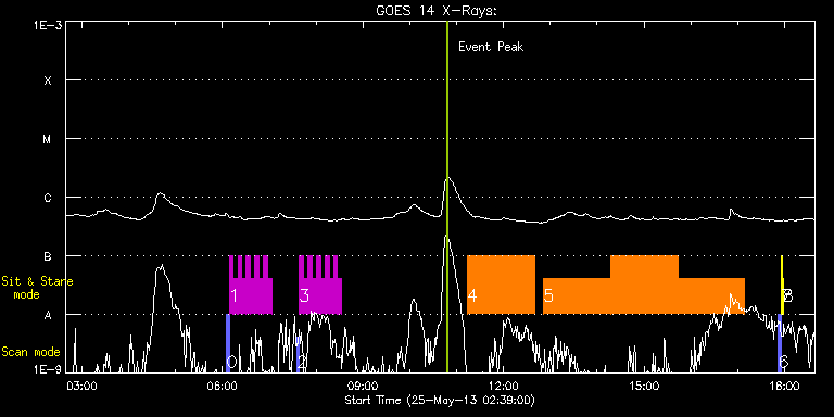 EIS Observation timeline overlay to GOES-Xray curve Code 1" 2" 40" 266" EIS Observations list for this event: STUDY ACRONYM ID DATE OBSERVED DESCRIPTION NOAA# TARGET 0 PRY_slot_contextLITE | 33880 | 2013/05/25 06:05:35 | Full CCD QS Disk Center Context | 1753 | Active Region TIMELINE ID DATE OBSERVED FITS FILE XCEN (+W/-E) YCEN (+N/-S) DUR ----------------------------------------------------------------------------------------------------------------- 33880 | 2013/05/25 06:05:35.000 | eis_l0_20130525_060535.fits.gz | -15.21 | -0.42 | 2m57s 1 HPW023_FULLCCD_300s | 33881 | 2013/05/25 06:08:43 | Full CCD QS Disk Center | | Quiet Sun TIMELINE ID DATE OBSERVED FITS FILE XCEN (+W/-E) YCEN (+N/-S) DUR ----------------------------------------------------------------------------------------------------------------- 33881 | 2013/05/25 06:08:43.000 | eis_l0_20130525_060843.fits.gz | 219.83 | -28.50 | 5m 33881 | 2013/05/25 06:14:10.000 | eis_l0_20130525_061410.fits.gz | 219.91 | -28.42 | 5m 33881 | 2013/05/25 06:19:37.000 | eis_l0_20130525_061937.fits.gz | 219.83 | -28.42 | 5m 33881 | 2013/05/25 06:25:05.000 | eis_l0_20130525_062505.fits.gz | 219.83 | -28.50 | 5m 33881 | 2013/05/25 06:30:32.000 | eis_l0_20130525_063032.fits.gz | 219.91 | -28.50 | 5m 33881 | 2013/05/25 06:35:59.000 | eis_l0_20130525_063559.fits.gz | 219.83 | -28.42 | 5m1s 33881 | 2013/05/25 06:41:27.000 | eis_l0_20130525_064127.fits.gz | 219.83 | -28.50 | 5m 33881 | 2013/05/25 06:46:54.000 | eis_l0_20130525_064654.fits.gz | 219.91 | -28.50 | 5m 33881 | 2013/05/25 06:52:21.000 | eis_l0_20130525_065221.fits.gz | 219.91 | -28.42 | 5m 33881 | 2013/05/25 06:57:49.000 | eis_l0_20130525_065749.fits.gz | 219.83 | -28.35 | 5m 2 PRY_slot_contextLITE | 33882 | 2013/05/25 07:35:33 | Full CCD QS Disk Center Context | 1753 | Active Region TIMELINE ID DATE OBSERVED FITS FILE XCEN (+W/-E) YCEN (+N/-S) DUR ----------------------------------------------------------------------------------------------------------------- 33882 | 2013/05/25 07:35:33.000 | eis_l0_20130525_073533.fits.gz | -15.29 | -0.19 | 2m56s 3 HPW023_FULLCCD_300s | 33883 | 2013/05/25 07:38:41 | Full CCD QS Disk Center | | Quiet Sun TIMELINE ID DATE OBSERVED FITS FILE XCEN (+W/-E) YCEN (+N/-S) DUR ----------------------------------------------------------------------------------------------------------------- 33883 | 2013/05/25 07:38:41.000 | eis_l0_20130525_073841.fits.gz | 100.03 | -28.35 | 5m 33883 | 2013/05/25 07:44:08.000 | eis_l0_20130525_074408.fits.gz | 100.10 | -28.50 | 5m 33883 | 2013/05/25 07:49:35.000 | eis_l0_20130525_074935.fits.gz | 100.03 | -28.50 | 5m1s 33883 | 2013/05/25 07:55:03.000 | eis_l0_20130525_075503.fits.gz | 100.03 | -28.50 | 5m 33883 | 2013/05/25 08:00:30.000 | eis_l0_20130525_080030.fits.gz | 100.10 | -28.50 | 5m 33883 | 2013/05/25 08:05:57.000 | eis_l0_20130525_080557.fits.gz | 100.03 | -28.50 | 5m 33883 | 2013/05/25 08:11:24.000 | eis_l0_20130525_081124.fits.gz | 100.03 | -28.35 | 5m1s 33883 | 2013/05/25 08:16:52.000 | eis_l0_20130525_081652.fits.gz | 100.03 | -28.50 | 5m 33883 | 2013/05/25 08:22:19.000 | eis_l0_20130525_082219.fits.gz | 99.95 | -28.35 | 5m 33883 | 2013/05/25 08:27:46.000 | eis_l0_20130525_082746.fits.gz | 100.03 | -28.58 | 5m 4 eitwave_triggered | 33916 | 2013/05/25 11:13:27 | Observation of coronal (EIT) waves | | Quiet Sun TIMELINE ID DATE OBSERVED FITS FILE XCEN (+W/-E) YCEN (+N/-S) DUR ----------------------------------------------------------------------------------------------------------------- 33916 | 2013/05/25 11:13:27.000 | eis_l0_20130525_111327.fits.gz | 843.55 | -137.47 | 1h25m56s 5 eitwave_triggered | 33918 | 2013/05/25 12:51:13 | Observation of coronal (EIT) waves | | Quiet Sun TIMELINE ID DATE OBSERVED FITS FILE XCEN (+W/-E) YCEN (+N/-S) DUR ----------------------------------------------------------------------------------------------------------------- 33918 | 2013/05/25 12:51:13.000 | eis_l0_20130525_125113.fits.gz | 843.55 | -137.55 | 1h25m56s 33918 | 2013/05/25 14:17:13.000 | eis_l0_20130525_141713.fits.gz | 843.55 | -137.40 | 1h25m56s 33918 | 2013/05/25 15:43:14.000 | eis_l0_20130525_154314.fits.gz | 843.55 | -137.40 | 1h25m56s 6 PRY_slot_contextLITE | 33898 | 2013/05/25 17:52:20 | Measurements during XRT Synoptic | 1753 | Active Region TIMELINE ID DATE OBSERVED FITS FILE XCEN (+W/-E) YCEN (+N/-S) DUR ----------------------------------------------------------------------------------------------------------------- 33898 | 2013/05/25 17:52:20.000 | eis_l0_20130525_175220.fits.gz | -15.29 | -0.50 | 2m57s 7 Alignment_266 | 33899 | 2013/05/25 17:55:57 | Measurements during XRT Synoptic | 1753 | Quiet Sun TIMELINE ID DATE OBSERVED FITS FILE XCEN (+W/-E) YCEN (+N/-S) DUR ----------------------------------------------------------------------------------------------------------------- 33899 | 2013/05/25 17:55:57.000 | eis_l0_20130525_175557.fits.gz | -132.57 | -0.50 | 1m22s 8 XRT_synop_AIA | 33900 | 2013/05/25 17:58:19 | Measurements during XRT Synoptic | 1753 | Quiet Sun TIMELINE ID DATE OBSERVED FITS FILE XCEN (+W/-E) YCEN (+N/-S) DUR ----------------------------------------------------------------------------------------------------------------- 33900 | 2013/05/25 17:58:19.000 | eis_l0_20130525_175819.fits.gz | -132.64 | -0.50 | 10s : Check study information : Download file : View thumbnails For this event, also check for: