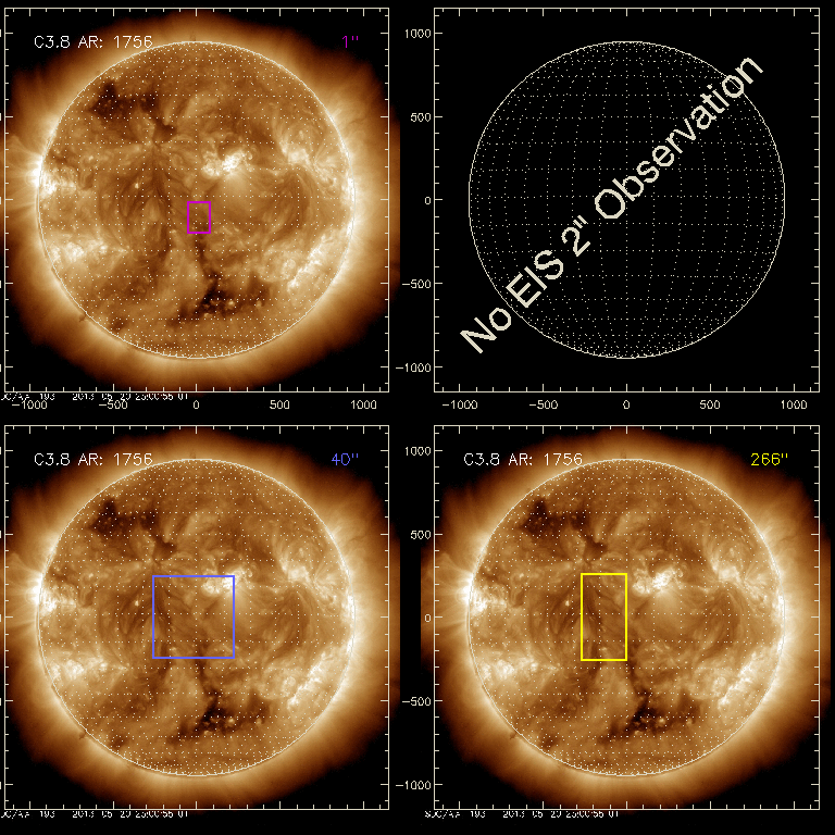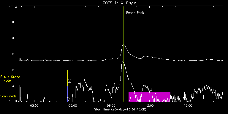 EIS Observation timeline overlay to GOES-Xray curve Code 1" 2" 40" 266" EIS Observations list for this event: STUDY ACRONYM ID DATE OBSERVED DESCRIPTION NOAA# TARGET 0 PRY_slot_contextLITE | 33901 | 2013/05/26 05:31:56 | Measurements during XRT Synoptic | 1753 | Active Region TIMELINE ID DATE OBSERVED FITS FILE XCEN (+W/-E) YCEN (+N/-S) DUR ----------------------------------------------------------------------------------------------------------------- 33901 | 2013/05/26 05:31:56.000 | eis_l0_20130526_053156.fits.gz | -15.14 | -0.42 | 2m57s 1 Alignment_266 | 33902 | 2013/05/26 05:35:27 | Measurements during XRT Synoptic | 1755 | Quiet Sun TIMELINE ID DATE OBSERVED FITS FILE XCEN (+W/-E) YCEN (+N/-S) DUR ----------------------------------------------------------------------------------------------------------------- 33902 | 2013/05/26 05:35:27.000 | eis_l0_20130526_053527.fits.gz | -132.57 | -0.42 | 1m22s 2 XRT_synop_AIA | 33903 | 2013/05/26 05:38:16 | Measurements during XRT Synoptic | 1755 | Quiet Sun TIMELINE ID DATE OBSERVED FITS FILE XCEN (+W/-E) YCEN (+N/-S) DUR ----------------------------------------------------------------------------------------------------------------- 33903 | 2013/05/26 05:38:16.000 | eis_l0_20130526_053816.fits.gz | -132.57 | -0.42 | 10s 3 SYNOP006 | 33920 | 2013/05/26 10:21:33 | Synop006 | | Quiet Sun TIMELINE ID DATE OBSERVED FITS FILE XCEN (+W/-E) YCEN (+N/-S) DUR ----------------------------------------------------------------------------------------------------------------- 33920 | 2013/05/26 10:21:33.000 | eis_l0_20130526_102133.fits.gz | 17.01 | -107.11 | 3h15m35s : Check study information : Download file : View thumbnails For this event, also check for: