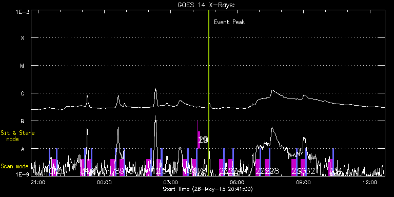 EIS Observation timeline overlay to GOES-Xray curve Code 1" 2" 40" 266" EIS Observations list for this event: STUDY ACRONYM ID DATE OBSERVED DESCRIPTION NOAA# TARGET 0 PRY_slot_contextLITE | 33936 | 2013/05/28 21:29:34 | HOP 79 | | Active Region TIMELINE ID DATE OBSERVED FITS FILE XCEN (+W/-E) YCEN (+N/-S) DUR ----------------------------------------------------------------------------------------------------------------- 33936 | 2013/05/28 21:29:34.000 | eis_l0_20130528_212934.fits.gz | -27.11 | -675.49 | 2m56s 1 SK_DEEP_5x512_SLIT1 | 33937 | 2013/05/28 21:37:20 | HOP 79 | | Quiet Sun TIMELINE ID DATE OBSERVED FITS FILE XCEN (+W/-E) YCEN (+N/-S) DUR ----------------------------------------------------------------------------------------------------------------- 33937 | 2013/05/28 21:37:20.000 | eis_l0_20130528_213720.fits.gz | -11.88 | -575.30 | 10m7s 2 PRY_slot_contextLITE | 33938 | 2013/05/28 21:48:38 | HOP 79 | | Active Region TIMELINE ID DATE OBSERVED FITS FILE XCEN (+W/-E) YCEN (+N/-S) DUR ----------------------------------------------------------------------------------------------------------------- 33938 | 2013/05/28 21:48:38.000 | eis_l0_20130528_214838.fits.gz | -27.11 | -575.38 | 2m56s 3 SK_DEEP_5x512_SLIT1 | 33939 | 2013/05/28 22:54:50 | HOP 79 | | Quiet Sun TIMELINE ID DATE OBSERVED FITS FILE XCEN (+W/-E) YCEN (+N/-S) DUR ----------------------------------------------------------------------------------------------------------------- 33939 | 2013/05/28 22:54:50.000 | eis_l0_20130528_225450.fits.gz | -11.88 | -475.26 | 10m7s 4 PRY_slot_contextLITE | 33940 | 2013/05/28 23:06:08 | HOP 79 | | Active Region TIMELINE ID DATE OBSERVED FITS FILE XCEN (+W/-E) YCEN (+N/-S) DUR ----------------------------------------------------------------------------------------------------------------- 33940 | 2013/05/28 23:06:08.000 | eis_l0_20130528_230608.fits.gz | -27.11 | -475.34 | 2m56s 5 SK_DEEP_5x512_SLIT1 | 33941 | 2013/05/28 23:12:20 | HOP 79 | | Quiet Sun TIMELINE ID DATE OBSERVED FITS FILE XCEN (+W/-E) YCEN (+N/-S) DUR ----------------------------------------------------------------------------------------------------------------- 33941 | 2013/05/28 23:12:20.000 | eis_l0_20130528_231220.fits.gz | -11.88 | -375.46 | 10m7s 6 PRY_slot_contextLITE | 33942 | 2013/05/28 23:23:38 | HOP 79 | | Active Region TIMELINE ID DATE OBSERVED FITS FILE XCEN (+W/-E) YCEN (+N/-S) DUR ----------------------------------------------------------------------------------------------------------------- 33942 | 2013/05/28 23:23:38.000 | eis_l0_20130528_232338.fits.gz | -27.19 | -375.54 | 2m56s 7 SK_DEEP_5x512_SLIT1 | 33943 | 2013/05/29 00:17:20 | HOP 79 | | Quiet Sun TIMELINE ID DATE OBSERVED FITS FILE XCEN (+W/-E) YCEN (+N/-S) DUR ----------------------------------------------------------------------------------------------------------------- 33943 | 2013/05/29 00:17:20.000 | eis_l0_20130529_001720.fits.gz | -11.96 | -275.35 | 10m8s 8 PRY_slot_contextLITE | 33944 | 2013/05/29 00:28:38 | HOP 79 | 1757 | Active Region TIMELINE ID DATE OBSERVED FITS FILE XCEN (+W/-E) YCEN (+N/-S) DUR ----------------------------------------------------------------------------------------------------------------- 33944 | 2013/05/29 00:28:38.000 | eis_l0_20130529_002838.fits.gz | -27.03 | -275.50 | 2m56s 9 SK_DEEP_5x512_SLIT1 | 33945 | 2013/05/29 00:41:20 | HOP 79 | | Quiet Sun TIMELINE ID DATE OBSERVED FITS FILE XCEN (+W/-E) YCEN (+N/-S) DUR ----------------------------------------------------------------------------------------------------------------- 33945 | 2013/05/29 00:41:20.000 | eis_l0_20130529_004120.fits.gz | -11.88 | -175.39 | 10m7s 10 PRY_slot_contextLITE | 33946 | 2013/05/29 00:52:38 | HOP 79 | 1757 | Active Region TIMELINE ID DATE OBSERVED FITS FILE XCEN (+W/-E) YCEN (+N/-S) DUR ----------------------------------------------------------------------------------------------------------------- 33946 | 2013/05/29 00:52:38.000 | eis_l0_20130529_005238.fits.gz | -27.19 | -175.39 | 2m56s 11 SK_DEEP_5x512_SLIT1 | 33947 | 2013/05/29 01:54:20 | HOP 79 | | Quiet Sun TIMELINE ID DATE OBSERVED FITS FILE XCEN (+W/-E) YCEN (+N/-S) DUR ----------------------------------------------------------------------------------------------------------------- 33947 | 2013/05/29 01:54:20.000 | eis_l0_20130529_015420.fits.gz | -11.88 | -75.20 | 10m8s 12 PRY_slot_contextLITE | 33948 | 2013/05/29 02:05:38 | HOP 79 | 1757 | Active Region TIMELINE ID DATE OBSERVED FITS FILE XCEN (+W/-E) YCEN (+N/-S) DUR ----------------------------------------------------------------------------------------------------------------- 33948 | 2013/05/29 02:05:38.000 | eis_l0_20130529_020538.fits.gz | -27.19 | -75.28 | 2m56s 13 SK_DEEP_5x512_SLIT1 | 33949 | 2013/05/29 02:22:21 | HOP 79 | | Quiet Sun TIMELINE ID DATE OBSERVED FITS FILE XCEN (+W/-E) YCEN (+N/-S) DUR ----------------------------------------------------------------------------------------------------------------- 33949 | 2013/05/29 02:22:21.000 | eis_l0_20130529_022221.fits.gz | -11.96 | 14.56 | 10m7s 14 PRY_slot_contextLITE | 33950 | 2013/05/29 02:33:38 | HOP 79 | 1757 | Active Region TIMELINE ID DATE OBSERVED FITS FILE XCEN (+W/-E) YCEN (+N/-S) DUR ----------------------------------------------------------------------------------------------------------------- 33950 | 2013/05/29 02:33:38.000 | eis_l0_20130529_023338.fits.gz | -27.11 | 14.56 | 2m56s 15 SK_DEEP_5x512_SLIT1 | 33951 | 2013/05/29 03:33:20 | HOP 79 | | Quiet Sun TIMELINE ID DATE OBSERVED FITS FILE XCEN (+W/-E) YCEN (+N/-S) DUR ----------------------------------------------------------------------------------------------------------------- 33951 | 2013/05/29 03:33:20.000 | eis_l0_20130529_033320.fits.gz | -11.96 | 114.44 | 10m8s 16 PRY_slot_contextLITE | 33952 | 2013/05/29 03:44:38 | HOP 79 | 1757 | Active Region TIMELINE ID DATE OBSERVED FITS FILE XCEN (+W/-E) YCEN (+N/-S) DUR -----------------------------------------------------------------------