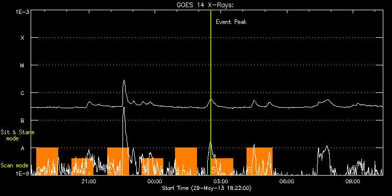 EIS Observation timeline overlay to GOES-Xray curve Code 1" 2" 40" 266" EIS Observations list for this event: STUDY ACRONYM ID DATE OBSERVED DESCRIPTION NOAA# TARGET 0 ISSI_jet_1 | 33973 | 2013/05/29 18:36:43 | Equatorial coronal hole | | Quiet Sun TIMELINE ID DATE OBSERVED FITS FILE XCEN (+W/-E) YCEN (+N/-S) DUR ----------------------------------------------------------------------------------------------------------------- 33973 | 2013/05/29 18:36:43.000 | eis_l0_20130529_183643.fits.gz | -8.99 | 11.94 | 58m37s 1 ISSI_jet_1 | 33974 | 2013/05/29 20:13:43 | Equatorial coronal hole | | Quiet Sun TIMELINE ID DATE OBSERVED FITS FILE XCEN (+W/-E) YCEN (+N/-S) DUR ----------------------------------------------------------------------------------------------------------------- 33974 | 2013/05/29 20:13:43.000 | eis_l0_20130529_201343.fits.gz | 6.00 | 11.78 | 58m37s 2 ISSI_jet_1 | 33975 | 2013/05/29 21:50:43 | Equatorial coronal hole | | Quiet Sun TIMELINE ID DATE OBSERVED FITS FILE XCEN (+W/-E) YCEN (+N/-S) DUR ----------------------------------------------------------------------------------------------------------------- 33975 | 2013/05/29 21:50:43.000 | eis_l0_20130529_215043.fits.gz | 20.91 | 11.47 | 58m36s 3 ISSI_jet_1 | 33976 | 2013/05/29 23:23:13 | Equatorial coronal hole | | Quiet Sun TIMELINE ID DATE OBSERVED FITS FILE XCEN (+W/-E) YCEN (+N/-S) DUR ----------------------------------------------------------------------------------------------------------------- 33976 | 2013/05/29 23:23:13.000 | eis_l0_20130529_232313.fits.gz | 35.20 | 11.40 | 58m36s 4 ISSI_jet_1 | 33977 | 2013/05/30 00:56:13 | Equatorial coronal hole | 1757 | Quiet Sun TIMELINE ID DATE OBSERVED FITS FILE XCEN (+W/-E) YCEN (+N/-S) DUR ----------------------------------------------------------------------------------------------------------------- 33977 | 2013/05/30 00:56:13.000 | eis_l0_20130530_005613.fits.gz | 49.41 | 11.32 | 58m36s 5 ISSI_jet_1 | 33978 | 2013/05/30 02:34:14 | Equatorial coronal hole | 1757 | Quiet Sun TIMELINE ID DATE OBSERVED FITS FILE XCEN (+W/-E) YCEN (+N/-S) DUR ----------------------------------------------------------------------------------------------------------------- 33978 | 2013/05/30 02:34:14.000 | eis_l0_20130530_023414.fits.gz | 64.47 | 11.24 | 58m36s 6 GDZ_300x384_S2S3_40 | 34007 | 2013/05/30 04:10:13 | Equatorial coronal hole | 1757 | Active Region TIMELINE ID DATE OBSERVED FITS FILE XCEN (+W/-E) YCEN (+N/-S) DUR ----------------------------------------------------------------------------------------------------------------- 34007 | 2013/05/30 04:10:13.000 | eis_l0_20130530_041013.fits.gz | 79.07 | 11.09 | 1h10m7s : Check study information : Download file : View thumbnails For this event, also check for: