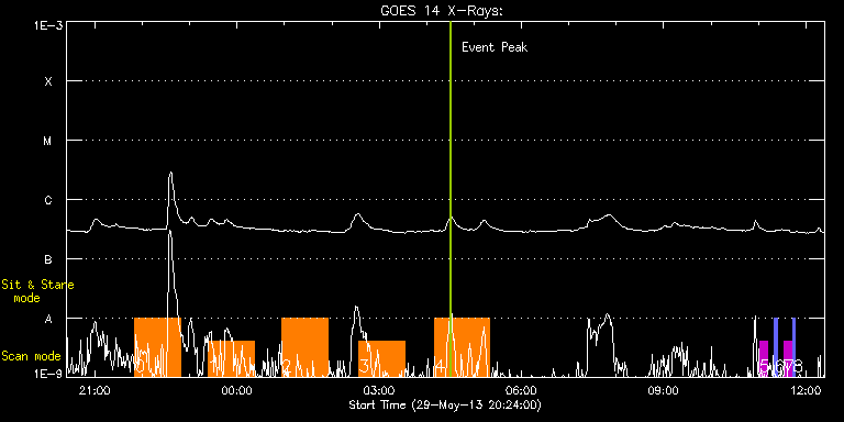 EIS Observation timeline overlay to GOES-Xray curve Code 1" 2" 40" 266" EIS Observations list for this event: STUDY ACRONYM ID DATE OBSERVED DESCRIPTION NOAA# TARGET 0 ISSI_jet_1 | 33975 | 2013/05/29 21:50:43 | Equatorial coronal hole | | Quiet Sun TIMELINE ID DATE OBSERVED FITS FILE XCEN (+W/-E) YCEN (+N/-S) DUR ----------------------------------------------------------------------------------------------------------------- 33975 | 2013/05/29 21:50:43.000 | eis_l0_20130529_215043.fits.gz | 20.91 | 11.47 | 58m36s 1 ISSI_jet_1 | 33976 | 2013/05/29 23:23:13 | Equatorial coronal hole | | Quiet Sun TIMELINE ID DATE OBSERVED FITS FILE XCEN (+W/-E) YCEN (+N/-S) DUR ----------------------------------------------------------------------------------------------------------------- 33976 | 2013/05/29 23:23:13.000 | eis_l0_20130529_232313.fits.gz | 35.20 | 11.40 | 58m36s 2 ISSI_jet_1 | 33977 | 2013/05/30 00:56:13 | Equatorial coronal hole | 1757 | Quiet Sun TIMELINE ID DATE OBSERVED FITS FILE XCEN (+W/-E) YCEN (+N/-S) DUR ----------------------------------------------------------------------------------------------------------------- 33977 | 2013/05/30 00:56:13.000 | eis_l0_20130530_005613.fits.gz | 49.41 | 11.32 | 58m36s 3 ISSI_jet_1 | 33978 | 2013/05/30 02:34:14 | Equatorial coronal hole | 1757 | Quiet Sun TIMELINE ID DATE OBSERVED FITS FILE XCEN (+W/-E) YCEN (+N/-S) DUR ----------------------------------------------------------------------------------------------------------------- 33978 | 2013/05/30 02:34:14.000 | eis_l0_20130530_023414.fits.gz | 64.47 | 11.24 | 58m36s 4 GDZ_300x384_S2S3_40 | 34007 | 2013/05/30 04:10:13 | Equatorial coronal hole | 1757 | Active Region TIMELINE ID DATE OBSERVED FITS FILE XCEN (+W/-E) YCEN (+N/-S) DUR ----------------------------------------------------------------------------------------------------------------- 34007 | 2013/05/30 04:10:13.000 | eis_l0_20130530_041013.fits.gz | 79.07 | 11.09 | 1h10m7s 5 SK_DEEP_5x512_SLIT1 | 34008 | 2013/05/30 11:01:26 | HOP 79 | | Quiet Sun TIMELINE ID DATE OBSERVED FITS FILE XCEN (+W/-E) YCEN (+N/-S) DUR ----------------------------------------------------------------------------------------------------------------- 34008 | 2013/05/30 11:01:26.000 | eis_l0_20130530_110126.fits.gz | -9869.46 | -9963.20 | 10m8s 6 PRY_slot_contextLITE | 34009 | 2013/05/30 11:20:33 | HOP 79 | 1760 | Active Region TIMELINE ID DATE OBSERVED FITS FILE XCEN (+W/-E) YCEN (+N/-S) DUR ----------------------------------------------------------------------------------------------------------------- 34009 | 2013/05/30 11:20:33.000 | eis_l0_20130530_112033.fits.gz | -704.01 | -42.52 | 2m56s 7 SK_DEEP_5x512_SLIT1 | 34021 | 2013/05/30 11:32:19 | HOP 79 | | Quiet Sun TIMELINE ID DATE OBSERVED FITS FILE XCEN (+W/-E) YCEN (+N/-S) DUR ----------------------------------------------------------------------------------------------------------------- 34021 | 2013/05/30 11:32:19.000 | eis_l0_20130530_113219.fits.gz | -489.97 | -42.45 | 10m8s 8 PRY_slot_contextLITE | 34022 | 2013/05/30 11:43:37 | HOP 79 | 1761 | Active Region TIMELINE ID DATE OBSERVED FITS FILE XCEN (+W/-E) YCEN (+N/-S) DUR ----------------------------------------------------------------------------------------------------------------- 34022 | 2013/05/30 11:43:37.000 | eis_l0_20130530_114337.fits.gz | -505.19 | -42.52 | 2m56s : Check study information : Download file : View thumbnails For this event, also check for: