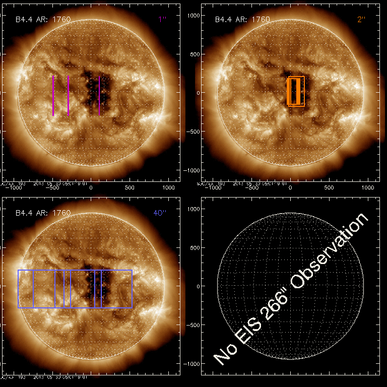 EIS Observation timeline overlay to GOES-Xray curve Code 1" 2" 40" 266" EIS Observations list for this event: STUDY ACRONYM ID DATE OBSERVED DESCRIPTION NOAA# TARGET 0 ISSI_jet_1 | 33975 | 2013/05/29 21:50:43 | Equatorial coronal hole | | Quiet Sun TIMELINE ID DATE OBSERVED FITS FILE XCEN (+W/-E) YCEN (+N/-S) DUR ----------------------------------------------------------------------------------------------------------------- 33975 | 2013/05/29 21:50:43.000 | eis_l0_20130529_215043.fits.gz | 20.91 | 11.47 | 58m36s 1 ISSI_jet_1 | 33976 | 2013/05/29 23:23:13 | Equatorial coronal hole | | Quiet Sun TIMELINE ID DATE OBSERVED FITS FILE XCEN (+W/-E) YCEN (+N/-S) DUR ----------------------------------------------------------------------------------------------------------------- 33976 | 2013/05/29 23:23:13.000 | eis_l0_20130529_232313.fits.gz | 35.20 | 11.40 | 58m36s 2 ISSI_jet_1 | 33977 | 2013/05/30 00:56:13 | Equatorial coronal hole | 1757 | Quiet Sun TIMELINE ID DATE OBSERVED FITS FILE XCEN (+W/-E) YCEN (+N/-S) DUR ----------------------------------------------------------------------------------------------------------------- 33977 | 2013/05/30 00:56:13.000 | eis_l0_20130530_005613.fits.gz | 49.41 | 11.32 | 58m36s 3 ISSI_jet_1 | 33978 | 2013/05/30 02:34:14 | Equatorial coronal hole | 1757 | Quiet Sun TIMELINE ID DATE OBSERVED FITS FILE XCEN (+W/-E) YCEN (+N/-S) DUR ----------------------------------------------------------------------------------------------------------------- 33978 | 2013/05/30 02:34:14.000 | eis_l0_20130530_023414.fits.gz | 64.47 | 11.24 | 58m36s 4 GDZ_300x384_S2S3_40 | 34007 | 2013/05/30 04:10:13 | Equatorial coronal hole | 1757 | Active Region TIMELINE ID DATE OBSERVED FITS FILE XCEN (+W/-E) YCEN (+N/-S) DUR ----------------------------------------------------------------------------------------------------------------- 34007 | 2013/05/30 04:10:13.000 | eis_l0_20130530_041013.fits.gz | 79.07 | 11.09 | 1h10m7s 5 SK_DEEP_5x512_SLIT1 | 34008 | 2013/05/30 11:01:26 | HOP 79 | | Quiet Sun TIMELINE ID DATE OBSERVED FITS FILE XCEN (+W/-E) YCEN (+N/-S) DUR ----------------------------------------------------------------------------------------------------------------- 34008 | 2013/05/30 11:01:26.000 | eis_l0_20130530_110126.fits.gz | -9869.46 | -9963.20 | 10m8s 6 PRY_slot_contextLITE | 34009 | 2013/05/30 11:20:33 | HOP 79 | 1760 | Active Region TIMELINE ID DATE OBSERVED FITS FILE XCEN (+W/-E) YCEN (+N/-S) DUR ----------------------------------------------------------------------------------------------------------------- 34009 | 2013/05/30 11:20:33.000 | eis_l0_20130530_112033.fits.gz | -704.01 | -42.52 | 2m56s 7 SK_DEEP_5x512_SLIT1 | 34021 | 2013/05/30 11:32:19 | HOP 79 | | Quiet Sun TIMELINE ID DATE OBSERVED FITS FILE XCEN (+W/-E) YCEN (+N/-S) DUR ----------------------------------------------------------------------------------------------------------------- 34021 | 2013/05/30 11:32:19.000 | eis_l0_20130530_113219.fits.gz | -489.97 | -42.45 | 10m8s 8 PRY_slot_contextLITE | 34022 | 2013/05/30 11:43:37 | HOP 79 | 1761 | Active Region TIMELINE ID DATE OBSERVED FITS FILE XCEN (+W/-E) YCEN (+N/-S) DUR ----------------------------------------------------------------------------------------------------------------- 34022 | 2013/05/30 11:43:37.000 | eis_l0_20130530_114337.fits.gz | -505.19 | -42.52 | 2m56s 9 SK_DEEP_5x512_SLIT1 | 34023 | 2013/05/30 12:21:20 | HOP 79 | | Quiet Sun TIMELINE ID DATE OBSERVED FITS FILE XCEN (+W/-E) YCEN (+N/-S) DUR ----------------------------------------------------------------------------------------------------------------- 34023 | 2013/05/30 12:21:20.000 | eis_l0_20130530_122120.fits.gz | -290.82 | -42.60 | 10m7s 10 PRY_slot_contextLITE | 34024 | 2013/05/30 12:35:03 | HOP 79 | 1757 | Active Region TIMELINE ID DATE OBSERVED FITS FILE XCEN (+W/-E) YCEN (+N/-S) DUR ----------------------------------------------------------------------------------------------------------------- 34024 | 2013/05/30 12:35:03.000 | eis_l0_20130530_123503.fits.gz | -107.12 | -42.52 | 2m56s 11 SK_DEEP_5x512_SLIT1 | 34025 | 2013/05/30 12:46:19 | HOP 79 | | Quiet Sun TIMELINE ID DATE OBSERVED FITS FILE XCEN (+W/-E) YCEN (+N/-S) DUR ----------------------------------------------------------------------------------------------------------------- 34025 | 2013/05/30 12:46:19.000 | eis_l0_20130530_124619.fits.gz | 107.00 | -42.60 | 10m8s 12 PRY_slot_contextLITE | 34026 | 2013/05/30 12:59:03 | HOP 79 | | Active Region TIMELINE ID DATE OBSERVED FITS FILE XCEN (+W/-E) YCEN (+N/-S) DUR ----------------------------------------------------------------------------------------------------------------- 34026 | 2013/05/30 12:59:03.000 | eis_l0_20130530_125903.fits.gz | 290.77 | -42.45 | 2m56s : Check study information : Download file : View thumbnails For this event, also check for: