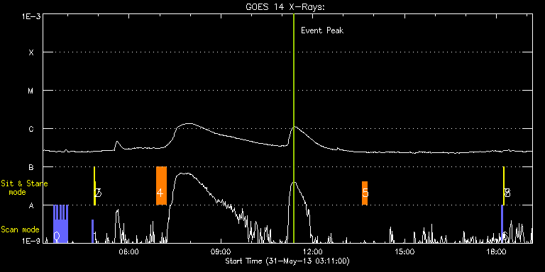 EIS Observation timeline overlay to GOES-Xray curve Code 1" 2" 40" 266" EIS Observations list for this event: STUDY ACRONYM ID DATE OBSERVED DESCRIPTION NOAA# TARGET 0 Alignment_modify_v2 | 34044 | 2013/05/31 03:31:43 | Hinode instrument alignment program | | Quiet Sun TIMELINE ID DATE OBSERVED FITS FILE XCEN (+W/-E) YCEN (+N/-S) DUR ----------------------------------------------------------------------------------------------------------------- 34044 | 2013/05/31 03:31:43.000 | eis_l0_20130531_033143.fits.gz | -9893.92 | -9963.20 | 2m34s 34044 | 2013/05/31 03:34:51.000 | eis_l0_20130531_033451.fits.gz | -9893.92 | -9963.20 | 2m34s 34044 | 2013/05/31 03:37:58.000 | eis_l0_20130531_033758.fits.gz | -9893.92 | -9963.20 | 2m34s 34044 | 2013/05/31 03:41:06.000 | eis_l0_20130531_034106.fits.gz | -9893.92 | -9963.20 | 2m34s 34044 | 2013/05/31 03:44:13.000 | eis_l0_20130531_034413.fits.gz | -9893.92 | -9963.20 | 2m34s 34044 | 2013/05/31 03:47:21.000 | eis_l0_20130531_034721.fits.gz | -9893.92 | -9963.20 | 2m34s 34044 | 2013/05/31 03:50:28.000 | eis_l0_20130531_035028.fits.gz | -9893.92 | -9963.20 | 2m34s 34044 | 2013/05/31 03:53:36.000 | eis_l0_20130531_035336.fits.gz | -9893.92 | -9963.20 | 2m34s 34044 | 2013/05/31 03:56:43.000 | eis_l0_20130531_035643.fits.gz | -9893.92 | -9963.20 | 2m34s 1 PRY_slot_contextLITE | 34011 | 2013/05/31 04:47:13 | Measurements during XRT Synoptic | 1757 | Active Region TIMELINE ID DATE OBSERVED FITS FILE XCEN (+W/-E) YCEN (+N/-S) DUR ----------------------------------------------------------------------------------------------------------------- 34011 | 2013/05/31 04:47:13.000 | eis_l0_20130531_044713.fits.gz | -15.21 | -0.42 | 2m57s 2 Alignment_266 | 34012 | 2013/05/31 04:50:57 | Measurements during XRT Synoptic | 1757 | Quiet Sun TIMELINE ID DATE OBSERVED FITS FILE XCEN (+W/-E) YCEN (+N/-S) DUR ----------------------------------------------------------------------------------------------------------------- 34012 | 2013/05/31 04:50:57.000 | eis_l0_20130531_045057.fits.gz | -132.49 | -0.35 | 1m22s 3 XRT_synop_AIA | 34013 | 2013/05/31 04:53:19 | Measurements during XRT Synoptic | 1757 | Quiet Sun TIMELINE ID DATE OBSERVED FITS FILE XCEN (+W/-E) YCEN (+N/-S) DUR ----------------------------------------------------------------------------------------------------------------- 34013 | 2013/05/31 04:53:19.000 | eis_l0_20130531_045319.fits.gz | -132.57 | -0.35 | 10s 4 EL_WHI_CH_limb | 34049 | 2013/05/31 06:53:41 | HOP 201 | | Coronal Hole TIMELINE ID DATE OBSERVED FITS FILE XCEN (+W/-E) YCEN (+N/-S) DUR ----------------------------------------------------------------------------------------------------------------- 34049 | 2013/05/31 06:53:41.000 | eis_l0_20130531_065341.fits.gz | 1100.27 | -450.22 | 20m2s 5 EL_WHI_CH_limb | 34053 | 2013/05/31 13:37:17 | HOP 201 | | Coronal Hole TIMELINE ID DATE OBSERVED FITS FILE XCEN (+W/-E) YCEN (+N/-S) DUR ----------------------------------------------------------------------------------------------------------------- 34053 | 2013/05/31 13:37:17.000 | eis_l0_20130531_133717.fits.gz | 1100.44 | -450.99 | 10m 6 PRY_slot_contextLITE | 34014 | 2013/05/31 18:09:49 | Measurements during XRT Synoptic | 1757 | Active Region TIMELINE ID DATE OBSERVED FITS FILE XCEN (+W/-E) YCEN (+N/-S) DUR ----------------------------------------------------------------------------------------------------------------- 34014 | 2013/05/31 18:09:49.000 | eis_l0_20130531_180949.fits.gz | -15.21 | -0.42 | 2m56s 7 Alignment_266 | 34015 | 2013/05/31 18:13:26 | Measurements during XRT Synoptic | 1757 | Quiet Sun TIMELINE ID DATE OBSERVED FITS FILE XCEN (+W/-E) YCEN (+N/-S) DUR ----------------------------------------------------------------------------------------------------------------- 34015 | 2013/05/31 18:13:26.000 | eis_l0_20130531_181326.fits.gz | -132.57 | -0.50 | 1m22s 8 XRT_synop_AIA | 34016 | 2013/05/31 18:15:49 | Measurements during XRT Synoptic | 1757 | Quiet Sun TIMELINE ID DATE OBSERVED FITS FILE XCEN (+W/-E) YCEN (+N/-S) DUR ----------------------------------------------------------------------------------------------------------------- 34016 | 2013/05/31 18:15:49.000 | eis_l0_20130531_181549.fits.gz | -132.49 | -0.35 | 10s : Check study information : Download file : View thumbnails For this event, also check for: