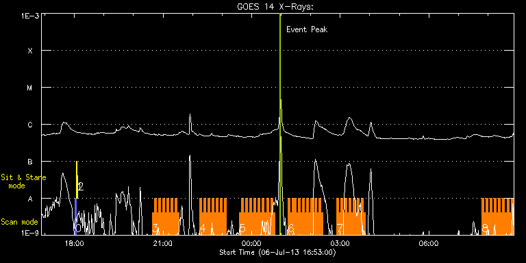 EIS Observation timeline overlay to GOES-Xray curve Code 1" 2" 40" 266" EIS Observations list for this event: STUDY ACRONYM ID DATE OBSERVED DESCRIPTION NOAA# TARGET 0 PRY_slot_contextLITE | 34908 | 2013/07/06 18:01:14 | EIS pointing monitoring | 1785 | Active Region TIMELINE ID DATE OBSERVED FITS FILE XCEN (+W/-E) YCEN (+N/-S) DUR ----------------------------------------------------------------------------------------------------------------- 34908 | 2013/07/06 18:01:14.000 | eis_l0_20130706_180114.fits.gz | -15.29 | -0.58 | 2m56s 1 Alignment_266 | 34909 | 2013/07/06 18:04:29 | EIS pointing monitoring | 1785 | Quiet Sun TIMELINE ID DATE OBSERVED FITS FILE XCEN (+W/-E) YCEN (+N/-S) DUR ----------------------------------------------------------------------------------------------------------------- 34909 | 2013/07/06 18:04:29.000 | eis_l0_20130706_180429.fits.gz | -132.49 | -0.50 | 1m22s 2 XRT_synop_AIA | 34910 | 2013/07/06 18:06:36 | EIS pointing monitoring | 1785 | Quiet Sun TIMELINE ID DATE OBSERVED FITS FILE XCEN (+W/-E) YCEN (+N/-S) DUR ----------------------------------------------------------------------------------------------------------------- 34910 | 2013/07/06 18:06:36.000 | eis_l0_20130706_180636.fits.gz | -132.49 | -0.35 | 10s 3 HH_Flare_162x152 | 34923 | 2013/07/06 20:37:50 | Flare Observations | 1788 | Flare TIMELINE ID DATE OBSERVED FITS FILE XCEN (+W/-E) YCEN (+N/-S) DUR ----------------------------------------------------------------------------------------------------------------- 34923 | 2013/07/06 20:37:50.000 | eis_l0_20130706_203750.fits.gz | -242.23 | -230.67 | 4m10s 34923 | 2013/07/06 20:42:03.000 | eis_l0_20130706_204203.fits.gz | -241.76 | -230.75 | 4m11s 34923 | 2013/07/06 20:46:17.000 | eis_l0_20130706_204617.fits.gz | -241.15 | -230.59 | 4m10s 34923 | 2013/07/06 20:50:30.000 | eis_l0_20130706_205030.fits.gz | -240.45 | -230.67 | 4m11s 34923 | 2013/07/06 20:54:44.000 | eis_l0_20130706_205444.fits.gz | -239.83 | -230.75 | 4m11s 34923 | 2013/07/06 20:58:57.000 | eis_l0_20130706_205857.fits.gz | -239.29 | -230.75 | 4m11s 34923 | 2013/07/06 21:03:10.000 | eis_l0_20130706_210310.fits.gz | -238.75 | -230.82 | 4m11s 34923 | 2013/07/06 21:07:24.000 | eis_l0_20130706_210724.fits.gz | -238.06 | -230.82 | 4m10s 34923 | 2013/07/06 21:11:37.000 | eis_l0_20130706_211137.fits.gz | -237.44 | -230.75 | 4m11s 34923 | 2013/07/06 21:15:51.000 | eis_l0_20130706_211551.fits.gz | -236.90 | -230.82 | 4m10s 34923 | 2013/07/06 21:20:04.000 | eis_l0_20130706_212004.fits.gz | -236.20 | -230.82 | 4m11s 34923 | 2013/07/06 21:24:18.000 | eis_l0_20130706_212418.fits.gz | -235.59 | -230.90 | 4m10s 34923 | 2013/07/06 21:28:31.000 | eis_l0_20130706_212831.fits.gz | -235.04 | -230.82 | 4m11s 4 HH_Flare_162x152 | 34924 | 2013/07/06 22:13:46 | Flare Observations | 1788 | Flare TIMELINE ID DATE OBSERVED FITS FILE XCEN (+W/-E) YCEN (+N/-S) DUR ----------------------------------------------------------------------------------------------------------------- 34924 | 2013/07/06 22:13:46.000 | eis_l0_20130706_221346.fits.gz | -228.56 | -230.98 | 4m11s 34924 | 2013/07/06 22:18:00.000 | eis_l0_20130706_221800.fits.gz | -228.01 | -230.98 | 4m11s 34924 | 2013/07/06 22:22:13.000 | eis_l0_20130706_222213.fits.gz | -227.24 | -230.98 | 4m11s 34924 | 2013/07/06 22:26:27.000 | eis_l0_20130706_222627.fits.gz | -226.78 | -231.06 | 4m10s 34924 | 2013/07/06 22:30:40.000 | eis_l0_20130706_223040.fits.gz | -226.08 | -231.06 | 4m11s 34924 | 2013/07/06 22:34:54.000 | eis_l0_20130706_223454.fits.gz | -225.47 | -231.13 | 4m10s 34924 | 2013/07/06 22:39:07.000 | eis_l0_20130706_223907.fits.gz | -224.93 | -231.13 | 4m10s 34924 | 2013/07/06 22:43:20.000 | eis_l0_20130706_224320.fits.gz | -224.23 | -231.21 | 4m11s 34924 | 2013/07/06 22:47:34.000 | eis_l0_20130706_224734.fits.gz | -223.69 | -231.21 | 4m10s 34924 | 2013/07/06 22:51:47.000 | eis_l0_20130706_225147.fits.gz | -223.23 | -231.13 | 4m11s 34924 | 2013/07/06 22:56:01.000 | eis_l0_20130706_225601.fits.gz | -222.14 | -231.06 | 4m10s 34924 | 2013/07/06 23:00:14.000 | eis_l0_20130706_230014.fits.gz | -221.84 | -231.13 | 4m11s 34924 | 2013/07/06 23:04:27.000 | eis_l0_20130706_230427.fits.gz | -221.22 | -231.21 | 4m11s 5 HH_Flare_162x152 | 34925 | 2013/07/06 23:35:13 | Flare Observations | 1788 | Flare TIMELINE ID DATE OBSERVED FITS FILE XCEN (+W/-E) YCEN (+N/-S) DUR ----------------------------------------------------------------------------------------------------------------- 34925 | 2013/07/06 23:35:13.000 | eis_l0_20130706_233513.fits.gz | -216.74 | -231.06 | 4m10s 34925 | 2013/07/06 23:39:26.000 | eis_l0_20130706_233926.fits.gz | -216.35 | -230.90 | 4m11s 34925 | 2013/07/06 23:43:40.000 | eis_l0_20130706_234340.fits.gz | -215.58 | -231.21 | 4m10s 34925 | 2013/07/06 23:47:53.000 | eis_l0_20130706_234753.fits.gz | -214.96 | -231.29 | 4m11s 34925 | 2013/07/06 23:52:06.000 | eis_l0_20130706_235206.fits.gz | -214.34 | -231.29 | 4m11s 34925 | 2013/07/06 23:56:20.000 | eis_l0_20130706_235620.fits.gz | -213.72 | -231.44 | 4m10s 34925 | 2013/07/07 00:00:33.000 | eis_l0_20130707_000033.fits.gz | -213.11 | -231.29 | 4m11s 34925 | 2013/07/07 00:04:47.000 | eis_l0_20130707_000447.fits.gz | -212.49 | -231.44 | 4m10s 34925 | 2013/07/07 00:09:00.000 | eis_l0_20130707_000900.fits.gz | -211.87 | -231.44 | 4m11s 34925 | 2013/07/07 00:13:14.000 | eis_l0_20130707_001314.fits.gz | -211.33 | -231.37 | 4m10s 34925 | 2013/07/07 00:17:27.000 | eis_l0_20130707_001727.fits.gz | -210.71 | -231.44 | 4m11s 34925 | 2013/07/07 00:21:40.000 | eis_l0_20130707_002140.fits.gz | -210.09 | -231.52 | 4m11s 34925 | 2013/07/07 00:25:54.000 | eis_l0_20130707_002554.fits.gz | -209.55 | -231.37 | 4m10s 34925 | 2013/07/07 00:30:07.000 | eis_l0_20130707_003007.fits.gz | -208.93 | -231.44 | 4m11s 34925 | 2013/07/07 00:34:21.000 | eis_l0_20130707_003421.fits.gz | -208.24 | -231.37 | 4m10s 34925 | 2013/07/07 00:38:34.000 | eis_l0_20130707_003834.fits.gz | -207.54 | -231.44 | 4m11s 34925 | 2013/07/07 00:42:47.000 | eis_l