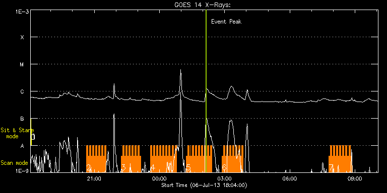 EIS Observation timeline overlay to GOES-Xray curve Code 1" 2" 40" 266" EIS Observations list for this event: STUDY ACRONYM ID DATE OBSERVED DESCRIPTION NOAA# TARGET 0 Alignment_266 | 34909 | 2013/07/06 18:04:29 | EIS pointing monitoring | 1785 | Quiet Sun TIMELINE ID DATE OBSERVED FITS FILE XCEN (+W/-E) YCEN (+N/-S) DUR ----------------------------------------------------------------------------------------------------------------- 34909 | 2013/07/06 18:04:29.000 | eis_l0_20130706_180429.fits.gz | -132.49 | -0.50 | 1m22s 1 XRT_synop_AIA | 34910 | 2013/07/06 18:06:36 | EIS pointing monitoring | 1785 | Quiet Sun TIMELINE ID DATE OBSERVED FITS FILE XCEN (+W/-E) YCEN (+N/-S) DUR ----------------------------------------------------------------------------------------------------------------- 34910 | 2013/07/06 18:06:36.000 | eis_l0_20130706_180636.fits.gz | -132.49 | -0.35 | 10s 2 HH_Flare_162x152 | 34923 | 2013/07/06 20:37:50 | Flare Observations | 1788 | Flare TIMELINE ID DATE OBSERVED FITS FILE XCEN (+W/-E) YCEN (+N/-S) DUR ----------------------------------------------------------------------------------------------------------------- 34923 | 2013/07/06 20:37:50.000 | eis_l0_20130706_203750.fits.gz | -242.23 | -230.67 | 4m10s 34923 | 2013/07/06 20:42:03.000 | eis_l0_20130706_204203.fits.gz | -241.76 | -230.75 | 4m11s 34923 | 2013/07/06 20:46:17.000 | eis_l0_20130706_204617.fits.gz | -241.15 | -230.59 | 4m10s 34923 | 2013/07/06 20:50:30.000 | eis_l0_20130706_205030.fits.gz | -240.45 | -230.67 | 4m11s 34923 | 2013/07/06 20:54:44.000 | eis_l0_20130706_205444.fits.gz | -239.83 | -230.75 | 4m11s 34923 | 2013/07/06 20:58:57.000 | eis_l0_20130706_205857.fits.gz | -239.29 | -230.75 | 4m11s 34923 | 2013/07/06 21:03:10.000 | eis_l0_20130706_210310.fits.gz | -238.75 | -230.82 | 4m11s 34923 | 2013/07/06 21:07:24.000 | eis_l0_20130706_210724.fits.gz | -238.06 | -230.82 | 4m10s 34923 | 2013/07/06 21:11:37.000 | eis_l0_20130706_211137.fits.gz | -237.44 | -230.75 | 4m11s 34923 | 2013/07/06 21:15:51.000 | eis_l0_20130706_211551.fits.gz | -236.90 | -230.82 | 4m10s 34923 | 2013/07/06 21:20:04.000 | eis_l0_20130706_212004.fits.gz | -236.20 | -230.82 | 4m11s 34923 | 2013/07/06 21:24:18.000 | eis_l0_20130706_212418.fits.gz | -235.59 | -230.90 | 4m10s 34923 | 2013/07/06 21:28:31.000 | eis_l0_20130706_212831.fits.gz | -235.04 | -230.82 | 4m11s 3 HH_Flare_162x152 | 34924 | 2013/07/06 22:13:46 | Flare Observations | 1788 | Flare TIMELINE ID DATE OBSERVED FITS FILE XCEN (+W/-E) YCEN (+N/-S) DUR ----------------------------------------------------------------------------------------------------------------- 34924 | 2013/07/06 22:13:46.000 | eis_l0_20130706_221346.fits.gz | -228.56 | -230.98 | 4m11s 34924 | 2013/07/06 22:18:00.000 | eis_l0_20130706_221800.fits.gz | -228.01 | -230.98 | 4m11s 34924 | 2013/07/06 22:22:13.000 | eis_l0_20130706_222213.fits.gz | -227.24 | -230.98 | 4m11s 34924 | 2013/07/06 22:26:27.000 | eis_l0_20130706_222627.fits.gz | -226.78 | -231.06 | 4m10s 34924 | 2013/07/06 22:30:40.000 | eis_l0_20130706_223040.fits.gz | -226.08 | -231.06 | 4m11s 34924 | 2013/07/06 22:34:54.000 | eis_l0_20130706_223454.fits.gz | -225.47 | -231.13 | 4m10s 34924 | 2013/07/06 22:39:07.000 | eis_l0_20130706_223907.fits.gz | -224.93 | -231.13 | 4m10s 34924 | 2013/07/06 22:43:20.000 | eis_l0_20130706_224320.fits.gz | -224.23 | -231.21 | 4m11s 34924 | 2013/07/06 22:47:34.000 | eis_l0_20130706_224734.fits.gz | -223.69 | -231.21 | 4m10s 34924 | 2013/07/06 22:51:47.000 | eis_l0_20130706_225147.fits.gz | -223.23 | -231.13 | 4m11s 34924 | 2013/07/06 22:56:01.000 | eis_l0_20130706_225601.fits.gz | -222.14 | -231.06 | 4m10s 34924 | 2013/07/06 23:00:14.000 | eis_l0_20130706_230014.fits.gz | -221.84 | -231.13 | 4m11s 34924 | 2013/07/06 23:04:27.000 | eis_l0_20130706_230427.fits.gz | -221.22 | -231.21 | 4m11s 4 HH_Flare_162x152 | 34925 | 2013/07/06 23:35:13 | Flare Observations | 1788 | Flare TIMELINE ID DATE OBSERVED FITS FILE XCEN (+W/-E) YCEN (+N/-S) DUR ----------------------------------------------------------------------------------------------------------------- 34925 | 2013/07/06 23:35:13.000 | eis_l0_20130706_233513.fits.gz | -216.74 | -231.06 | 4m10s 34925 | 2013/07/06 23:39:26.000 | eis_l0_20130706_233926.fits.gz | -216.35 | -230.90 | 4m11s 34925 | 2013/07/06 23:43:40.000 | eis_l0_20130706_234340.fits.gz | -215.58 | -231.21 | 4m10s 34925 | 2013/07/06 23:47:53.000 | eis_l0_20130706_234753.fits.gz | -214.96 | -231.29 | 4m11s 34925 | 2013/07/06 23:52:06.000 | eis_l0_20130706_235206.fits.gz | -214.34 | -231.29 | 4m11s 34925 | 2013/07/06 23:56:20.000 | eis_l0_20130706_235620.fits.gz | -213.72 | -231.44 | 4m10s 34925 | 2013/07/07 00:00:33.000 | eis_l0_20130707_000033.fits.gz | -213.11 | -231.29 | 4m11s 34925 | 2013/07/07 00:04:47.000 | eis_l0_20130707_000447.fits.gz | -212.49 | -231.44 | 4m10s 34925 | 2013/07/07 00:09:00.000 | eis_l0_20130707_000900.fits.gz | -211.87 | -231.44 | 4m11s 34925 | 2013/07/07 00:13:14.000 | eis_l0_20130707_001314.fits.gz | -211.33 | -231.37 | 4m10s 34925 | 2013/07/07 00:17:27.000 | eis_l0_20130707_001727.fits.gz | -210.71 | -231.44 | 4m11s 34925 | 2013/07/07 00:21:40.000 | eis_l0_20130707_002140.fits.gz | -210.09 | -231.52 | 4m11s 34925 | 2013/07/07 00:25:54.000 | eis_l0_20130707_002554.fits.gz | -209.55 | -231.37 | 4m10s 34925 | 2013/07/07 00:30:07.000 | eis_l0_20130707_003007.fits.gz | -208.93 | -231.44 | 4m11s 34925 | 2013/07/07 00:34:21.000 | eis_l0_20130707_003421.fits.gz | -208.24 | -231.37 | 4m10s 34925 | 2013/07/07 00:38:34.000 | eis_l0_20130707_003834.fits.gz | -207.54 | -231.44 | 4m11s 34925 | 2013/07/07 00:42:47.000 | eis_l0_20130707_004247.fits.gz | -207.08 | -231.52 | 4m11s 5 HH_Flare_162x152 | 34926 | 2013/07/07 01:13:43 | Flare Observations | 1785 | Flare TIMELINE ID DATE OBSERVED FITS FILE XCEN (+W/-E) YCEN (+N/-S) DUR ----------------------------------------------------------------------------------------------------------------- 34926 | 2013/07/07 01:13:43.000 | eis_l0_20130707_011