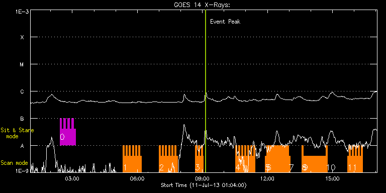 EIS Observation timeline overlay to GOES-Xray curve Code 1" 2" 40" 266" EIS Observations list for this event: STUDY ACRONYM ID DATE OBSERVED DESCRIPTION NOAA# TARGET 0 HPW023_FULLCCD_300s | 34975 | 2013/07/11 02:25:26 | Off-limb, quiet sun observations for s | | Quiet Sun TIMELINE ID DATE OBSERVED FITS FILE XCEN (+W/-E) YCEN (+N/-S) DUR ----------------------------------------------------------------------------------------------------------------- 34975 | 2013/07/11 02:25:26.000 | eis_l0_20130711_022526.fits.gz | -9898.67 | -9963.20 | 5m 34975 | 2013/07/11 02:30:53.000 | eis_l0_20130711_023053.fits.gz | -9898.67 | -9963.20 | 5m1s 34975 | 2013/07/11 02:36:21.000 | eis_l0_20130711_023621.fits.gz | -9898.67 | -9963.20 | 5m 34975 | 2013/07/11 02:41:48.000 | eis_l0_20130711_024148.fits.gz | -9898.67 | -9963.20 | 5m 34975 | 2013/07/11 02:47:15.000 | eis_l0_20130711_024715.fits.gz | -9898.67 | -9963.20 | 5m 34975 | 2013/07/11 02:52:42.000 | eis_l0_20130711_025242.fits.gz | -9898.67 | -9963.20 | 5m1s 34975 | 2013/07/11 02:58:10.000 | eis_l0_20130711_025810.fits.gz | -9898.67 | -9963.20 | 5m 34975 | 2013/07/11 03:03:37.000 | eis_l0_20130711_030337.fits.gz | -9898.67 | -9963.20 | 5m 1 HH_Flare_162x152 | 34991 | 2013/07/11 05:20:26 | Flare Observations | 1785 | Flare TIMELINE ID DATE OBSERVED FITS FILE XCEN (+W/-E) YCEN (+N/-S) DUR ----------------------------------------------------------------------------------------------------------------- 34991 | 2013/07/11 05:20:26.000 | eis_l0_20130711_052026.fits.gz | 657.91 | -216.70 | 4m11s 34991 | 2013/07/11 05:24:39.000 | eis_l0_20130711_052439.fits.gz | 658.22 | -216.62 | 4m11s 34991 | 2013/07/11 05:28:53.000 | eis_l0_20130711_052853.fits.gz | 658.76 | -216.46 | 4m10s 34991 | 2013/07/11 05:33:06.000 | eis_l0_20130711_053306.fits.gz | 659.30 | -216.46 | 4m11s 34991 | 2013/07/11 05:37:20.000 | eis_l0_20130711_053720.fits.gz | 659.68 | -216.46 | 4m10s 34991 | 2013/07/11 05:41:33.000 | eis_l0_20130711_054133.fits.gz | 660.15 | -216.46 | 4m10s 34991 | 2013/07/11 05:45:46.000 | eis_l0_20130711_054546.fits.gz | 660.53 | -216.46 | 4m11s 34991 | 2013/07/11 05:50:00.000 | eis_l0_20130711_055000.fits.gz | 661.00 | -216.46 | 4m10s 34991 | 2013/07/11 05:54:13.000 | eis_l0_20130711_055413.fits.gz | 661.46 | -216.46 | 4m11s 34991 | 2013/07/11 05:58:27.000 | eis_l0_20130711_055827.fits.gz | 661.85 | -216.46 | 4m10s 34991 | 2013/07/11 06:02:40.000 | eis_l0_20130711_060240.fits.gz | 662.23 | -216.39 | 4m11s 34991 | 2013/07/11 06:06:53.000 | eis_l0_20130711_060653.fits.gz | 662.70 | -216.23 | 4m11s 2 HH_Flare_162x152 | 34992 | 2013/07/11 07:00:40 | Flare Observations | 1785 | Flare TIMELINE ID DATE OBSERVED FITS FILE XCEN (+W/-E) YCEN (+N/-S) DUR ----------------------------------------------------------------------------------------------------------------- 34992 | 2013/07/11 07:00:40.000 | eis_l0_20130711_070040.fits.gz | 668.03 | -225.85 | 4m10s 34992 | 2013/07/11 07:04:53.000 | eis_l0_20130711_070453.fits.gz | 668.41 | -225.77 | 4m11s 34992 | 2013/07/11 07:09:07.000 | eis_l0_20130711_070907.fits.gz | 668.95 | -225.77 | 4m10s 34992 | 2013/07/11 07:13:20.000 | eis_l0_20130711_071320.fits.gz | 669.34 | -225.85 | 4m11s 34992 | 2013/07/11 07:17:33.000 | eis_l0_20130711_071733.fits.gz | 669.80 | -226.00 | 4m11s 34992 | 2013/07/11 07:21:47.000 | eis_l0_20130711_072147.fits.gz | 670.11 | -225.85 | 4m10s 34992 | 2013/07/11 07:26:00.000 | eis_l0_20130711_072600.fits.gz | 670.58 | -225.85 | 4m11s 34992 | 2013/07/11 07:30:14.000 | eis_l0_20130711_073014.fits.gz | 671.12 | -225.69 | 4m10s 34992 | 2013/07/11 07:34:27.000 | eis_l0_20130711_073427.fits.gz | 671.43 | -225.77 | 4m11s 34992 | 2013/07/11 07:38:40.000 | eis_l0_20130711_073840.fits.gz | 671.81 | -225.69 | 4m11s 34992 | 2013/07/11 07:42:54.000 | eis_l0_20130711_074254.fits.gz | 672.20 | -225.69 | 4m11s 34992 | 2013/07/11 07:47:08.000 | eis_l0_20130711_074708.fits.gz | 672.66 | -225.69 | 4m10s 3 HH_Flare_162x152 | 34976 | 2013/07/11 08:40:12 | Flare Observations | 1785 | Flare TIMELINE ID DATE OBSERVED FITS FILE XCEN (+W/-E) YCEN (+N/-S) DUR ----------------------------------------------------------------------------------------------------------------- 34976 | 2013/07/11 08:40:12.000 | eis_l0_20130711_084012.fits.gz | 679.83 | -225.23 | 4m11s 34976 | 2013/07/11 08:44:26.000 | eis_l0_20130711_084426.fits.gz | 680.30 | -225.30 | 4m11s 34976 | 2013/07/11 08:48:39.000 | eis_l0_20130711_084839.fits.gz | 680.76 | -225.15 | 4m11s 34976 | 2013/07/11 08:52:53.000 | eis_l0_20130711_085253.fits.gz | 681.15 | -225.07 | 4m10s 34976 | 2013/07/11 08:57:06.000 | eis_l0_20130711_085706.fits.gz | 681.53 | -225.23 | 4m11s 34976 | 2013/07/11 09:01:20.000 | eis_l0_20130711_090120.fits.gz | 682.07 | -225.15 | 1m41s 4 HH_Flare_162x152 | 35005 | 2013/07/11 10:31:43 | Flare monitor | 1785 | Flare TIMELINE ID DATE OBSERVED FITS FILE XCEN (+W/-E) YCEN (+N/-S) DUR ----------------------------------------------------------------------------------------------------------------- 35005 | 2013/07/11 10:31:43.000 | eis_l0_20130711_103143.fits.gz | 686.73 | -224.46 | 4m10s 35005 | 2013/07/11 10:35:56.000 | eis_l0_20130711_103556.fits.gz | 687.20 | -224.53 | 4m11s 35005 | 2013/07/11 10:40:10.000 | eis_l0_20130711_104010.fits.gz | 687.51 | -224.46 | 4m10s 35005 | 2013/07/11 10:44:23.000 | eis_l0_20130711_104423.fits.gz | 687.97 | -224.46 | 4m11s 35005 | 2013/07/11 10:48:36.000 | eis_l0_20130711_104836.fits.gz | 688.35 | -224.46 | 4m11s 35005 | 2013/07/11 10:52:50.000 | eis_l0_20130711_105250.fits.gz | 688.74 | -224.38 | 4m10s 35005 | 2013/07/11 10:57:03.000 | eis_l0_20130711_105703.fits.gz | 689.13 | -224.30 | 4m11s 35005 | 2013/07/11 11:01:16.000 | eis_l0_20130711_110116.fits.gz | 689.59 | -224.30 | 4m11s 35005 | 2013/07/11 11:05:30.000 | eis_l0_20130711_110530.fits.gz | 690.05 | -224.30 | 4m11s 35005 | 2013/07/11 11:09:43.000 | eis_l0_20130711_110943.fits.gz | 690.36 | -224.22 | 4m11s 35005 | 2013/07/11 11:13:57.000 | eis_l0_20130711_111357.fits.gz | 690.8