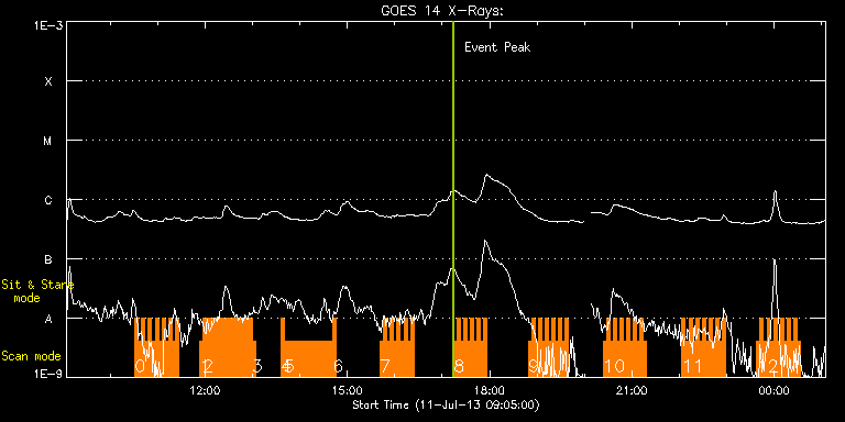 EIS Observation timeline overlay to GOES-Xray curve Code 1" 2" 40" 266" EIS Observations list for this event: STUDY ACRONYM ID DATE OBSERVED DESCRIPTION NOAA# TARGET 0 HH_Flare_162x152 | 35005 | 2013/07/11 10:31:43 | Flare monitor | 1785 | Flare TIMELINE ID DATE OBSERVED FITS FILE XCEN (+W/-E) YCEN (+N/-S) DUR ----------------------------------------------------------------------------------------------------------------- 35005 | 2013/07/11 10:31:43.000 | eis_l0_20130711_103143.fits.gz | 686.73 | -224.46 | 4m10s 35005 | 2013/07/11 10:35:56.000 | eis_l0_20130711_103556.fits.gz | 687.20 | -224.53 | 4m11s 35005 | 2013/07/11 10:40:10.000 | eis_l0_20130711_104010.fits.gz | 687.51 | -224.46 | 4m10s 35005 | 2013/07/11 10:44:23.000 | eis_l0_20130711_104423.fits.gz | 687.97 | -224.46 | 4m11s 35005 | 2013/07/11 10:48:36.000 | eis_l0_20130711_104836.fits.gz | 688.35 | -224.46 | 4m11s 35005 | 2013/07/11 10:52:50.000 | eis_l0_20130711_105250.fits.gz | 688.74 | -224.38 | 4m10s 35005 | 2013/07/11 10:57:03.000 | eis_l0_20130711_105703.fits.gz | 689.13 | -224.30 | 4m11s 35005 | 2013/07/11 11:01:16.000 | eis_l0_20130711_110116.fits.gz | 689.59 | -224.30 | 4m11s 35005 | 2013/07/11 11:05:30.000 | eis_l0_20130711_110530.fits.gz | 690.05 | -224.30 | 4m11s 35005 | 2013/07/11 11:09:43.000 | eis_l0_20130711_110943.fits.gz | 690.36 | -224.22 | 4m11s 35005 | 2013/07/11 11:13:57.000 | eis_l0_20130711_111357.fits.gz | 690.83 | -224.30 | 4m10s 35005 | 2013/07/11 11:18:10.000 | eis_l0_20130711_111810.fits.gz | 691.21 | -223.99 | 4m11s 35005 | 2013/07/11 11:22:24.000 | eis_l0_20130711_112224.fits.gz | 691.60 | -224.15 | 4m10s 1 HH_Flare_162x152 | 35006 | 2013/07/11 11:53:44 | Flare monitor | 1785 | Flare TIMELINE ID DATE OBSERVED FITS FILE XCEN (+W/-E) YCEN (+N/-S) DUR ----------------------------------------------------------------------------------------------------------------- 35006 | 2013/07/11 11:53:44.000 | eis_l0_20130711_115344.fits.gz | 694.53 | -223.76 | 4m10s 2 Atlas_60 | 35007 | 2013/07/11 11:57:59 | Full spectral scan | 1785 | Quiet Sun TIMELINE ID DATE OBSERVED FITS FILE XCEN (+W/-E) YCEN (+N/-S) DUR ----------------------------------------------------------------------------------------------------------------- 35007 | 2013/07/11 11:57:59.000 | eis_l0_20130711_115759.fits.gz | 685.36 | -223.68 | 1h1m39s 3 HH_Flare_162x152 | 35008 | 2013/07/11 12:59:47 | Flare monitor | 1785 | Flare TIMELINE ID DATE OBSERVED FITS FILE XCEN (+W/-E) YCEN (+N/-S) DUR ----------------------------------------------------------------------------------------------------------------- 35008 | 2013/07/11 12:59:47.000 | eis_l0_20130711_125947.fits.gz | 700.71 | -223.53 | 4m10s 4 HH_Flare_162x152 | 35009 | 2013/07/11 13:35:44 | Flare monitor | 1785 | Flare TIMELINE ID DATE OBSERVED FITS FILE XCEN (+W/-E) YCEN (+N/-S) DUR ----------------------------------------------------------------------------------------------------------------- 35009 | 2013/07/11 13:35:44.000 | eis_l0_20130711_133544.fits.gz | 704.04 | -223.22 | 4m10s 5 Atlas_60 | 35010 | 2013/07/11 13:39:59 | Full spectral scan | | Quiet Sun TIMELINE ID DATE OBSERVED FITS FILE XCEN (+W/-E) YCEN (+N/-S) DUR ----------------------------------------------------------------------------------------------------------------- 35010 | 2013/07/11 13:39:59.000 | eis_l0_20130711_133959.fits.gz | 695.01 | -223.14 | 1h1m39s 6 HH_Flare_162x152 | 35011 | 2013/07/11 14:41:47 | Flare monitor | 1785 | Flare TIMELINE ID DATE OBSERVED FITS FILE XCEN (+W/-E) YCEN (+N/-S) DUR ----------------------------------------------------------------------------------------------------------------- 35011 | 2013/07/11 14:41:47.000 | eis_l0_20130711_144147.fits.gz | 710.22 | -222.60 | 4m10s 7 HH_Flare_162x152 | 35012 | 2013/07/11 15:41:53 | Flare monitor | 1785 | Flare TIMELINE ID DATE OBSERVED FITS FILE XCEN (+W/-E) YCEN (+N/-S) DUR ----------------------------------------------------------------------------------------------------------------- 35012 | 2013/07/11 15:41:53.000 | eis_l0_20130711_154153.fits.gz | 715.70 | -222.21 | 4m10s 35012 | 2013/07/11 15:46:06.000 | eis_l0_20130711_154606.fits.gz | 716.01 | -222.21 | 4m11s 35012 | 2013/07/11 15:50:20.000 | eis_l0_20130711_155020.fits.gz | 716.40 | -222.21 | 4m10s 35012 | 2013/07/11 15:54:33.000 | eis_l0_20130711_155433.fits.gz | 716.78 | -222.14 | 4m11s 35012 | 2013/07/11 15:58:46.000 | eis_l0_20130711_155846.fits.gz | 717.17 | -222.14 | 4m11s 35012 | 2013/07/11 16:03:00.000 | eis_l0_20130711_160300.fits.gz | 717.55 | -222.14 | 4m11s 35012 | 2013/07/11 16:07:13.000 | eis_l0_20130711_160713.fits.gz | 717.94 | -221.91 | 4m11s 35012 | 2013/07/11 16:11:27.000 | eis_l0_20130711_161127.fits.gz | 718.33 | -221.98 | 4m10s 35012 | 2013/07/11 16:15:40.000 | eis_l0_20130711_161540.fits.gz | 718.56 | -221.98 | 4m11s 35012 | 2013/07/11 16:19:54.000 | eis_l0_20130711_161954.fits.gz | 719.10 | -222.06 | 4m10s 8 HH_Flare_162x152 | 35013 | 2013/07/11 17:14:46 | Flare monitor | 1785 | Flare TIMELINE ID DATE OBSERVED FITS FILE XCEN (+W/-E) YCEN (+N/-S) DUR ----------------------------------------------------------------------------------------------------------------- 35013 | 2013/07/11 17:14:46.000 | eis_l0_20130711_171446.fits.gz | 723.89 | -221.52 | 4m11s 35013 | 2013/07/11 17:18:59.000 | eis_l0_20130711_171859.fits.gz | 724.35 | -221.52 | 4m11s 35013 | 2013/07/11 17:23:13.000 | eis_l0_20130711_172313.fits.gz | 724.74 | -221.37 | 4m10s 35013 | 2013/07/11 17:27:26.000 | eis_l0_20130711_172726.fits.gz | 725.12 | -221.52 | 4m11s 35013 | 2013/07/11 17:31:40.000 | eis_l0_20130711_173140.fits.gz | 725.43 | -221.44 | 4m10s 35013 | 2013/07/11 17:35:53.000 | eis_l0_20130711_173553.fits.gz | 725.82 | -221.44 | 4m10s 35013 | 2013/07/11 17:40:06.000 | eis_l0_20130711_174006.fits.gz | 726.21 | -221.21 | 4m11s 35013 | 2013/07/11 17:44:20.000 | eis_l0_20130711_174420.fits.gz | 726.75 | -221.37 | 4m10s 35013 | 2013/07/11 17:48:33.000 | eis_l0_20130711_174833.fits.gz | 726.98 | -221.29 | 4m1