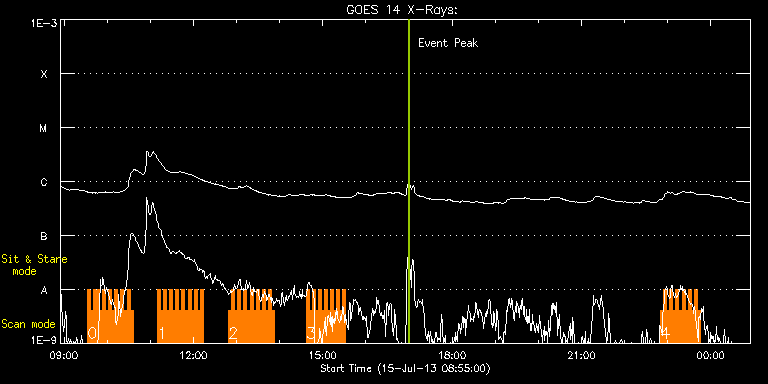 EIS Observation timeline overlay to GOES-Xray curve Code 1" 2" 40" 266" EIS Observations list for this event: STUDY ACRONYM ID DATE OBSERVED DESCRIPTION NOAA# TARGET 0 HH_Flare_162x152 | 35070 | 2013/07/15 09:32:39 | Flare Hunting/Observations | 1787 | Flare TIMELINE ID DATE OBSERVED FITS FILE XCEN (+W/-E) YCEN (+N/-S) DUR ----------------------------------------------------------------------------------------------------------------- 35070 | 2013/07/15 09:32:39.000 | eis_l0_20130715_093239.fits.gz | 898.27 | -233.79 | 4m11s 35070 | 2013/07/15 09:36:53.000 | eis_l0_20130715_093653.fits.gz | 898.27 | -233.63 | 4m10s 35070 | 2013/07/15 09:41:06.000 | eis_l0_20130715_094106.fits.gz | 898.19 | -233.63 | 4m11s 35070 | 2013/07/15 09:45:19.000 | eis_l0_20130715_094519.fits.gz | 898.19 | -233.71 | 2m28s 35070 | 2013/07/15 09:45:52.000 | eis_l0_20130715_094552.fits.gz | 898.27 | -233.87 | 3m38s 35070 | 2013/07/15 09:49:33.000 | eis_l0_20130715_094933.fits.gz | 898.19 | -233.63 | 4m10s 35070 | 2013/07/15 09:53:46.000 | eis_l0_20130715_095346.fits.gz | 898.34 | -233.79 | 4m11s 35070 | 2013/07/15 09:58:00.000 | eis_l0_20130715_095800.fits.gz | 898.27 | -233.79 | 4m10s 35070 | 2013/07/15 10:02:13.000 | eis_l0_20130715_100213.fits.gz | 898.19 | -233.71 | 4m10s 35070 | 2013/07/15 10:06:26.000 | eis_l0_20130715_100626.fits.gz | 898.19 | -233.71 | 4m11s 35070 | 2013/07/15 10:10:40.000 | eis_l0_20130715_101040.fits.gz | 898.19 | -233.56 | 4m10s 35070 | 2013/07/15 10:14:53.000 | eis_l0_20130715_101453.fits.gz | 898.27 | -233.71 | 4m11s 35070 | 2013/07/15 10:19:07.000 | eis_l0_20130715_101907.fits.gz | 898.27 | -233.71 | 4m10s 35070 | 2013/07/15 10:23:20.000 | eis_l0_20130715_102320.fits.gz | 898.27 | -233.63 | 4m11s 35070 | 2013/07/15 10:27:34.000 | eis_l0_20130715_102734.fits.gz | 898.11 | -233.71 | 4m10s 35070 | 2013/07/15 10:31:47.000 | eis_l0_20130715_103147.fits.gz | 898.27 | -233.79 | 4m11s 1 HH_Flare_162x152 | 35071 | 2013/07/15 11:10:13 | Flare Hunting/Observations | 1787 | Flare TIMELINE ID DATE OBSERVED FITS FILE XCEN (+W/-E) YCEN (+N/-S) DUR ----------------------------------------------------------------------------------------------------------------- 35071 | 2013/07/15 11:10:13.000 | eis_l0_20130715_111013.fits.gz | 898.19 | -233.71 | 4m11s 35071 | 2013/07/15 11:14:27.000 | eis_l0_20130715_111427.fits.gz | 898.19 | -233.63 | 4m10s 35071 | 2013/07/15 11:18:40.000 | eis_l0_20130715_111840.fits.gz | 898.34 | -233.71 | 4m10s 35071 | 2013/07/15 11:22:53.000 | eis_l0_20130715_112253.fits.gz | 898.27 | -233.87 | 4m11s 35071 | 2013/07/15 11:27:07.000 | eis_l0_20130715_112707.fits.gz | 898.27 | -233.79 | 4m10s 35071 | 2013/07/15 11:31:20.000 | eis_l0_20130715_113120.fits.gz | 898.19 | -233.71 | 4m11s 35071 | 2013/07/15 11:35:34.000 | eis_l0_20130715_113534.fits.gz | 898.34 | -233.87 | 4m10s 35071 | 2013/07/15 11:39:47.000 | eis_l0_20130715_113947.fits.gz | 898.19 | -233.71 | 4m10s 35071 | 2013/07/15 11:44:00.000 | eis_l0_20130715_114400.fits.gz | 898.11 | -233.71 | 4m11s 35071 | 2013/07/15 11:48:14.000 | eis_l0_20130715_114814.fits.gz | 898.27 | -233.63 | 4m10s 35071 | 2013/07/15 11:52:27.000 | eis_l0_20130715_115227.fits.gz | 898.19 | -233.71 | 4m11s 35071 | 2013/07/15 11:56:41.000 | eis_l0_20130715_115641.fits.gz | 898.27 | -233.79 | 4m10s 35071 | 2013/07/15 12:00:54.000 | eis_l0_20130715_120054.fits.gz | 898.19 | -233.63 | 4m11s 35071 | 2013/07/15 12:05:08.000 | eis_l0_20130715_120508.fits.gz | 898.27 | -233.71 | 4m11s 35071 | 2013/07/15 12:09:22.000 | eis_l0_20130715_120922.fits.gz | 898.27 | -233.56 | 4m10s 2 HH_Flare_162x152 | 35072 | 2013/07/15 12:49:10 | Flare Hunting/Observations | 1787 | Flare TIMELINE ID DATE OBSERVED FITS FILE XCEN (+W/-E) YCEN (+N/-S) DUR ----------------------------------------------------------------------------------------------------------------- 35072 | 2013/07/15 12:49:10.000 | eis_l0_20130715_124910.fits.gz | 898.19 | -233.56 | 4m10s 35072 | 2013/07/15 12:53:23.000 | eis_l0_20130715_125323.fits.gz | 898.11 | -233.56 | 4m11s 35072 | 2013/07/15 12:57:37.000 | eis_l0_20130715_125737.fits.gz | 898.27 | -233.63 | 4m10s 35072 | 2013/07/15 13:01:50.000 | eis_l0_20130715_130150.fits.gz | 898.27 | -233.79 | 4m11s 35072 | 2013/07/15 13:06:03.000 | eis_l0_20130715_130603.fits.gz | 898.27 | -233.71 | 4m11s 35072 | 2013/07/15 13:10:17.000 | eis_l0_20130715_131017.fits.gz | 898.27 | -233.71 | 4m10s 35072 | 2013/07/15 13:14:30.000 | eis_l0_20130715_131430.fits.gz | 898.19 | -233.87 | 4m11s 35072 | 2013/07/15 13:18:43.000 | eis_l0_20130715_131843.fits.gz | 898.27 | -233.79 | 4m11s 35072 | 2013/07/15 13:22:57.000 | eis_l0_20130715_132257.fits.gz | 898.27 | -233.63 | 4m11s 35072 | 2013/07/15 13:27:10.000 | eis_l0_20130715_132710.fits.gz | 898.19 | -233.56 | 4m11s 35072 | 2013/07/15 13:31:24.000 | eis_l0_20130715_133124.fits.gz | 898.11 | -233.56 | 4m10s 35072 | 2013/07/15 13:35:37.000 | eis_l0_20130715_133537.fits.gz | 898.19 | -233.71 | 4m11s 35072 | 2013/07/15 13:39:51.000 | eis_l0_20130715_133951.fits.gz | 898.27 | -233.79 | 4m10s 35072 | 2013/07/15 13:44:04.000 | eis_l0_20130715_134404.fits.gz | 898.34 | -233.79 | 4m11s 35072 | 2013/07/15 13:48:17.000 | eis_l0_20130715_134817.fits.gz | 898.27 | -233.71 | 4m11s 3 HH_Flare_162x152 | 35073 | 2013/07/15 14:37:12 | Flare Hunting/Observations | 1787 | Flare TIMELINE ID DATE OBSERVED FITS FILE XCEN (+W/-E) YCEN (+N/-S) DUR ----------------------------------------------------------------------------------------------------------------- 35073 | 2013/07/15 14:37:12.000 | eis_l0_20130715_143712.fits.gz | 898.34 | -233.71 | 4m11s 35073 | 2013/07/15 14:41:26.000 | eis_l0_20130715_144126.fits.gz | 898.27 | -233.79 | 4m11s 35073 | 2013/07/15 14:45:40.000 | eis_l0_20130715_144540.fits.gz | 898.27 | -233.71 | 4m10s 35073 | 2013/07/15 14:49:53.000 | eis_l0_20130715_144953.fits.gz | 898.27 | -233.71 | 4m10s 35073 | 2013/07/15 14:54:06.000 | eis_l0_20130715_145406.fits.gz | 898.19 | -233.87 | 4m11s 35073 | 2013/07/15 14:58:20.000 | eis_l0_20130715_