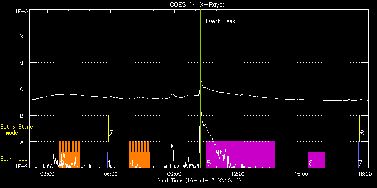 EIS Observation timeline overlay to GOES-Xray curve Code 1" 2" 40" 266" EIS Observations list for this event: STUDY ACRONYM ID DATE OBSERVED DESCRIPTION NOAA# TARGET 0 HH_Flare_162x152 | 35079 | 2013/07/16 03:35:12 | Flare Hunting/Observations | | Flare TIMELINE ID DATE OBSERVED FITS FILE XCEN (+W/-E) YCEN (+N/-S) DUR ----------------------------------------------------------------------------------------------------------------- 35079 | 2013/07/16 03:35:12.000 | eis_l0_20130716_033512.fits.gz | 898.19 | -233.48 | 4m11s 35079 | 2013/07/16 03:39:25.000 | eis_l0_20130716_033925.fits.gz | 898.27 | -233.79 | 4m11s 35079 | 2013/07/16 03:43:38.000 | eis_l0_20130716_034338.fits.gz | 898.34 | -233.79 | 4m11s 35079 | 2013/07/16 03:47:52.000 | eis_l0_20130716_034752.fits.gz | 898.19 | -233.87 | 4m11s 35079 | 2013/07/16 03:52:06.000 | eis_l0_20130716_035206.fits.gz | 898.27 | -233.79 | 4m10s 35079 | 2013/07/16 03:56:19.000 | eis_l0_20130716_035619.fits.gz | 898.19 | -233.63 | 4m10s 35079 | 2013/07/16 04:00:32.000 | eis_l0_20130716_040032.fits.gz | 898.27 | -233.71 | 4m11s 35079 | 2013/07/16 04:04:46.000 | eis_l0_20130716_040446.fits.gz | 898.27 | -233.71 | 4m10s 35079 | 2013/07/16 04:08:59.000 | eis_l0_20130716_040859.fits.gz | 898.19 | -233.71 | 4m11s 35079 | 2013/07/16 04:13:12.000 | eis_l0_20130716_041312.fits.gz | 898.19 | -233.56 | 4m11s 35079 | 2013/07/16 04:17:26.000 | eis_l0_20130716_041726.fits.gz | 898.27 | -233.79 | 4m11s 35079 | 2013/07/16 04:21:39.000 | eis_l0_20130716_042139.fits.gz | 898.19 | -233.79 | 4m11s 35079 | 2013/07/16 04:25:53.000 | eis_l0_20130716_042553.fits.gz | 898.34 | -233.71 | 4m10s 1 PRY_slot_contextLITE | 35061 | 2013/07/16 05:50:18 | Change of EIS pointing and alignment w | 1792 | Active Region TIMELINE ID DATE OBSERVED FITS FILE XCEN (+W/-E) YCEN (+N/-S) DUR ----------------------------------------------------------------------------------------------------------------- 35061 | 2013/07/16 05:50:18.000 | eis_l0_20130716_055018.fits.gz | -15.37 | -0.58 | 2m57s 2 Alignment_266 | 35062 | 2013/07/16 05:53:33 | Change of EIS pointing and alignment w | 1792 | Quiet Sun TIMELINE ID DATE OBSERVED FITS FILE XCEN (+W/-E) YCEN (+N/-S) DUR ----------------------------------------------------------------------------------------------------------------- 35062 | 2013/07/16 05:53:33.000 | eis_l0_20130716_055333.fits.gz | -132.49 | -0.35 | 1m22s 3 XRT_synop_AIA | 35063 | 2013/07/16 05:55:40 | Change of EIS pointing and alignment w | 1792 | Quiet Sun TIMELINE ID DATE OBSERVED FITS FILE XCEN (+W/-E) YCEN (+N/-S) DUR ----------------------------------------------------------------------------------------------------------------- 35063 | 2013/07/16 05:55:40.000 | eis_l0_20130716_055540.fits.gz | -132.41 | -0.58 | 11s 4 HH_Flare_162x152 | 35080 | 2013/07/16 06:52:18 | Flare Hunting/Observations | | Flare TIMELINE ID DATE OBSERVED FITS FILE XCEN (+W/-E) YCEN (+N/-S) DUR ----------------------------------------------------------------------------------------------------------------- 35080 | 2013/07/16 06:52:18.000 | eis_l0_20130716_065218.fits.gz | 898.11 | -233.63 | 4m11s 35080 | 2013/07/16 06:56:32.000 | eis_l0_20130716_065632.fits.gz | 898.27 | -233.63 | 4m10s 35080 | 2013/07/16 07:00:45.000 | eis_l0_20130716_070045.fits.gz | 898.27 | -233.63 | 4m11s 35080 | 2013/07/16 07:04:59.000 | eis_l0_20130716_070459.fits.gz | 898.34 | -233.79 | 4m10s 35080 | 2013/07/16 07:09:12.000 | eis_l0_20130716_070912.fits.gz | 898.27 | -233.79 | 4m11s 35080 | 2013/07/16 07:13:25.000 | eis_l0_20130716_071325.fits.gz | 898.19 | -233.56 | 4m11s 35080 | 2013/07/16 07:17:39.000 | eis_l0_20130716_071739.fits.gz | 898.27 | -233.79 | 4m10s 35080 | 2013/07/16 07:21:52.000 | eis_l0_20130716_072152.fits.gz | 898.27 | -233.87 | 4m11s 35080 | 2013/07/16 07:26:05.000 | eis_l0_20130716_072605.fits.gz | 898.27 | -233.87 | 4m11s 35080 | 2013/07/16 07:30:19.000 | eis_l0_20130716_073019.fits.gz | 898.19 | -233.71 | 4m11s 35080 | 2013/07/16 07:34:32.000 | eis_l0_20130716_073432.fits.gz | 898.19 | -233.71 | 4m11s 35080 | 2013/07/16 07:38:46.000 | eis_l0_20130716_073846.fits.gz | 898.19 | -233.63 | 4m10s 35080 | 2013/07/16 07:42:59.000 | eis_l0_20130716_074259.fits.gz | 898.27 | -233.71 | 4m11s 35080 | 2013/07/16 07:47:13.000 | eis_l0_20130716_074713.fits.gz | 898.27 | -233.71 | 4m10s 5 SYNOP006 | 35083 | 2013/07/16 10:30:27 | Synop006 | | Quiet Sun TIMELINE ID DATE OBSERVED FITS FILE XCEN (+W/-E) YCEN (+N/-S) DUR ----------------------------------------------------------------------------------------------------------------- 35083 | 2013/07/16 10:30:27.000 | eis_l0_20130716_103027.fits.gz | -17.29 | -0.04 | 3h15m34s 6 HPW021_VEL_120x512v2 | 35122 | 2013/07/16 15:19:41 | Active region studies | | Active Region TIMELINE ID DATE OBSERVED FITS FILE XCEN (+W/-E) YCEN (+N/-S) DUR ----------------------------------------------------------------------------------------------------------------- 35122 | 2013/07/16 15:19:41.000 | eis_l0_20130716_151941.fits.gz | 2.76 | -295.97 | 46m53s 7 PRY_slot_contextLITE | 35089 | 2013/07/16 17:40:34 | Change of EIS pointing and aligment wi | 1792 | Active Region TIMELINE ID DATE OBSERVED FITS FILE XCEN (+W/-E) YCEN (+N/-S) DUR ----------------------------------------------------------------------------------------------------------------- 35089 | 2013/07/16 17:40:34.000 | eis_l0_20130716_174034.fits.gz | -18.78 | -39.35 | 2m57s 8 Alignment_266 | 35090 | 2013/07/16 17:43:49 | Change of EIS pointing and alignment w | 1792 | Quiet Sun TIMELINE ID DATE OBSERVED FITS FILE XCEN (+W/-E) YCEN (+N/-S) DUR ----------------------------------------------------------------------------------------------------------------- 35090 | 2013/07/16 17:43:49.000 | eis_l0_20130716_174349.fits.gz | -136.06 | -39.42 | 1m22s 9 XRT_synop_AIA | 35091 | 2013/07/16 17:46:51 | Change of EIS pointing and alignment w | 1792 | Quiet Sun TIMELINE ID DATE OBSERVED FITS FILE XCEN (+W/-E) YCEN (+N/-S) DUR --------------------------------