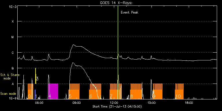 EIS Observation timeline overlay to GOES-Xray curve Code 1" 2" 40" 266" EIS Observations list for this event: STUDY ACRONYM ID DATE OBSERVED DESCRIPTION NOAA# TARGET 0 CORE_FLARE_TR120x120 | 35168 | 2013/07/21 05:05:14 | Flare hunting study. | | Flare TIMELINE ID DATE OBSERVED FITS FILE XCEN (+W/-E) YCEN (+N/-S) DUR ----------------------------------------------------------------------------------------------------------------- 35168 | 2013/07/21 05:05:14.000 | eis_l0_20130721_050514.fits.gz | 116.41 | 210.93 | 2m48s 35168 | 2013/07/21 05:08:05.000 | eis_l0_20130721_050805.fits.gz | 116.87 | 210.86 | 2m48s 35168 | 2013/07/21 05:10:55.000 | eis_l0_20130721_051055.fits.gz | 117.18 | 210.86 | 2m49s 35168 | 2013/07/21 05:13:46.000 | eis_l0_20130721_051346.fits.gz | 117.64 | 210.93 | 2m48s 35168 | 2013/07/21 05:16:37.000 | eis_l0_20130721_051637.fits.gz | 117.95 | 210.93 | 2m47s 35168 | 2013/07/21 05:19:27.000 | eis_l0_20130721_051927.fits.gz | 118.34 | 210.86 | 2m48s 35168 | 2013/07/21 05:22:18.000 | eis_l0_20130721_052218.fits.gz | 118.80 | 210.86 | 2m48s 35168 | 2013/07/21 05:25:09.000 | eis_l0_20130721_052509.fits.gz | 119.19 | 210.78 | 2m48s 35168 | 2013/07/21 05:27:59.000 | eis_l0_20130721_052759.fits.gz | 119.57 | 210.78 | 2m48s 1 PRY_slot_contextLITE | 35151 | 2013/07/21 05:37:50 | Change of EIS pointing and alignment w | 1798 | Active Region TIMELINE ID DATE OBSERVED FITS FILE XCEN (+W/-E) YCEN (+N/-S) DUR ----------------------------------------------------------------------------------------------------------------- 35151 | 2013/07/21 05:37:50.000 | eis_l0_20130721_053750.fits.gz | -18.86 | -39.42 | 2m56s 2 Alignment_266 | 35152 | 2013/07/21 05:41:05 | Change of EIS pointing and alignment w | 1798 | Quiet Sun TIMELINE ID DATE OBSERVED FITS FILE XCEN (+W/-E) YCEN (+N/-S) DUR ----------------------------------------------------------------------------------------------------------------- 35152 | 2013/07/21 05:41:05.000 | eis_l0_20130721_054105.fits.gz | -135.98 | -39.27 | 1m22s 3 XRT_synop_AIA | 35153 | 2013/07/21 05:43:12 | Change of EIS pointing and alignment w | 1798 | Quiet Sun TIMELINE ID DATE OBSERVED FITS FILE XCEN (+W/-E) YCEN (+N/-S) DUR ----------------------------------------------------------------------------------------------------------------- 35153 | 2013/07/21 05:43:12.000 | eis_l0_20130721_054312.fits.gz | -136.06 | -39.42 | 10s 4 HPW021_VEL_120x512v2 | 35169 | 2013/07/21 06:43:34 | AR raster scan for possible limb-to-li | | Active Region TIMELINE ID DATE OBSERVED FITS FILE XCEN (+W/-E) YCEN (+N/-S) DUR ----------------------------------------------------------------------------------------------------------------- 35169 | 2013/07/21 06:43:34.000 | eis_l0_20130721_064334.fits.gz | 131.22 | 211.01 | 46m53s 5 CORE_FLARE_TR120x120 | 35173 | 2013/07/21 08:21:57 | Flare hunting study. | | Flare TIMELINE ID DATE OBSERVED FITS FILE XCEN (+W/-E) YCEN (+N/-S) DUR ----------------------------------------------------------------------------------------------------------------- 35173 | 2013/07/21 08:21:57.000 | eis_l0_20130721_082157.fits.gz | 144.14 | 211.09 | 2m48s 35173 | 2013/07/21 08:24:47.000 | eis_l0_20130721_082447.fits.gz | 144.53 | 211.01 | 2m48s 35173 | 2013/07/21 08:27:38.000 | eis_l0_20130721_082738.fits.gz | 144.91 | 210.93 | 2m48s 35173 | 2013/07/21 08:30:29.000 | eis_l0_20130721_083029.fits.gz | 145.30 | 211.01 | 2m48s 35173 | 2013/07/21 08:33:20.000 | eis_l0_20130721_083320.fits.gz | 145.68 | 211.01 | 2m48s 35173 | 2013/07/21 08:36:10.000 | eis_l0_20130721_083610.fits.gz | 146.15 | 210.86 | 2m49s 35173 | 2013/07/21 08:39:01.000 | eis_l0_20130721_083901.fits.gz | 146.46 | 211.01 | 2m48s 35173 | 2013/07/21 08:41:51.000 | eis_l0_20130721_084151.fits.gz | 146.92 | 211.09 | 2m49s 35173 | 2013/07/21 08:44:42.000 | eis_l0_20130721_084442.fits.gz | 147.23 | 211.01 | 2m49s 35173 | 2013/07/21 08:47:33.000 | eis_l0_20130721_084733.fits.gz | 147.69 | 210.86 | 2m48s 35173 | 2013/07/21 08:50:24.000 | eis_l0_20130721_085024.fits.gz | 148.08 | 210.86 | 2m48s 35173 | 2013/07/21 08:53:15.000 | eis_l0_20130721_085315.fits.gz | 148.39 | 211.01 | 2m48s 35173 | 2013/07/21 08:56:05.000 | eis_l0_20130721_085605.fits.gz | 148.93 | 210.93 | 2m48s 35173 | 2013/07/21 08:58:56.000 | eis_l0_20130721_085856.fits.gz | 149.24 | 211.01 | 2m48s 35173 | 2013/07/21 09:01:47.000 | eis_l0_20130721_090147.fits.gz | 149.70 | 211.09 | 2m48s 35173 | 2013/07/21 09:04:38.000 | eis_l0_20130721_090438.fits.gz | 150.01 | 210.93 | 2m48s 35173 | 2013/07/21 09:07:29.000 | eis_l0_20130721_090729.fits.gz | 150.47 | 211.09 | 2m48s 35173 | 2013/07/21 09:10:19.000 | eis_l0_20130721_091019.fits.gz | 150.94 | 210.93 | 2m48s 6 CORE_FLARE_TR120x120 | 35174 | 2013/07/21 10:00:41 | Flare hunting study. | | Flare TIMELINE ID DATE OBSERVED FITS FILE XCEN (+W/-E) YCEN (+N/-S) DUR ----------------------------------------------------------------------------------------------------------------- 35174 | 2013/07/21 10:00:41.000 | eis_l0_20130721_100041.fits.gz | 157.97 | 211.09 | 2m48s 35174 | 2013/07/21 10:03:32.000 | eis_l0_20130721_100332.fits.gz | 158.43 | 211.17 | 2m48s 35174 | 2013/07/21 10:06:22.000 | eis_l0_20130721_100622.fits.gz | 158.74 | 211.24 | 2m48s 35174 | 2013/07/21 10:09:13.000 | eis_l0_20130721_100913.fits.gz | 159.20 | 211.09 | 2m48s 35174 | 2013/07/21 10:12:03.000 | eis_l0_20130721_101203.fits.gz | 159.51 | 211.24 | 2m49s 35174 | 2013/07/21 10:14:54.000 | eis_l0_20130721_101454.fits.gz | 159.90 | 211.09 | 2m48s 35174 | 2013/07/21 10:17:45.000 | eis_l0_20130721_101745.fits.gz | 160.29 | 211.17 | 2m47s 35174 | 2013/07/21 10:20:35.000 | eis_l0_20130721_102035.fits.gz | 160.75 | 211.09 | 2m48s 35174 | 2013/07/21 10:23:26.000 | eis_l0_20130721_102326.fits.gz | 161.21 | 210.93 | 2m48s 35174 | 2013/07/21 10:26:16.000 | eis_l0_20130721_102616.fits.gz | 161.52 | 210.93 | 2m49s 35174 | 2013/07/21 10:29:07.000 | eis_l0_20130721_102907.fits.gz | 161.91 | 211.09 | 2m48s 35174 | 2013/07/21 10:31:58.000 | eis_l0_20130721_10
