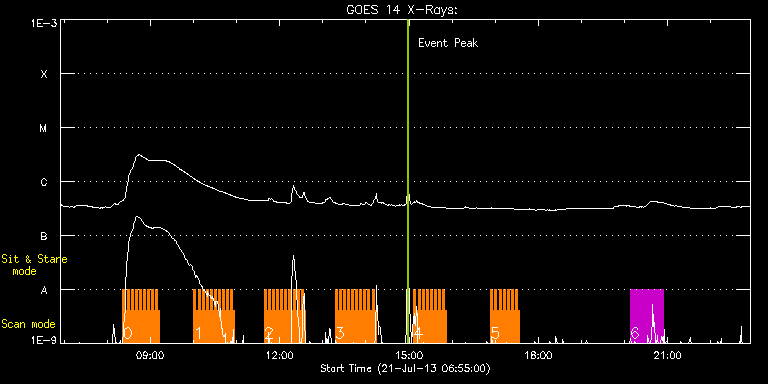 EIS Observation timeline overlay to GOES-Xray curve Code 1" 2" 40" 266" EIS Observations list for this event: STUDY ACRONYM ID DATE OBSERVED DESCRIPTION NOAA# TARGET 0 CORE_FLARE_TR120x120 | 35173 | 2013/07/21 08:21:57 | Flare hunting study. | | Flare TIMELINE ID DATE OBSERVED FITS FILE XCEN (+W/-E) YCEN (+N/-S) DUR ----------------------------------------------------------------------------------------------------------------- 35173 | 2013/07/21 08:21:57.000 | eis_l0_20130721_082157.fits.gz | 144.14 | 211.09 | 2m48s 35173 | 2013/07/21 08:24:47.000 | eis_l0_20130721_082447.fits.gz | 144.53 | 211.01 | 2m48s 35173 | 2013/07/21 08:27:38.000 | eis_l0_20130721_082738.fits.gz | 144.91 | 210.93 | 2m48s 35173 | 2013/07/21 08:30:29.000 | eis_l0_20130721_083029.fits.gz | 145.30 | 211.01 | 2m48s 35173 | 2013/07/21 08:33:20.000 | eis_l0_20130721_083320.fits.gz | 145.68 | 211.01 | 2m48s 35173 | 2013/07/21 08:36:10.000 | eis_l0_20130721_083610.fits.gz | 146.15 | 210.86 | 2m49s 35173 | 2013/07/21 08:39:01.000 | eis_l0_20130721_083901.fits.gz | 146.46 | 211.01 | 2m48s 35173 | 2013/07/21 08:41:51.000 | eis_l0_20130721_084151.fits.gz | 146.92 | 211.09 | 2m49s 35173 | 2013/07/21 08:44:42.000 | eis_l0_20130721_084442.fits.gz | 147.23 | 211.01 | 2m49s 35173 | 2013/07/21 08:47:33.000 | eis_l0_20130721_084733.fits.gz | 147.69 | 210.86 | 2m48s 35173 | 2013/07/21 08:50:24.000 | eis_l0_20130721_085024.fits.gz | 148.08 | 210.86 | 2m48s 35173 | 2013/07/21 08:53:15.000 | eis_l0_20130721_085315.fits.gz | 148.39 | 211.01 | 2m48s 35173 | 2013/07/21 08:56:05.000 | eis_l0_20130721_085605.fits.gz | 148.93 | 210.93 | 2m48s 35173 | 2013/07/21 08:58:56.000 | eis_l0_20130721_085856.fits.gz | 149.24 | 211.01 | 2m48s 35173 | 2013/07/21 09:01:47.000 | eis_l0_20130721_090147.fits.gz | 149.70 | 211.09 | 2m48s 35173 | 2013/07/21 09:04:38.000 | eis_l0_20130721_090438.fits.gz | 150.01 | 210.93 | 2m48s 35173 | 2013/07/21 09:07:29.000 | eis_l0_20130721_090729.fits.gz | 150.47 | 211.09 | 2m48s 35173 | 2013/07/21 09:10:19.000 | eis_l0_20130721_091019.fits.gz | 150.94 | 210.93 | 2m48s 1 CORE_FLARE_TR120x120 | 35174 | 2013/07/21 10:00:41 | Flare hunting study. | | Flare TIMELINE ID DATE OBSERVED FITS FILE XCEN (+W/-E) YCEN (+N/-S) DUR ----------------------------------------------------------------------------------------------------------------- 35174 | 2013/07/21 10:00:41.000 | eis_l0_20130721_100041.fits.gz | 157.97 | 211.09 | 2m48s 35174 | 2013/07/21 10:03:32.000 | eis_l0_20130721_100332.fits.gz | 158.43 | 211.17 | 2m48s 35174 | 2013/07/21 10:06:22.000 | eis_l0_20130721_100622.fits.gz | 158.74 | 211.24 | 2m48s 35174 | 2013/07/21 10:09:13.000 | eis_l0_20130721_100913.fits.gz | 159.20 | 211.09 | 2m48s 35174 | 2013/07/21 10:12:03.000 | eis_l0_20130721_101203.fits.gz | 159.51 | 211.24 | 2m49s 35174 | 2013/07/21 10:14:54.000 | eis_l0_20130721_101454.fits.gz | 159.90 | 211.09 | 2m48s 35174 | 2013/07/21 10:17:45.000 | eis_l0_20130721_101745.fits.gz | 160.29 | 211.17 | 2m47s 35174 | 2013/07/21 10:20:35.000 | eis_l0_20130721_102035.fits.gz | 160.75 | 211.09 | 2m48s 35174 | 2013/07/21 10:23:26.000 | eis_l0_20130721_102326.fits.gz | 161.21 | 210.93 | 2m48s 35174 | 2013/07/21 10:26:16.000 | eis_l0_20130721_102616.fits.gz | 161.52 | 210.93 | 2m49s 35174 | 2013/07/21 10:29:07.000 | eis_l0_20130721_102907.fits.gz | 161.91 | 211.09 | 2m48s 35174 | 2013/07/21 10:31:58.000 | eis_l0_20130721_103158.fits.gz | 162.29 | 211.17 | 2m48s 35174 | 2013/07/21 10:34:49.000 | eis_l0_20130721_103449.fits.gz | 162.83 | 211.17 | 2m48s 35174 | 2013/07/21 10:37:40.000 | eis_l0_20130721_103740.fits.gz | 163.14 | 211.09 | 2m48s 35174 | 2013/07/21 10:40:31.000 | eis_l0_20130721_104031.fits.gz | 163.45 | 211.17 | 2m48s 35174 | 2013/07/21 10:43:22.000 | eis_l0_20130721_104322.fits.gz | 163.91 | 211.17 | 2m48s 35174 | 2013/07/21 10:46:13.000 | eis_l0_20130721_104613.fits.gz | 164.30 | 211.17 | 2m47s 35174 | 2013/07/21 10:49:03.000 | eis_l0_20130721_104903.fits.gz | 164.76 | 211.17 | 2m48s 35174 | 2013/07/21 10:51:53.000 | eis_l0_20130721_105153.fits.gz | 165.15 | 211.17 | 2m48s 35174 | 2013/07/21 10:54:44.000 | eis_l0_20130721_105444.fits.gz | 165.46 | 211.09 | 2m48s 2 CORE_FLARE_TR120x120 | 35175 | 2013/07/21 11:38:44 | Flare hunting study. | 1793 | Flare TIMELINE ID DATE OBSERVED FITS FILE XCEN (+W/-E) YCEN (+N/-S) DUR ----------------------------------------------------------------------------------------------------------------- 35175 | 2013/07/21 11:38:44.000 | eis_l0_20130721_113844.fits.gz | 171.72 | 211.24 | 2m48s 35175 | 2013/07/21 11:41:34.000 | eis_l0_20130721_114134.fits.gz | 172.10 | 211.24 | 2m49s 35175 | 2013/07/21 11:44:26.000 | eis_l0_20130721_114426.fits.gz | 172.49 | 211.32 | 2m48s 35175 | 2013/07/21 11:47:16.000 | eis_l0_20130721_114716.fits.gz | 172.80 | 211.48 | 2m48s 35175 | 2013/07/21 11:50:07.000 | eis_l0_20130721_115007.fits.gz | 173.26 | 211.24 | 2m48s 35175 | 2013/07/21 11:52:57.000 | eis_l0_20130721_115257.fits.gz | 173.65 | 211.17 | 2m49s 35175 | 2013/07/21 11:55:48.000 | eis_l0_20130721_115548.fits.gz | 174.11 | 211.17 | 2m48s 35175 | 2013/07/21 11:58:38.000 | eis_l0_20130721_115838.fits.gz | 174.50 | 211.24 | 2m48s 35175 | 2013/07/21 12:01:29.000 | eis_l0_20130721_120129.fits.gz | 174.88 | 211.17 | 2m48s 35175 | 2013/07/21 12:04:20.000 | eis_l0_20130721_120420.fits.gz | 175.19 | 211.32 | 2m48s 35175 | 2013/07/21 12:07:11.000 | eis_l0_20130721_120711.fits.gz | 175.58 | 211.17 | 2m48s 35175 | 2013/07/21 12:10:01.000 | eis_l0_20130721_121001.fits.gz | 175.97 | 211.32 | 2m49s 35175 | 2013/07/21 12:12:52.000 | eis_l0_20130721_121252.fits.gz | 176.43 | 211.17 | 2m48s 35175 | 2013/07/21 12:15:43.000 | eis_l0_20130721_121543.fits.gz | 176.89 | 211.17 | 2m48s 35175 | 2013/07/21 12:18:34.000 | eis_l0_20130721_121834.fits.gz | 177.12 | 211.17 | 2m48s 35175 | 2013/07/21 12:21:25.000 | eis_l0_20130721_122125.fits.gz | 177.59 | 211.24 | 2m48s 35175 | 2013/07/21 12:24:16.000 | eis_l0_20130721_122416.fits.gz | 177.90 | 211.32 | 2m48s 35175 | 2013/07/21 12:27:0