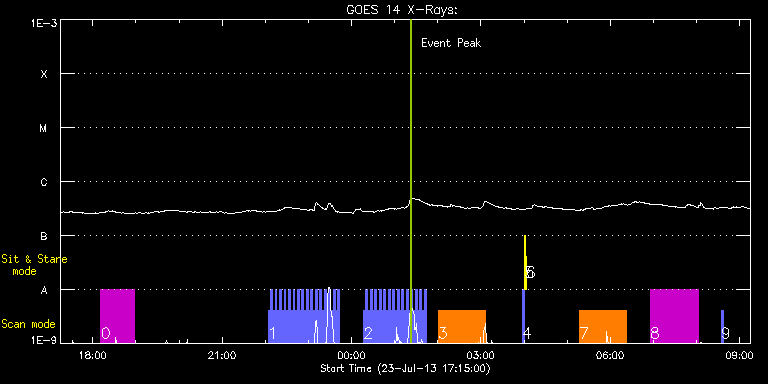 EIS Observation timeline overlay to GOES-Xray curve Code 1" 2" 40" 266" EIS Observations list for this event: STUDY ACRONYM ID DATE OBSERVED DESCRIPTION NOAA# TARGET 0 HPW021_VEL_120x512v2 | 35225 | 2013/07/23 18:11:20 | Scan of returning AR 11777 (now around | 1799 | Active Region TIMELINE ID DATE OBSERVED FITS FILE XCEN (+W/-E) YCEN (+N/-S) DUR ----------------------------------------------------------------------------------------------------------------- 35225 | 2013/07/23 18:11:20.000 | eis_l0_20130723_181120.fits.gz | 22.72 | -343.17 | 46m52s 1 Alignment_modify_v2 | 35214 | 2013/07/23 22:04:06 | Co-Alignment at North Pole | | Quiet Sun TIMELINE ID DATE OBSERVED FITS FILE XCEN (+W/-E) YCEN (+N/-S) DUR ----------------------------------------------------------------------------------------------------------------- 35214 | 2013/07/23 22:04:06.000 | eis_l0_20130723_220406.fits.gz | -9.55 | 914.48 | 2m34s 35214 | 2013/07/23 22:07:13.000 | eis_l0_20130723_220713.fits.gz | -9.55 | 914.41 | 2m34s 35214 | 2013/07/23 22:10:21.000 | eis_l0_20130723_221021.fits.gz | -9.55 | 914.33 | 2m34s 35214 | 2013/07/23 22:13:28.000 | eis_l0_20130723_221328.fits.gz | -9.47 | 914.33 | 2m34s 35214 | 2013/07/23 22:16:36.000 | eis_l0_20130723_221636.fits.gz | -9.55 | 914.33 | 2m34s 35214 | 2013/07/23 22:19:43.000 | eis_l0_20130723_221943.fits.gz | -9.55 | 914.41 | 2m34s 35214 | 2013/07/23 22:22:51.000 | eis_l0_20130723_222251.fits.gz | -9.63 | 914.56 | 2m34s 35214 | 2013/07/23 22:25:59.000 | eis_l0_20130723_222559.fits.gz | -9.55 | 914.48 | 2m33s 35214 | 2013/07/23 22:29:06.000 | eis_l0_20130723_222906.fits.gz | -9.47 | 914.33 | 2m34s 35214 | 2013/07/23 22:32:14.000 | eis_l0_20130723_223214.fits.gz | -9.39 | 914.41 | 2m34s 35214 | 2013/07/23 22:35:21.000 | eis_l0_20130723_223521.fits.gz | -9.39 | 914.33 | 2m34s 35214 | 2013/07/23 22:38:29.000 | eis_l0_20130723_223829.fits.gz | -9.47 | 914.56 | 2m34s 35214 | 2013/07/23 22:41:36.000 | eis_l0_20130723_224136.fits.gz | -9.55 | 914.41 | 2m34s 35214 | 2013/07/23 22:44:43.000 | eis_l0_20130723_224443.fits.gz | -9.47 | 914.25 | 2m35s 35214 | 2013/07/23 22:47:51.000 | eis_l0_20130723_224751.fits.gz | -9.55 | 914.33 | 2m34s 35214 | 2013/07/23 22:50:59.000 | eis_l0_20130723_225059.fits.gz | -9.47 | 914.33 | 2m33s 35214 | 2013/07/23 22:54:06.000 | eis_l0_20130723_225406.fits.gz | -9.47 | 914.25 | 2m34s 35214 | 2013/07/23 22:57:13.000 | eis_l0_20130723_225713.fits.gz | -9.55 | 914.17 | 2m35s 35214 | 2013/07/23 23:00:21.000 | eis_l0_20130723_230021.fits.gz | -9.47 | 914.41 | 2m34s 35214 | 2013/07/23 23:03:29.000 | eis_l0_20130723_230329.fits.gz | -9.55 | 914.41 | 2m34s 35214 | 2013/07/23 23:06:36.000 | eis_l0_20130723_230636.fits.gz | -9.55 | 914.41 | 2m34s 35214 | 2013/07/23 23:09:44.000 | eis_l0_20130723_230944.fits.gz | -9.55 | 914.41 | 2m34s 35214 | 2013/07/23 23:12:51.000 | eis_l0_20130723_231251.fits.gz | -9.55 | 914.41 | 2m34s 35214 | 2013/07/23 23:15:59.000 | eis_l0_20130723_231559.fits.gz | -9.55 | 914.33 | 2m34s 35214 | 2013/07/23 23:19:06.000 | eis_l0_20130723_231906.fits.gz | -9.55 | 914.48 | 2m34s 35214 | 2013/07/23 23:22:14.000 | eis_l0_20130723_232214.fits.gz | -9.55 | 914.41 | 2m34s 35214 | 2013/07/23 23:25:21.000 | eis_l0_20130723_232521.fits.gz | -9.55 | 914.41 | 2m34s 35214 | 2013/07/23 23:28:29.000 | eis_l0_20130723_232829.fits.gz | -9.47 | 914.33 | 2m34s 35214 | 2013/07/23 23:31:36.000 | eis_l0_20130723_233136.fits.gz | -9.47 | 914.41 | 2m34s 35214 | 2013/07/23 23:34:44.000 | eis_l0_20130723_233444.fits.gz | -9.47 | 914.41 | 2m34s 35214 | 2013/07/23 23:37:51.000 | eis_l0_20130723_233751.fits.gz | -9.47 | 914.33 | 2m34s 35214 | 2013/07/23 23:40:59.000 | eis_l0_20130723_234059.fits.gz | -9.47 | 914.17 | 2m34s 2 Alignment_modify_v2 | 35215 | 2013/07/24 00:16:45 | Co-Alignment at East Limb | | Quiet Sun TIMELINE ID DATE OBSERVED FITS FILE XCEN (+W/-E) YCEN (+N/-S) DUR ----------------------------------------------------------------------------------------------------------------- 35215 | 2013/07/24 00:16:45.000 | eis_l0_20130724_001645.fits.gz | -9893.92 | -9963.20 | 2m34s 35215 | 2013/07/24 00:19:52.000 | eis_l0_20130724_001952.fits.gz | -9893.92 | -9963.20 | 2m34s 35215 | 2013/07/24 00:23:00.000 | eis_l0_20130724_002300.fits.gz | -9893.92 | -9963.20 | 2m34s 35215 | 2013/07/24 00:26:08.000 | eis_l0_20130724_002608.fits.gz | -9893.92 | -9963.20 | 2m33s 35215 | 2013/07/24 00:29:15.000 | eis_l0_20130724_002915.fits.gz | -9893.92 | -9963.20 | 2m34s 35215 | 2013/07/24 00:32:23.000 | eis_l0_20130724_003223.fits.gz | -9893.92 | -9963.20 | 2m33s 35215 | 2013/07/24 00:35:30.000 | eis_l0_20130724_003530.fits.gz | -9893.92 | -9963.20 | 2m34s 35215 | 2013/07/24 00:38:38.000 | eis_l0_20130724_003838.fits.gz | -9893.92 | -9963.20 | 2m34s 35215 | 2013/07/24 00:41:45.000 | eis_l0_20130724_004145.fits.gz | -9893.92 | -9963.20 | 2m34s 35215 | 2013/07/24 00:44:53.000 | eis_l0_20130724_004453.fits.gz | -9893.92 | -9963.20 | 2m33s 35215 | 2013/07/24 00:48:00.000 | eis_l0_20130724_004800.fits.gz | -9893.92 | -9963.20 | 2m34s 35215 | 2013/07/24 00:51:08.000 | eis_l0_20130724_005108.fits.gz | -9893.92 | -9963.20 | 2m33s 35215 | 2013/07/24 00:54:15.000 | eis_l0_20130724_005415.fits.gz | -9893.92 | -9963.20 | 2m34s 35215 | 2013/07/24 00:57:23.000 | eis_l0_20130724_005723.fits.gz | -9893.92 | -9963.20 | 2m33s 35215 | 2013/07/24 01:00:30.000 | eis_l0_20130724_010030.fits.gz | -9893.92 | -9963.20 | 2m34s 35215 | 2013/07/24 01:03:37.000 | eis_l0_20130724_010337.fits.gz | -9893.92 | -9963.20 | 2m34s 35215 | 2013/07/24 01:06:45.000 | eis_l0_20130724_010645.fits.gz | -9893.92 | -9963.20 | 2m34s 35215 | 2013/07/24 01:09:52.000 | eis_l0_20130724_010952.fits.gz | -9893.92 | -9963.20 | 2m34s 35215 | 2013/07/24 01:13:00.000 | eis_l0_20130724_011300.fits.gz | -9893.92 | -9963.20 | 2m34s 35215 | 2013/07/24 01:16:08.000 | eis_l0_20130724_011608.fits.gz | -9893.92 | -9963.20 | 2m34s 35215 | 2013/07/24 01:19:15.000 | eis_l0_20130724_011915.fits.gz | -9893.92 | -9963.20 | 2m34s 35215 | 2013/07/24 01