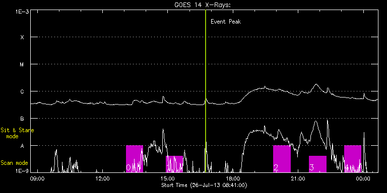 EIS Observation timeline overlay to GOES-Xray curve Code 1" 2" 40" 266" EIS Observations list for this event: STUDY ACRONYM ID DATE OBSERVED DESCRIPTION NOAA# TARGET 0 HPW021_VEL_120x512v2 | 35248 | 2013/07/26 13:04:41 | Monitoring evolution of AR 11799 & 117 | | Active Region TIMELINE ID DATE OBSERVED FITS FILE XCEN (+W/-E) YCEN (+N/-S) DUR ----------------------------------------------------------------------------------------------------------------- 35248 | 2013/07/26 13:04:41.000 | eis_l0_20130726_130441.fits.gz | 607.45 | -268.23 | 46m52s 1 HPW021_VEL_120x512v2 | 35249 | 2013/07/26 14:54:43 | Monitoring evolution of AR 11799 & 117 | 1800 | Active Region TIMELINE ID DATE OBSERVED FITS FILE XCEN (+W/-E) YCEN (+N/-S) DUR ----------------------------------------------------------------------------------------------------------------- 35249 | 2013/07/26 14:54:43.000 | eis_l0_20130726_145443.fits.gz | 615.59 | -267.69 | 46m52s 2 HPW021_VEL_120x512v2 | 35251 | 2013/07/26 19:52:13 | Monitoring evolution of AR 11799 & 117 | 1800 | Active Region TIMELINE ID DATE OBSERVED FITS FILE XCEN (+W/-E) YCEN (+N/-S) DUR ----------------------------------------------------------------------------------------------------------------- 35251 | 2013/07/26 19:52:13.000 | eis_l0_20130726_195213.fits.gz | 649.81 | -265.06 | 46m53s 3 HPW021_VEL_120x512v2 | 35252 | 2013/07/26 21:30:43 | Monitoring evolution of AR 11799 & 117 | 1800 | Active Region TIMELINE ID DATE OBSERVED FITS FILE XCEN (+W/-E) YCEN (+N/-S) DUR ----------------------------------------------------------------------------------------------------------------- 35252 | 2013/07/26 21:30:43.000 | eis_l0_20130726_213043.fits.gz | 655.87 | -264.21 | 46m53s 4 HPW021_VEL_120x512v2 | 35253 | 2013/07/26 23:07:13 | Monitoring evolution of AR 11799 & 117 | 1800 | Active Region TIMELINE ID DATE OBSERVED FITS FILE XCEN (+W/-E) YCEN (+N/-S) DUR ----------------------------------------------------------------------------------------------------------------- 35253 | 2013/07/26 23:07:13.000 | eis_l0_20130726_230713.fits.gz | 666.53 | -263.21 | 46m53s : Check study information : Download file : View thumbnails For this event, also check for: