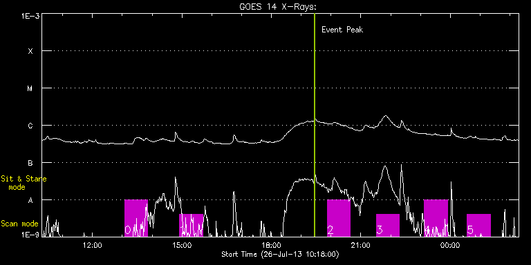 EIS Observation timeline overlay to GOES-Xray curve Code 1" 2" 40" 266" EIS Observations list for this event: STUDY ACRONYM ID DATE OBSERVED DESCRIPTION NOAA# TARGET 0 HPW021_VEL_120x512v2 | 35248 | 2013/07/26 13:04:41 | Monitoring evolution of AR 11799 & 117 | | Active Region TIMELINE ID DATE OBSERVED FITS FILE XCEN (+W/-E) YCEN (+N/-S) DUR ----------------------------------------------------------------------------------------------------------------- 35248 | 2013/07/26 13:04:41.000 | eis_l0_20130726_130441.fits.gz | 607.45 | -268.23 | 46m52s 1 HPW021_VEL_120x512v2 | 35249 | 2013/07/26 14:54:43 | Monitoring evolution of AR 11799 & 117 | 1800 | Active Region TIMELINE ID DATE OBSERVED FITS FILE XCEN (+W/-E) YCEN (+N/-S) DUR ----------------------------------------------------------------------------------------------------------------- 35249 | 2013/07/26 14:54:43.000 | eis_l0_20130726_145443.fits.gz | 615.59 | -267.69 | 46m52s 2 HPW021_VEL_120x512v2 | 35251 | 2013/07/26 19:52:13 | Monitoring evolution of AR 11799 & 117 | 1800 | Active Region TIMELINE ID DATE OBSERVED FITS FILE XCEN (+W/-E) YCEN (+N/-S) DUR ----------------------------------------------------------------------------------------------------------------- 35251 | 2013/07/26 19:52:13.000 | eis_l0_20130726_195213.fits.gz | 649.81 | -265.06 | 46m53s 3 HPW021_VEL_120x512v2 | 35252 | 2013/07/26 21:30:43 | Monitoring evolution of AR 11799 & 117 | 1800 | Active Region TIMELINE ID DATE OBSERVED FITS FILE XCEN (+W/-E) YCEN (+N/-S) DUR ----------------------------------------------------------------------------------------------------------------- 35252 | 2013/07/26 21:30:43.000 | eis_l0_20130726_213043.fits.gz | 655.87 | -264.21 | 46m53s 4 HPW021_VEL_120x512v2 | 35253 | 2013/07/26 23:07:13 | Monitoring evolution of AR 11799 & 117 | 1800 | Active Region TIMELINE ID DATE OBSERVED FITS FILE XCEN (+W/-E) YCEN (+N/-S) DUR ----------------------------------------------------------------------------------------------------------------- 35253 | 2013/07/26 23:07:13.000 | eis_l0_20130726_230713.fits.gz | 666.53 | -263.21 | 46m53s 5 HPW021_VEL_120x512v2 | 35254 | 2013/07/27 00:33:43 | Monitoring evolution of AR 11799 & 117 | 1800 | Active Region TIMELINE ID DATE OBSERVED FITS FILE XCEN (+W/-E) YCEN (+N/-S) DUR ----------------------------------------------------------------------------------------------------------------- 35254 | 2013/07/27 00:33:43.000 | eis_l0_20130727_003343.fits.gz | 675.95 | -262.28 | 46m54s : Check study information : Download file : View thumbnails For this event, also check for:
