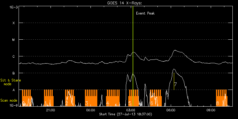 EIS Observation timeline overlay to GOES-Xray curve Code 1" 2" 40" 266" EIS Observations list for this event: STUDY ACRONYM ID DATE OBSERVED DESCRIPTION NOAA# TARGET 0 HH_Flare_162x152 | 35270 | 2013/07/27 18:51:44 | AR and Flare Observation | 1800 | Flare TIMELINE ID DATE OBSERVED FITS FILE XCEN (+W/-E) YCEN (+N/-S) DUR ----------------------------------------------------------------------------------------------------------------- 35270 | 2013/07/27 18:51:44.000 | eis_l0_20130727_185144.fits.gz | 753.58 | -212.24 | 4m11s 35270 | 2013/07/27 18:55:58.000 | eis_l0_20130727_185558.fits.gz | 754.05 | -212.16 | 4m10s 35270 | 2013/07/27 19:00:11.000 | eis_l0_20130727_190011.fits.gz | 754.35 | -212.16 | 4m11s 35270 | 2013/07/27 19:04:25.000 | eis_l0_20130727_190425.fits.gz | 754.74 | -212.24 | 4m10s 35270 | 2013/07/27 19:08:38.000 | eis_l0_20130727_190838.fits.gz | 755.13 | -212.08 | 4m11s 35270 | 2013/07/27 19:12:52.000 | eis_l0_20130727_191252.fits.gz | 755.44 | -212.08 | 4m10s 35270 | 2013/07/27 19:17:05.000 | eis_l0_20130727_191705.fits.gz | 755.90 | -212.00 | 4m11s 35270 | 2013/07/27 19:21:19.000 | eis_l0_20130727_192119.fits.gz | 756.29 | -212.00 | 4m10s 35270 | 2013/07/27 19:25:32.000 | eis_l0_20130727_192532.fits.gz | 756.67 | -211.93 | 4m10s 35270 | 2013/07/27 19:29:45.000 | eis_l0_20130727_192945.fits.gz | 756.98 | -211.85 | 4m11s 1 HH_Flare_162x152 | 35271 | 2013/07/27 20:30:49 | AR and Flare Observation | 1800 | Flare TIMELINE ID DATE OBSERVED FITS FILE XCEN (+W/-E) YCEN (+N/-S) DUR ----------------------------------------------------------------------------------------------------------------- 35271 | 2013/07/27 20:30:49.000 | eis_l0_20130727_203049.fits.gz | 762.23 | -211.23 | 4m11s 35271 | 2013/07/27 20:35:03.000 | eis_l0_20130727_203503.fits.gz | 762.62 | -211.15 | 4m10s 35271 | 2013/07/27 20:39:16.000 | eis_l0_20130727_203916.fits.gz | 763.01 | -211.08 | 4m10s 35271 | 2013/07/27 20:43:29.000 | eis_l0_20130727_204329.fits.gz | 763.39 | -211.00 | 4m11s 35271 | 2013/07/27 20:47:43.000 | eis_l0_20130727_204743.fits.gz | 763.70 | -211.00 | 4m10s 35271 | 2013/07/27 20:51:56.000 | eis_l0_20130727_205156.fits.gz | 764.01 | -210.92 | 4m11s 35271 | 2013/07/27 20:56:10.000 | eis_l0_20130727_205610.fits.gz | 764.40 | -210.92 | 4m10s 35271 | 2013/07/27 21:00:23.000 | eis_l0_20130727_210023.fits.gz | 764.78 | -210.77 | 4m10s 35271 | 2013/07/27 21:04:36.000 | eis_l0_20130727_210436.fits.gz | 765.09 | -210.69 | 4m11s 35271 | 2013/07/27 21:08:50.000 | eis_l0_20130727_210850.fits.gz | 765.55 | -210.69 | 4m11s 2 HH_Flare_162x152 | 35272 | 2013/07/27 22:05:57 | AR and Flare Observation | 1800 | Flare TIMELINE ID DATE OBSERVED FITS FILE XCEN (+W/-E) YCEN (+N/-S) DUR ----------------------------------------------------------------------------------------------------------------- 35272 | 2013/07/27 22:05:57.000 | eis_l0_20130727_220557.fits.gz | 770.34 | -210.15 | 4m11s 35272 | 2013/07/27 22:10:11.000 | eis_l0_20130727_221011.fits.gz | 770.73 | -210.00 | 4m10s 35272 | 2013/07/27 22:14:24.000 | eis_l0_20130727_221424.fits.gz | 771.12 | -210.00 | 4m10s 35272 | 2013/07/27 22:18:37.000 | eis_l0_20130727_221837.fits.gz | 771.50 | -209.92 | 4m11s 35272 | 2013/07/27 22:22:51.000 | eis_l0_20130727_222251.fits.gz | 771.81 | -209.92 | 4m10s 35272 | 2013/07/27 22:27:04.000 | eis_l0_20130727_222704.fits.gz | 772.20 | -209.84 | 4m11s 35272 | 2013/07/27 22:31:18.000 | eis_l0_20130727_223118.fits.gz | 772.51 | -209.69 | 4m10s 35272 | 2013/07/27 22:35:31.000 | eis_l0_20130727_223531.fits.gz | 772.89 | -209.76 | 4m11s 35272 | 2013/07/27 22:39:44.000 | eis_l0_20130727_223944.fits.gz | 773.28 | -209.76 | 4m11s 35272 | 2013/07/27 22:43:58.000 | eis_l0_20130727_224358.fits.gz | 773.59 | -209.53 | 4m10s 3 HH_Flare_162x152 | 35273 | 2013/07/27 23:34:46 | AR and Flare Observation | 1800 | Flare TIMELINE ID DATE OBSERVED FITS FILE XCEN (+W/-E) YCEN (+N/-S) DUR ----------------------------------------------------------------------------------------------------------------- 35273 | 2013/07/27 23:34:46.000 | eis_l0_20130727_233446.fits.gz | 777.76 | -209.07 | 4m11s 35273 | 2013/07/27 23:39:00.000 | eis_l0_20130727_233900.fits.gz | 778.15 | -208.91 | 4m10s 35273 | 2013/07/27 23:43:13.000 | eis_l0_20130727_234313.fits.gz | 778.53 | -208.99 | 4m11s 35273 | 2013/07/27 23:47:26.000 | eis_l0_20130727_234726.fits.gz | 778.84 | -208.91 | 4m11s 35273 | 2013/07/27 23:51:40.000 | eis_l0_20130727_235140.fits.gz | 779.23 | -208.84 | 4m10s 35273 | 2013/07/27 23:55:53.000 | eis_l0_20130727_235553.fits.gz | 779.54 | -208.91 | 4m11s 35273 | 2013/07/28 00:00:07.000 | eis_l0_20130728_000007.fits.gz | 779.85 | -208.76 | 4m10s 35273 | 2013/07/28 00:04:20.000 | eis_l0_20130728_000420.fits.gz | 780.23 | -208.60 | 4m11s 35273 | 2013/07/28 00:08:33.000 | eis_l0_20130728_000833.fits.gz | 780.54 | -208.68 | 4m11s 35273 | 2013/07/28 00:12:47.000 | eis_l0_20130728_001247.fits.gz | 780.93 | -208.68 | 4m10s 35273 | 2013/07/28 00:17:00.000 | eis_l0_20130728_001700.fits.gz | 781.31 | -208.68 | 4m11s 35273 | 2013/07/28 00:21:14.000 | eis_l0_20130728_002114.fits.gz | 781.62 | -208.53 | 4m10s 35273 | 2013/07/28 00:25:27.000 | eis_l0_20130728_002527.fits.gz | 782.01 | -208.37 | 4m11s 4 HH_Flare_162x152 | 35274 | 2013/07/28 01:09:30 | AR and Flare Observation | 1800 | Flare TIMELINE ID DATE OBSERVED FITS FILE XCEN (+W/-E) YCEN (+N/-S) DUR ----------------------------------------------------------------------------------------------------------------- 35274 | 2013/07/28 01:09:30.000 | eis_l0_20130728_010930.fits.gz | 785.48 | -207.91 | 4m11s 35274 | 2013/07/28 01:13:44.000 | eis_l0_20130728_011344.fits.gz | 785.87 | -207.83 | 4m10s 35274 | 2013/07/28 01:17:57.000 | eis_l0_20130728_011757.fits.gz | 786.18 | -207.76 | 4m10s 35274 | 2013/07/28 01:22:10.000 | eis_l0_20130728_012210.fits.gz | 786.57 | -207.83 | 4m11s 35274 | 2013/07/28 01:26:24.000 | eis_l0_20130728_012624.fits.gz | 786.88 | -207.76 | 4m10s 35274 | 2013/07/28 01:30:37.000 | eis_l0_20130728_013037.fits.g