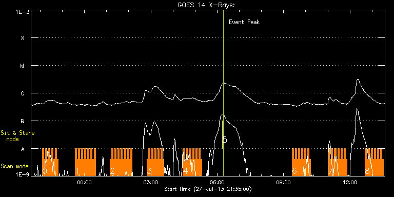 EIS Observation timeline overlay to GOES-Xray curve Code 1" 2" 40" 266" EIS Observations list for this event: STUDY ACRONYM ID DATE OBSERVED DESCRIPTION NOAA# TARGET 0 HH_Flare_162x152 | 35272 | 2013/07/27 22:05:57 | AR and Flare Observation | 1800 | Flare TIMELINE ID DATE OBSERVED FITS FILE XCEN (+W/-E) YCEN (+N/-S) DUR ----------------------------------------------------------------------------------------------------------------- 35272 | 2013/07/27 22:05:57.000 | eis_l0_20130727_220557.fits.gz | 770.34 | -210.15 | 4m11s 35272 | 2013/07/27 22:10:11.000 | eis_l0_20130727_221011.fits.gz | 770.73 | -210.00 | 4m10s 35272 | 2013/07/27 22:14:24.000 | eis_l0_20130727_221424.fits.gz | 771.12 | -210.00 | 4m10s 35272 | 2013/07/27 22:18:37.000 | eis_l0_20130727_221837.fits.gz | 771.50 | -209.92 | 4m11s 35272 | 2013/07/27 22:22:51.000 | eis_l0_20130727_222251.fits.gz | 771.81 | -209.92 | 4m10s 35272 | 2013/07/27 22:27:04.000 | eis_l0_20130727_222704.fits.gz | 772.20 | -209.84 | 4m11s 35272 | 2013/07/27 22:31:18.000 | eis_l0_20130727_223118.fits.gz | 772.51 | -209.69 | 4m10s 35272 | 2013/07/27 22:35:31.000 | eis_l0_20130727_223531.fits.gz | 772.89 | -209.76 | 4m11s 35272 | 2013/07/27 22:39:44.000 | eis_l0_20130727_223944.fits.gz | 773.28 | -209.76 | 4m11s 35272 | 2013/07/27 22:43:58.000 | eis_l0_20130727_224358.fits.gz | 773.59 | -209.53 | 4m10s 1 HH_Flare_162x152 | 35273 | 2013/07/27 23:34:46 | AR and Flare Observation | 1800 | Flare TIMELINE ID DATE OBSERVED FITS FILE XCEN (+W/-E) YCEN (+N/-S) DUR ----------------------------------------------------------------------------------------------------------------- 35273 | 2013/07/27 23:34:46.000 | eis_l0_20130727_233446.fits.gz | 777.76 | -209.07 | 4m11s 35273 | 2013/07/27 23:39:00.000 | eis_l0_20130727_233900.fits.gz | 778.15 | -208.91 | 4m10s 35273 | 2013/07/27 23:43:13.000 | eis_l0_20130727_234313.fits.gz | 778.53 | -208.99 | 4m11s 35273 | 2013/07/27 23:47:26.000 | eis_l0_20130727_234726.fits.gz | 778.84 | -208.91 | 4m11s 35273 | 2013/07/27 23:51:40.000 | eis_l0_20130727_235140.fits.gz | 779.23 | -208.84 | 4m10s 35273 | 2013/07/27 23:55:53.000 | eis_l0_20130727_235553.fits.gz | 779.54 | -208.91 | 4m11s 35273 | 2013/07/28 00:00:07.000 | eis_l0_20130728_000007.fits.gz | 779.85 | -208.76 | 4m10s 35273 | 2013/07/28 00:04:20.000 | eis_l0_20130728_000420.fits.gz | 780.23 | -208.60 | 4m11s 35273 | 2013/07/28 00:08:33.000 | eis_l0_20130728_000833.fits.gz | 780.54 | -208.68 | 4m11s 35273 | 2013/07/28 00:12:47.000 | eis_l0_20130728_001247.fits.gz | 780.93 | -208.68 | 4m10s 35273 | 2013/07/28 00:17:00.000 | eis_l0_20130728_001700.fits.gz | 781.31 | -208.68 | 4m11s 35273 | 2013/07/28 00:21:14.000 | eis_l0_20130728_002114.fits.gz | 781.62 | -208.53 | 4m10s 35273 | 2013/07/28 00:25:27.000 | eis_l0_20130728_002527.fits.gz | 782.01 | -208.37 | 4m11s 2 HH_Flare_162x152 | 35274 | 2013/07/28 01:09:30 | AR and Flare Observation | 1800 | Flare TIMELINE ID DATE OBSERVED FITS FILE XCEN (+W/-E) YCEN (+N/-S) DUR ----------------------------------------------------------------------------------------------------------------- 35274 | 2013/07/28 01:09:30.000 | eis_l0_20130728_010930.fits.gz | 785.48 | -207.91 | 4m11s 35274 | 2013/07/28 01:13:44.000 | eis_l0_20130728_011344.fits.gz | 785.87 | -207.83 | 4m10s 35274 | 2013/07/28 01:17:57.000 | eis_l0_20130728_011757.fits.gz | 786.18 | -207.76 | 4m10s 35274 | 2013/07/28 01:22:10.000 | eis_l0_20130728_012210.fits.gz | 786.57 | -207.83 | 4m11s 35274 | 2013/07/28 01:26:24.000 | eis_l0_20130728_012624.fits.gz | 786.88 | -207.76 | 4m10s 35274 | 2013/07/28 01:30:37.000 | eis_l0_20130728_013037.fits.gz | 787.18 | -207.68 | 4m10s 35274 | 2013/07/28 01:34:50.000 | eis_l0_20130728_013450.fits.gz | 787.49 | -207.60 | 4m11s 35274 | 2013/07/28 01:39:04.000 | eis_l0_20130728_013904.fits.gz | 787.88 | -207.60 | 4m11s 35274 | 2013/07/28 01:43:17.000 | eis_l0_20130728_014317.fits.gz | 788.27 | -207.52 | 4m11s 35274 | 2013/07/28 01:47:31.000 | eis_l0_20130728_014731.fits.gz | 788.58 | -207.52 | 4m11s 35274 | 2013/07/28 01:51:44.000 | eis_l0_20130728_015144.fits.gz | 788.88 | -207.45 | 4m11s 35274 | 2013/07/28 01:55:58.000 | eis_l0_20130728_015558.fits.gz | 789.19 | -207.29 | 4m10s 35274 | 2013/07/28 02:00:11.000 | eis_l0_20130728_020011.fits.gz | 789.58 | -207.29 | 4m10s 35274 | 2013/07/28 02:04:24.000 | eis_l0_20130728_020424.fits.gz | 789.89 | -207.29 | 4m11s 3 HH_Flare_162x152 | 35275 | 2013/07/28 02:49:20 | AR and Flare Observation | 1800 | Flare TIMELINE ID DATE OBSERVED FITS FILE XCEN (+W/-E) YCEN (+N/-S) DUR ----------------------------------------------------------------------------------------------------------------- 35275 | 2013/07/28 02:49:20.000 | eis_l0_20130728_024920.fits.gz | 793.44 | -206.67 | 4m11s 35275 | 2013/07/28 02:53:33.000 | eis_l0_20130728_025333.fits.gz | 793.67 | -206.60 | 4m11s 35275 | 2013/07/28 02:57:47.000 | eis_l0_20130728_025747.fits.gz | 794.14 | -206.67 | 4m10s 35275 | 2013/07/28 03:02:00.000 | eis_l0_20130728_030200.fits.gz | 794.60 | -206.60 | 4m11s 35275 | 2013/07/28 03:06:14.000 | eis_l0_20130728_030614.fits.gz | 794.76 | -206.60 | 4m10s 35275 | 2013/07/28 03:10:27.000 | eis_l0_20130728_031027.fits.gz | 795.14 | -206.52 | 4m11s 35275 | 2013/07/28 03:14:40.000 | eis_l0_20130728_031440.fits.gz | 795.37 | -206.44 | 4m11s 35275 | 2013/07/28 03:18:54.000 | eis_l0_20130728_031854.fits.gz | 795.68 | -206.44 | 4m10s 35275 | 2013/07/28 03:23:07.000 | eis_l0_20130728_032307.fits.gz | 796.07 | -206.37 | 4m11s 35275 | 2013/07/28 03:27:21.000 | eis_l0_20130728_032721.fits.gz | 796.38 | -206.29 | 4m10s 35275 | 2013/07/28 03:31:34.000 | eis_l0_20130728_033134.fits.gz | 796.76 | -206.29 | 4m11s 4 HH_Flare_162x152 | 35276 | 2013/07/28 04:27:26 | AR and Flare Observation | 1800 | Flare TIMELINE ID DATE OBSERVED FITS FILE XCEN (+W/-E) YCEN (+N/-S) DUR ----------------------------------------------------------------------------------------------------------------- 35276 | 2013/07/28 04:27:26.000 | eis_l0_20130728_042726.fits.g