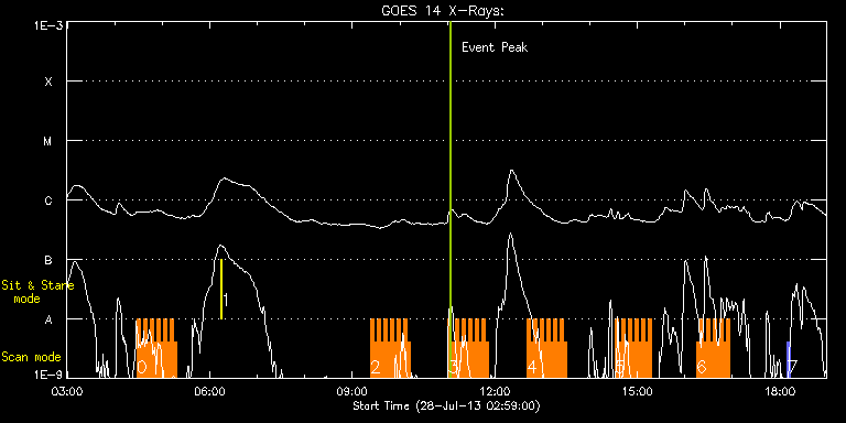 EIS Observation timeline overlay to GOES-Xray curve Code 1" 2" 40" 266" EIS Observations list for this event: STUDY ACRONYM ID DATE OBSERVED DESCRIPTION NOAA# TARGET 0 HH_Flare_162x152 | 35276 | 2013/07/28 04:27:26 | AR and Flare Observation | 1800 | Flare TIMELINE ID DATE OBSERVED FITS FILE XCEN (+W/-E) YCEN (+N/-S) DUR ----------------------------------------------------------------------------------------------------------------- 35276 | 2013/07/28 04:27:26.000 | eis_l0_20130728_042726.fits.gz | 801.01 | -205.51 | 4m10s 35276 | 2013/07/28 04:31:39.000 | eis_l0_20130728_043139.fits.gz | 801.40 | -205.51 | 4m11s 35276 | 2013/07/28 04:35:53.000 | eis_l0_20130728_043553.fits.gz | 801.78 | -205.51 | 4m10s 35276 | 2013/07/28 04:40:06.000 | eis_l0_20130728_044006.fits.gz | 802.02 | -205.44 | 4m11s 35276 | 2013/07/28 04:44:20.000 | eis_l0_20130728_044420.fits.gz | 802.33 | -205.36 | 4m10s 35276 | 2013/07/28 04:48:33.000 | eis_l0_20130728_044833.fits.gz | 802.63 | -205.28 | 4m10s 35276 | 2013/07/28 04:52:46.000 | eis_l0_20130728_045246.fits.gz | 803.10 | -205.36 | 4m11s 35276 | 2013/07/28 04:57:00.000 | eis_l0_20130728_045700.fits.gz | 803.25 | -205.28 | 4m10s 35276 | 2013/07/28 05:01:13.000 | eis_l0_20130728_050113.fits.gz | 803.56 | -205.13 | 4m11s 35276 | 2013/07/28 05:05:27.000 | eis_l0_20130728_050527.fits.gz | 803.95 | -205.13 | 4m10s 35276 | 2013/07/28 05:09:40.000 | eis_l0_20130728_050940.fits.gz | 804.26 | -204.97 | 4m11s 35276 | 2013/07/28 05:13:54.000 | eis_l0_20130728_051354.fits.gz | 804.64 | -204.97 | 4m10s 1 XRT_synop_AIA | 35278 | 2013/07/28 06:14:21 | synop | 1801 | Quiet Sun TIMELINE ID DATE OBSERVED FITS FILE XCEN (+W/-E) YCEN (+N/-S) DUR ----------------------------------------------------------------------------------------------------------------- 35278 | 2013/07/28 06:14:21.000 | eis_l0_20130728_061421.fits.gz | -132.49 | -0.50 | 10s 2 HH_Flare_162x152 | 35279 | 2013/07/28 09:22:34 | AR and Flare Observation | 1800 | Flare TIMELINE ID DATE OBSERVED FITS FILE XCEN (+W/-E) YCEN (+N/-S) DUR ----------------------------------------------------------------------------------------------------------------- 35279 | 2013/07/28 09:22:34.000 | eis_l0_20130728_092234.fits.gz | 822.64 | -201.88 | 4m11s 35279 | 2013/07/28 09:26:48.000 | eis_l0_20130728_092648.fits.gz | 823.03 | -201.81 | 4m10s 35279 | 2013/07/28 09:31:01.000 | eis_l0_20130728_093101.fits.gz | 823.34 | -201.88 | 4m11s 35279 | 2013/07/28 09:35:15.000 | eis_l0_20130728_093515.fits.gz | 823.57 | -201.96 | 4m10s 35279 | 2013/07/28 09:39:28.000 | eis_l0_20130728_093928.fits.gz | 823.88 | -201.88 | 4m10s 35279 | 2013/07/28 09:43:41.000 | eis_l0_20130728_094341.fits.gz | 824.26 | -201.81 | 4m11s 35279 | 2013/07/28 09:47:55.000 | eis_l0_20130728_094755.fits.gz | 824.42 | -201.73 | 4m10s 35279 | 2013/07/28 09:52:08.000 | eis_l0_20130728_095208.fits.gz | 824.65 | -201.58 | 4m11s 35279 | 2013/07/28 09:56:22.000 | eis_l0_20130728_095622.fits.gz | 825.04 | -201.65 | 4m10s 35279 | 2013/07/28 10:00:35.000 | eis_l0_20130728_100035.fits.gz | 825.42 | -201.58 | 4m11s 35279 | 2013/07/28 10:04:48.000 | eis_l0_20130728_100448.fits.gz | 825.73 | -201.50 | 4m11s 35279 | 2013/07/28 10:09:02.000 | eis_l0_20130728_100902.fits.gz | 825.96 | -201.42 | 4m10s 3 HH_Flare_162x152 | 35280 | 2013/07/28 11:01:04 | AR and Flare Observation | 1800 | Flare TIMELINE ID DATE OBSERVED FITS FILE XCEN (+W/-E) YCEN (+N/-S) DUR ----------------------------------------------------------------------------------------------------------------- 35280 | 2013/07/28 11:01:04.000 | eis_l0_20130728_110104.fits.gz | 829.52 | -200.65 | 4m10s 35280 | 2013/07/28 11:05:17.000 | eis_l0_20130728_110517.fits.gz | 829.83 | -200.80 | 4m11s 35280 | 2013/07/28 11:09:31.000 | eis_l0_20130728_110931.fits.gz | 830.06 | -200.65 | 4m10s 35280 | 2013/07/28 11:13:44.000 | eis_l0_20130728_111344.fits.gz | 830.37 | -200.73 | 4m10s 35280 | 2013/07/28 11:17:57.000 | eis_l0_20130728_111757.fits.gz | 830.67 | -200.57 | 4m11s 35280 | 2013/07/28 11:22:11.000 | eis_l0_20130728_112211.fits.gz | 830.98 | -200.42 | 4m10s 35280 | 2013/07/28 11:26:24.000 | eis_l0_20130728_112624.fits.gz | 831.22 | -200.57 | 4m11s 35280 | 2013/07/28 11:30:37.000 | eis_l0_20130728_113037.fits.gz | 831.37 | -200.34 | 4m11s 35280 | 2013/07/28 11:34:51.000 | eis_l0_20130728_113451.fits.gz | 831.68 | -200.34 | 4m10s 35280 | 2013/07/28 11:39:04.000 | eis_l0_20130728_113904.fits.gz | 832.07 | -200.34 | 4m11s 35280 | 2013/07/28 11:43:18.000 | eis_l0_20130728_114318.fits.gz | 832.45 | -200.42 | 4m10s 35280 | 2013/07/28 11:47:31.000 | eis_l0_20130728_114731.fits.gz | 832.61 | -200.26 | 4m11s 4 HH_Flare_162x152 | 35281 | 2013/07/28 12:40:24 | AR and Flare Observation | 1800 | Flare TIMELINE ID DATE OBSERVED FITS FILE XCEN (+W/-E) YCEN (+N/-S) DUR ----------------------------------------------------------------------------------------------------------------- 35281 | 2013/07/28 12:40:24.000 | eis_l0_20130728_124024.fits.gz | 836.08 | -199.49 | 4m10s 35281 | 2013/07/28 12:44:37.000 | eis_l0_20130728_124437.fits.gz | 836.47 | -199.41 | 4m10s 35281 | 2013/07/28 12:48:50.000 | eis_l0_20130728_124850.fits.gz | 836.70 | -199.49 | 4m11s 35281 | 2013/07/28 12:53:04.000 | eis_l0_20130728_125304.fits.gz | 837.01 | -199.26 | 4m10s 35281 | 2013/07/28 12:57:17.000 | eis_l0_20130728_125717.fits.gz | 837.24 | -199.34 | 4m11s 35281 | 2013/07/28 13:01:31.000 | eis_l0_20130728_130131.fits.gz | 837.55 | -199.26 | 4m10s 35281 | 2013/07/28 13:05:44.000 | eis_l0_20130728_130544.fits.gz | 837.86 | -199.26 | 4m11s 35281 | 2013/07/28 13:09:58.000 | eis_l0_20130728_130958.fits.gz | 838.09 | -199.10 | 4m10s 35281 | 2013/07/28 13:14:11.000 | eis_l0_20130728_131411.fits.gz | 838.40 | -199.03 | 4m11s 35281 | 2013/07/28 13:18:24.000 | eis_l0_20130728_131824.fits.gz | 838.71 | -199.03 | 4m11s 35281 | 2013/07/28 13:22:38.000 | eis_l0_20130728_132238.fits.gz | 838.86 | -199.03 | 4m10s 35281 | 2013/07/28 13:26:51.000 | eis_l0_20130728_132651.fits.gz | 839.17 | -198.87 