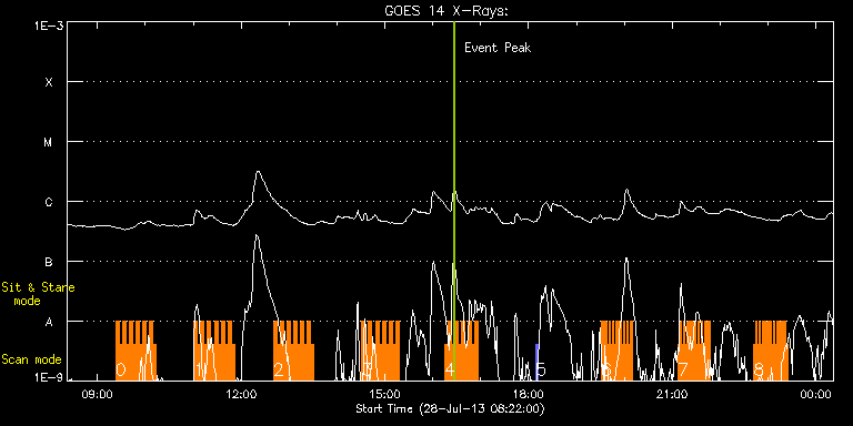 EIS Observation timeline overlay to GOES-Xray curve Code 1" 2" 40" 266" EIS Observations list for this event: STUDY ACRONYM ID DATE OBSERVED DESCRIPTION NOAA# TARGET 0 HH_Flare_162x152 | 35279 | 2013/07/28 09:22:34 | AR and Flare Observation | 1800 | Flare TIMELINE ID DATE OBSERVED FITS FILE XCEN (+W/-E) YCEN (+N/-S) DUR ----------------------------------------------------------------------------------------------------------------- 35279 | 2013/07/28 09:22:34.000 | eis_l0_20130728_092234.fits.gz | 822.64 | -201.88 | 4m11s 35279 | 2013/07/28 09:26:48.000 | eis_l0_20130728_092648.fits.gz | 823.03 | -201.81 | 4m10s 35279 | 2013/07/28 09:31:01.000 | eis_l0_20130728_093101.fits.gz | 823.34 | -201.88 | 4m11s 35279 | 2013/07/28 09:35:15.000 | eis_l0_20130728_093515.fits.gz | 823.57 | -201.96 | 4m10s 35279 | 2013/07/28 09:39:28.000 | eis_l0_20130728_093928.fits.gz | 823.88 | -201.88 | 4m10s 35279 | 2013/07/28 09:43:41.000 | eis_l0_20130728_094341.fits.gz | 824.26 | -201.81 | 4m11s 35279 | 2013/07/28 09:47:55.000 | eis_l0_20130728_094755.fits.gz | 824.42 | -201.73 | 4m10s 35279 | 2013/07/28 09:52:08.000 | eis_l0_20130728_095208.fits.gz | 824.65 | -201.58 | 4m11s 35279 | 2013/07/28 09:56:22.000 | eis_l0_20130728_095622.fits.gz | 825.04 | -201.65 | 4m10s 35279 | 2013/07/28 10:00:35.000 | eis_l0_20130728_100035.fits.gz | 825.42 | -201.58 | 4m11s 35279 | 2013/07/28 10:04:48.000 | eis_l0_20130728_100448.fits.gz | 825.73 | -201.50 | 4m11s 35279 | 2013/07/28 10:09:02.000 | eis_l0_20130728_100902.fits.gz | 825.96 | -201.42 | 4m10s 1 HH_Flare_162x152 | 35280 | 2013/07/28 11:01:04 | AR and Flare Observation | 1800 | Flare TIMELINE ID DATE OBSERVED FITS FILE XCEN (+W/-E) YCEN (+N/-S) DUR ----------------------------------------------------------------------------------------------------------------- 35280 | 2013/07/28 11:01:04.000 | eis_l0_20130728_110104.fits.gz | 829.52 | -200.65 | 4m10s 35280 | 2013/07/28 11:05:17.000 | eis_l0_20130728_110517.fits.gz | 829.83 | -200.80 | 4m11s 35280 | 2013/07/28 11:09:31.000 | eis_l0_20130728_110931.fits.gz | 830.06 | -200.65 | 4m10s 35280 | 2013/07/28 11:13:44.000 | eis_l0_20130728_111344.fits.gz | 830.37 | -200.73 | 4m10s 35280 | 2013/07/28 11:17:57.000 | eis_l0_20130728_111757.fits.gz | 830.67 | -200.57 | 4m11s 35280 | 2013/07/28 11:22:11.000 | eis_l0_20130728_112211.fits.gz | 830.98 | -200.42 | 4m10s 35280 | 2013/07/28 11:26:24.000 | eis_l0_20130728_112624.fits.gz | 831.22 | -200.57 | 4m11s 35280 | 2013/07/28 11:30:37.000 | eis_l0_20130728_113037.fits.gz | 831.37 | -200.34 | 4m11s 35280 | 2013/07/28 11:34:51.000 | eis_l0_20130728_113451.fits.gz | 831.68 | -200.34 | 4m10s 35280 | 2013/07/28 11:39:04.000 | eis_l0_20130728_113904.fits.gz | 832.07 | -200.34 | 4m11s 35280 | 2013/07/28 11:43:18.000 | eis_l0_20130728_114318.fits.gz | 832.45 | -200.42 | 4m10s 35280 | 2013/07/28 11:47:31.000 | eis_l0_20130728_114731.fits.gz | 832.61 | -200.26 | 4m11s 2 HH_Flare_162x152 | 35281 | 2013/07/28 12:40:24 | AR and Flare Observation | 1800 | Flare TIMELINE ID DATE OBSERVED FITS FILE XCEN (+W/-E) YCEN (+N/-S) DUR ----------------------------------------------------------------------------------------------------------------- 35281 | 2013/07/28 12:40:24.000 | eis_l0_20130728_124024.fits.gz | 836.08 | -199.49 | 4m10s 35281 | 2013/07/28 12:44:37.000 | eis_l0_20130728_124437.fits.gz | 836.47 | -199.41 | 4m10s 35281 | 2013/07/28 12:48:50.000 | eis_l0_20130728_124850.fits.gz | 836.70 | -199.49 | 4m11s 35281 | 2013/07/28 12:53:04.000 | eis_l0_20130728_125304.fits.gz | 837.01 | -199.26 | 4m10s 35281 | 2013/07/28 12:57:17.000 | eis_l0_20130728_125717.fits.gz | 837.24 | -199.34 | 4m11s 35281 | 2013/07/28 13:01:31.000 | eis_l0_20130728_130131.fits.gz | 837.55 | -199.26 | 4m10s 35281 | 2013/07/28 13:05:44.000 | eis_l0_20130728_130544.fits.gz | 837.86 | -199.26 | 4m11s 35281 | 2013/07/28 13:09:58.000 | eis_l0_20130728_130958.fits.gz | 838.09 | -199.10 | 4m10s 35281 | 2013/07/28 13:14:11.000 | eis_l0_20130728_131411.fits.gz | 838.40 | -199.03 | 4m11s 35281 | 2013/07/28 13:18:24.000 | eis_l0_20130728_131824.fits.gz | 838.71 | -199.03 | 4m11s 35281 | 2013/07/28 13:22:38.000 | eis_l0_20130728_132238.fits.gz | 838.86 | -199.03 | 4m10s 35281 | 2013/07/28 13:26:51.000 | eis_l0_20130728_132651.fits.gz | 839.17 | -198.87 | 4m11s 3 HH_Flare_162x152 | 35282 | 2013/07/28 14:31:12 | AR and Flare Observation | 1800 | Flare TIMELINE ID DATE OBSERVED FITS FILE XCEN (+W/-E) YCEN (+N/-S) DUR ----------------------------------------------------------------------------------------------------------------- 35282 | 2013/07/28 14:31:12.000 | eis_l0_20130728_143112.fits.gz | 843.34 | -198.18 | 4m10s 35282 | 2013/07/28 14:35:25.000 | eis_l0_20130728_143525.fits.gz | 843.58 | -198.02 | 4m11s 35282 | 2013/07/28 14:39:38.000 | eis_l0_20130728_143938.fits.gz | 843.89 | -198.02 | 4m11s 35282 | 2013/07/28 14:43:52.000 | eis_l0_20130728_144352.fits.gz | 844.19 | -198.02 | 4m11s 35282 | 2013/07/28 14:48:05.000 | eis_l0_20130728_144805.fits.gz | 844.35 | -197.87 | 4m11s 35282 | 2013/07/28 14:52:19.000 | eis_l0_20130728_145219.fits.gz | 844.73 | -197.87 | 4m10s 35282 | 2013/07/28 14:56:32.000 | eis_l0_20130728_145632.fits.gz | 844.97 | -197.71 | 4m11s 35282 | 2013/07/28 15:00:46.000 | eis_l0_20130728_150046.fits.gz | 845.20 | -197.87 | 4m10s 35282 | 2013/07/28 15:04:59.000 | eis_l0_20130728_150459.fits.gz | 845.51 | -197.71 | 4m11s 35282 | 2013/07/28 15:09:12.000 | eis_l0_20130728_150912.fits.gz | 845.66 | -197.64 | 4m11s 35282 | 2013/07/28 15:13:26.000 | eis_l0_20130728_151326.fits.gz | 845.97 | -197.56 | 4m11s 4 HH_Flare_162x152 | 35283 | 2013/07/28 16:14:25 | AR and Flare Observation | 1800 | Flare TIMELINE ID DATE OBSERVED FITS FILE XCEN (+W/-E) YCEN (+N/-S) DUR ----------------------------------------------------------------------------------------------------------------- 35283 | 2013/07/28 16:14:25.000 | eis_l0_20130728_161425.fits.gz | 849.76 | -196.79 | 4m10s 35283 | 2013/07/28 16:18:38.000 | eis_l0_20130728_161838.fits.g