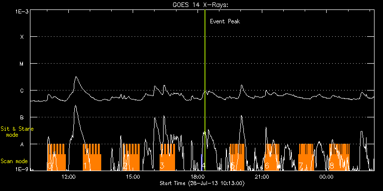 EIS Observation timeline overlay to GOES-Xray curve Code 1" 2" 40" 266" EIS Observations list for this event: STUDY ACRONYM ID DATE OBSERVED DESCRIPTION NOAA# TARGET 0 HH_Flare_162x152 | 35280 | 2013/07/28 11:01:04 | AR and Flare Observation | 1800 | Flare TIMELINE ID DATE OBSERVED FITS FILE XCEN (+W/-E) YCEN (+N/-S) DUR ----------------------------------------------------------------------------------------------------------------- 35280 | 2013/07/28 11:01:04.000 | eis_l0_20130728_110104.fits.gz | 829.52 | -200.65 | 4m10s 35280 | 2013/07/28 11:05:17.000 | eis_l0_20130728_110517.fits.gz | 829.83 | -200.80 | 4m11s 35280 | 2013/07/28 11:09:31.000 | eis_l0_20130728_110931.fits.gz | 830.06 | -200.65 | 4m10s 35280 | 2013/07/28 11:13:44.000 | eis_l0_20130728_111344.fits.gz | 830.37 | -200.73 | 4m10s 35280 | 2013/07/28 11:17:57.000 | eis_l0_20130728_111757.fits.gz | 830.67 | -200.57 | 4m11s 35280 | 2013/07/28 11:22:11.000 | eis_l0_20130728_112211.fits.gz | 830.98 | -200.42 | 4m10s 35280 | 2013/07/28 11:26:24.000 | eis_l0_20130728_112624.fits.gz | 831.22 | -200.57 | 4m11s 35280 | 2013/07/28 11:30:37.000 | eis_l0_20130728_113037.fits.gz | 831.37 | -200.34 | 4m11s 35280 | 2013/07/28 11:34:51.000 | eis_l0_20130728_113451.fits.gz | 831.68 | -200.34 | 4m10s 35280 | 2013/07/28 11:39:04.000 | eis_l0_20130728_113904.fits.gz | 832.07 | -200.34 | 4m11s 35280 | 2013/07/28 11:43:18.000 | eis_l0_20130728_114318.fits.gz | 832.45 | -200.42 | 4m10s 35280 | 2013/07/28 11:47:31.000 | eis_l0_20130728_114731.fits.gz | 832.61 | -200.26 | 4m11s 1 HH_Flare_162x152 | 35281 | 2013/07/28 12:40:24 | AR and Flare Observation | 1800 | Flare TIMELINE ID DATE OBSERVED FITS FILE XCEN (+W/-E) YCEN (+N/-S) DUR ----------------------------------------------------------------------------------------------------------------- 35281 | 2013/07/28 12:40:24.000 | eis_l0_20130728_124024.fits.gz | 836.08 | -199.49 | 4m10s 35281 | 2013/07/28 12:44:37.000 | eis_l0_20130728_124437.fits.gz | 836.47 | -199.41 | 4m10s 35281 | 2013/07/28 12:48:50.000 | eis_l0_20130728_124850.fits.gz | 836.70 | -199.49 | 4m11s 35281 | 2013/07/28 12:53:04.000 | eis_l0_20130728_125304.fits.gz | 837.01 | -199.26 | 4m10s 35281 | 2013/07/28 12:57:17.000 | eis_l0_20130728_125717.fits.gz | 837.24 | -199.34 | 4m11s 35281 | 2013/07/28 13:01:31.000 | eis_l0_20130728_130131.fits.gz | 837.55 | -199.26 | 4m10s 35281 | 2013/07/28 13:05:44.000 | eis_l0_20130728_130544.fits.gz | 837.86 | -199.26 | 4m11s 35281 | 2013/07/28 13:09:58.000 | eis_l0_20130728_130958.fits.gz | 838.09 | -199.10 | 4m10s 35281 | 2013/07/28 13:14:11.000 | eis_l0_20130728_131411.fits.gz | 838.40 | -199.03 | 4m11s 35281 | 2013/07/28 13:18:24.000 | eis_l0_20130728_131824.fits.gz | 838.71 | -199.03 | 4m11s 35281 | 2013/07/28 13:22:38.000 | eis_l0_20130728_132238.fits.gz | 838.86 | -199.03 | 4m10s 35281 | 2013/07/28 13:26:51.000 | eis_l0_20130728_132651.fits.gz | 839.17 | -198.87 | 4m11s 2 HH_Flare_162x152 | 35282 | 2013/07/28 14:31:12 | AR and Flare Observation | 1800 | Flare TIMELINE ID DATE OBSERVED FITS FILE XCEN (+W/-E) YCEN (+N/-S) DUR ----------------------------------------------------------------------------------------------------------------- 35282 | 2013/07/28 14:31:12.000 | eis_l0_20130728_143112.fits.gz | 843.34 | -198.18 | 4m10s 35282 | 2013/07/28 14:35:25.000 | eis_l0_20130728_143525.fits.gz | 843.58 | -198.02 | 4m11s 35282 | 2013/07/28 14:39:38.000 | eis_l0_20130728_143938.fits.gz | 843.89 | -198.02 | 4m11s 35282 | 2013/07/28 14:43:52.000 | eis_l0_20130728_144352.fits.gz | 844.19 | -198.02 | 4m11s 35282 | 2013/07/28 14:48:05.000 | eis_l0_20130728_144805.fits.gz | 844.35 | -197.87 | 4m11s 35282 | 2013/07/28 14:52:19.000 | eis_l0_20130728_145219.fits.gz | 844.73 | -197.87 | 4m10s 35282 | 2013/07/28 14:56:32.000 | eis_l0_20130728_145632.fits.gz | 844.97 | -197.71 | 4m11s 35282 | 2013/07/28 15:00:46.000 | eis_l0_20130728_150046.fits.gz | 845.20 | -197.87 | 4m10s 35282 | 2013/07/28 15:04:59.000 | eis_l0_20130728_150459.fits.gz | 845.51 | -197.71 | 4m11s 35282 | 2013/07/28 15:09:12.000 | eis_l0_20130728_150912.fits.gz | 845.66 | -197.64 | 4m11s 35282 | 2013/07/28 15:13:26.000 | eis_l0_20130728_151326.fits.gz | 845.97 | -197.56 | 4m11s 3 HH_Flare_162x152 | 35283 | 2013/07/28 16:14:25 | AR and Flare Observation | 1800 | Flare TIMELINE ID DATE OBSERVED FITS FILE XCEN (+W/-E) YCEN (+N/-S) DUR ----------------------------------------------------------------------------------------------------------------- 35283 | 2013/07/28 16:14:25.000 | eis_l0_20130728_161425.fits.gz | 849.76 | -196.79 | 4m10s 35283 | 2013/07/28 16:18:38.000 | eis_l0_20130728_161838.fits.gz | 850.06 | -196.79 | 4m11s 35283 | 2013/07/28 16:22:51.000 | eis_l0_20130728_162251.fits.gz | 850.30 | -196.79 | 4m11s 35283 | 2013/07/28 16:27:05.000 | eis_l0_20130728_162705.fits.gz | 850.53 | -196.79 | 4m10s 35283 | 2013/07/28 16:31:18.000 | eis_l0_20130728_163118.fits.gz | 850.76 | -196.63 | 4m11s 35283 | 2013/07/28 16:35:32.000 | eis_l0_20130728_163532.fits.gz | 851.07 | -196.55 | 4m11s 35283 | 2013/07/28 16:39:46.000 | eis_l0_20130728_163946.fits.gz | 851.30 | -196.55 | 4m10s 35283 | 2013/07/28 16:43:59.000 | eis_l0_20130728_164359.fits.gz | 851.61 | -196.40 | 4m11s 35283 | 2013/07/28 16:48:13.000 | eis_l0_20130728_164813.fits.gz | 851.76 | -196.40 | 4m10s 35283 | 2013/07/28 16:52:26.000 | eis_l0_20130728_165226.fits.gz | 852.07 | -196.40 | 4m11s 4 PRY_slot_contextLITE | 35284 | 2013/07/28 18:09:33 | | 1801 | Active Region TIMELINE ID DATE OBSERVED FITS FILE XCEN (+W/-E) YCEN (+N/-S) DUR ----------------------------------------------------------------------------------------------------------------- 35284 | 2013/07/28 18:09:33.000 | eis_l0_20130728_180933.fits.gz | -15.29 | -0.50 | 2m56s 5 Cam_flare_diag | 35285 | 2013/07/28 19:31:33 | flare observation | | Flare TIMELINE ID DATE OBSERVED FITS FILE XCEN (+W/-E) YCEN (+N/-S) DUR ----------------------------------------------------------------------------------------------------------------- 35285