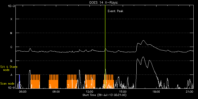 EIS Observation timeline overlay to GOES-Xray curve Code 1" 2" 40" 266" EIS Observations list for this event: STUDY ACRONYM ID DATE OBSERVED DESCRIPTION NOAA# TARGET 0 PRY_slot_contextLITE | 35291 | 2013/07/29 05:40:03 | | 1801 | Active Region TIMELINE ID DATE OBSERVED FITS FILE XCEN (+W/-E) YCEN (+N/-S) DUR ----------------------------------------------------------------------------------------------------------------- 35291 | 2013/07/29 05:40:03.000 | eis_l0_20130729_054003.fits.gz | -15.29 | -0.42 | 2m56s 1 HH_Flare_162x152 | 35292 | 2013/07/29 06:41:10 | AR and Flare Observation | 1800 | Flare TIMELINE ID DATE OBSERVED FITS FILE XCEN (+W/-E) YCEN (+N/-S) DUR ----------------------------------------------------------------------------------------------------------------- 35292 | 2013/07/29 06:41:10.000 | eis_l0_20130729_064110.fits.gz | 894.25 | -185.04 | 4m11s 35292 | 2013/07/29 06:45:24.000 | eis_l0_20130729_064524.fits.gz | 894.48 | -185.12 | 4m10s 35292 | 2013/07/29 06:49:37.000 | eis_l0_20130729_064937.fits.gz | 894.71 | -184.89 | 4m11s 35292 | 2013/07/29 06:53:51.000 | eis_l0_20130729_065351.fits.gz | 894.95 | -185.04 | 4m10s 35292 | 2013/07/29 06:58:04.000 | eis_l0_20130729_065804.fits.gz | 895.10 | -185.04 | 4m10s 35292 | 2013/07/29 07:02:17.000 | eis_l0_20130729_070217.fits.gz | 895.25 | -184.81 | 4m11s 35292 | 2013/07/29 07:06:31.000 | eis_l0_20130729_070631.fits.gz | 895.41 | -184.89 | 4m10s 35292 | 2013/07/29 07:10:44.000 | eis_l0_20130729_071044.fits.gz | 895.49 | -184.74 | 4m11s 35292 | 2013/07/29 07:14:58.000 | eis_l0_20130729_071458.fits.gz | 895.64 | -184.74 | 4m10s 35292 | 2013/07/29 07:19:11.000 | eis_l0_20130729_071911.fits.gz | 895.95 | -184.58 | 4m11s 35292 | 2013/07/29 07:23:24.000 | eis_l0_20130729_072324.fits.gz | 896.10 | -184.50 | 4m11s 35292 | 2013/07/29 07:27:38.000 | eis_l0_20130729_072738.fits.gz | 896.26 | -184.43 | 4m10s 2 HH_Flare_162x152 | 35293 | 2013/07/29 08:20:15 | AR and Flare Observation | 1800 | Flare TIMELINE ID DATE OBSERVED FITS FILE XCEN (+W/-E) YCEN (+N/-S) DUR ----------------------------------------------------------------------------------------------------------------- 35293 | 2013/07/29 08:20:15.000 | eis_l0_20130729_082015.fits.gz | 898.27 | -183.65 | 4m11s 35293 | 2013/07/29 08:24:29.000 | eis_l0_20130729_082429.fits.gz | 898.42 | -183.65 | 4m11s 35293 | 2013/07/29 08:28:42.000 | eis_l0_20130729_082842.fits.gz | 898.65 | -183.58 | 4m11s 35293 | 2013/07/29 08:32:56.000 | eis_l0_20130729_083256.fits.gz | 898.81 | -183.81 | 4m10s 35293 | 2013/07/29 08:37:09.000 | eis_l0_20130729_083709.fits.gz | 898.96 | -183.65 | 4m11s 35293 | 2013/07/29 08:41:23.000 | eis_l0_20130729_084123.fits.gz | 899.12 | -183.50 | 4m10s 35293 | 2013/07/29 08:45:36.000 | eis_l0_20130729_084536.fits.gz | 899.35 | -183.50 | 4m11s 35293 | 2013/07/29 08:49:50.000 | eis_l0_20130729_084950.fits.gz | 899.50 | -183.35 | 4m10s 35293 | 2013/07/29 08:54:03.000 | eis_l0_20130729_085403.fits.gz | 899.58 | -183.27 | 4m10s 35293 | 2013/07/29 08:58:16.000 | eis_l0_20130729_085816.fits.gz | 899.81 | -183.27 | 4m11s 35293 | 2013/07/29 09:02:30.000 | eis_l0_20130729_090230.fits.gz | 899.97 | -183.11 | 4m10s 35293 | 2013/07/29 09:06:43.000 | eis_l0_20130729_090643.fits.gz | 900.12 | -183.19 | 4m11s 3 HH_Flare_162x152 | 35294 | 2013/07/29 09:57:56 | AR and Flare Observation | 1800 | Flare TIMELINE ID DATE OBSERVED FITS FILE XCEN (+W/-E) YCEN (+N/-S) DUR ----------------------------------------------------------------------------------------------------------------- 35294 | 2013/07/29 09:57:56.000 | eis_l0_20130729_095756.fits.gz | 909.47 | -174.31 | 4m11s 35294 | 2013/07/29 10:02:10.000 | eis_l0_20130729_100210.fits.gz | 909.47 | -174.31 | 4m10s 35294 | 2013/07/29 10:06:23.000 | eis_l0_20130729_100623.fits.gz | 909.39 | -174.23 | 4m11s 35294 | 2013/07/29 10:10:36.000 | eis_l0_20130729_101036.fits.gz | 909.39 | -174.23 | 4m11s 35294 | 2013/07/29 10:14:50.000 | eis_l0_20130729_101450.fits.gz | 909.39 | -174.38 | 4m10s 35294 | 2013/07/29 10:19:03.000 | eis_l0_20130729_101903.fits.gz | 909.47 | -174.38 | 4m11s 35294 | 2013/07/29 10:23:17.000 | eis_l0_20130729_102317.fits.gz | 909.39 | -174.38 | 4m10s 35294 | 2013/07/29 10:27:30.000 | eis_l0_20130729_102730.fits.gz | 909.39 | -174.38 | 4m11s 35294 | 2013/07/29 10:31:44.000 | eis_l0_20130729_103144.fits.gz | 909.31 | -174.31 | 4m10s 35294 | 2013/07/29 10:35:57.000 | eis_l0_20130729_103557.fits.gz | 909.39 | -174.23 | 4m10s 35294 | 2013/07/29 10:40:10.000 | eis_l0_20130729_104010.fits.gz | 909.39 | -174.23 | 4m11s 35294 | 2013/07/29 10:44:24.000 | eis_l0_20130729_104424.fits.gz | 909.39 | -174.23 | 4m10s 35294 | 2013/07/29 10:48:37.000 | eis_l0_20130729_104837.fits.gz | 909.39 | -174.38 | 4m11s 4 HH_Flare_162x152 | 35295 | 2013/07/29 11:36:03 | AR and Flare Observation | 1800 | Flare TIMELINE ID DATE OBSERVED FITS FILE XCEN (+W/-E) YCEN (+N/-S) DUR ----------------------------------------------------------------------------------------------------------------- 35295 | 2013/07/29 11:36:03.000 | eis_l0_20130729_113603.fits.gz | 909.39 | -174.15 | 4m10s 35295 | 2013/07/29 11:40:16.000 | eis_l0_20130729_114016.fits.gz | 909.39 | -174.23 | 4m11s 35295 | 2013/07/29 11:44:30.000 | eis_l0_20130729_114430.fits.gz | 909.47 | -174.38 | 4m10s 35295 | 2013/07/29 11:48:43.000 | eis_l0_20130729_114843.fits.gz | 909.39 | -174.31 | 4m11s 35295 | 2013/07/29 11:52:56.000 | eis_l0_20130729_115256.fits.gz | 909.47 | -174.31 | 4m11s 35295 | 2013/07/29 11:57:10.000 | eis_l0_20130729_115710.fits.gz | 909.39 | -174.23 | 4m10s 35295 | 2013/07/29 12:01:23.000 | eis_l0_20130729_120123.fits.gz | 909.39 | -174.31 | 4m11s 35295 | 2013/07/29 12:05:37.000 | eis_l0_20130729_120537.fits.gz | 909.39 | -174.38 | 4m11s 35295 | 2013/07/29 12:09:51.000 | eis_l0_20130729_120951.fits.gz | 909.39 | -174.31 | 4m10s 35295 | 2013/07/29 12:14:04.000 | eis_l0_20130729_121404.fits.gz | 909.39 | -174.31 | 4m11s 35295 | 2013/07/29 12:18:18.000 | eis_l0_20130729_121818.fits.gz | 909.39 | -1
