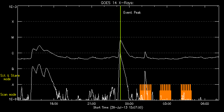 EIS Observation timeline overlay to GOES-Xray curve Code 1" 2" 40" 266" EIS Observations list for this event: STUDY ACRONYM ID DATE OBSERVED DESCRIPTION NOAA# TARGET 0 HH_Flare_162x152 | 35297 | 2013/07/30 00:49:20 | AR and Flare Observation | 1800 | Flare TIMELINE ID DATE OBSERVED FITS FILE XCEN (+W/-E) YCEN (+N/-S) DUR ----------------------------------------------------------------------------------------------------------------- 35297 | 2013/07/30 00:49:20.000 | eis_l0_20130730_004920.fits.gz | 909.47 | -174.38 | 4m10s 35297 | 2013/07/30 00:53:33.000 | eis_l0_20130730_005333.fits.gz | 909.47 | -174.31 | 4m11s 35297 | 2013/07/30 00:57:46.000 | eis_l0_20130730_005746.fits.gz | 909.47 | -174.31 | 4m11s 35297 | 2013/07/30 01:02:00.000 | eis_l0_20130730_010200.fits.gz | 909.47 | -174.31 | 4m11s 35297 | 2013/07/30 01:06:13.000 | eis_l0_20130730_010613.fits.gz | 909.39 | -174.38 | 4m11s 35297 | 2013/07/30 01:10:27.000 | eis_l0_20130730_011027.fits.gz | 909.39 | -174.38 | 4m11s 35297 | 2013/07/30 01:14:40.000 | eis_l0_20130730_011440.fits.gz | 909.39 | -174.15 | 4m11s 35297 | 2013/07/30 01:18:53.000 | eis_l0_20130730_011853.fits.gz | 909.39 | -174.38 | 4m11s 35297 | 2013/07/30 01:23:07.000 | eis_l0_20130730_012307.fits.gz | 909.39 | -174.15 | 4m11s 35297 | 2013/07/30 01:27:21.000 | eis_l0_20130730_012721.fits.gz | 909.47 | -174.38 | 4m10s 35297 | 2013/07/30 01:31:34.000 | eis_l0_20130730_013134.fits.gz | 909.39 | -174.31 | 4m10s 35297 | 2013/07/30 01:35:47.000 | eis_l0_20130730_013547.fits.gz | 909.47 | -174.31 | 4m11s 35297 | 2013/07/30 01:40:01.000 | eis_l0_20130730_014001.fits.gz | 909.39 | -174.23 | 4m10s 1 HH_Flare_162x152 | 35298 | 2013/07/30 02:24:04 | AR and Flare Observation | 1800 | Flare TIMELINE ID DATE OBSERVED FITS FILE XCEN (+W/-E) YCEN (+N/-S) DUR ----------------------------------------------------------------------------------------------------------------- 35298 | 2013/07/30 02:24:04.000 | eis_l0_20130730_022404.fits.gz | 909.39 | -174.38 | 4m10s 35298 | 2013/07/30 02:28:17.000 | eis_l0_20130730_022817.fits.gz | 909.39 | -174.38 | 4m11s 35298 | 2013/07/30 02:32:30.000 | eis_l0_20130730_023230.fits.gz | 909.47 | -174.38 | 4m11s 35298 | 2013/07/30 02:36:44.000 | eis_l0_20130730_023644.fits.gz | 909.47 | -174.31 | 4m10s 35298 | 2013/07/30 02:40:57.000 | eis_l0_20130730_024057.fits.gz | 909.39 | -174.46 | 4m11s 35298 | 2013/07/30 02:45:11.000 | eis_l0_20130730_024511.fits.gz | 909.39 | -174.23 | 4m10s 35298 | 2013/07/30 02:49:24.000 | eis_l0_20130730_024924.fits.gz | 909.39 | -174.23 | 4m11s 35298 | 2013/07/30 02:53:37.000 | eis_l0_20130730_025337.fits.gz | 909.39 | -174.38 | 4m11s 35298 | 2013/07/30 02:57:51.000 | eis_l0_20130730_025751.fits.gz | 909.39 | -174.31 | 4m11s 35298 | 2013/07/30 03:02:04.000 | eis_l0_20130730_030204.fits.gz | 909.39 | -174.38 | 4m11s 35298 | 2013/07/30 03:06:18.000 | eis_l0_20130730_030618.fits.gz | 909.39 | -174.23 | 4m10s 35298 | 2013/07/30 03:10:31.000 | eis_l0_20130730_031031.fits.gz | 909.39 | -174.31 | 4m11s 35298 | 2013/07/30 03:14:44.000 | eis_l0_20130730_031444.fits.gz | 909.47 | -174.23 | 4m11s 2 HH_Flare_162x152 | 35299 | 2013/07/30 04:05:34 | AR and Flare Observation | 1800 | Flare TIMELINE ID DATE OBSERVED FITS FILE XCEN (+W/-E) YCEN (+N/-S) DUR ----------------------------------------------------------------------------------------------------------------- 35299 | 2013/07/30 04:05:34.000 | eis_l0_20130730_040534.fits.gz | 909.47 | -174.23 | 4m10s 35299 | 2013/07/30 04:09:47.000 | eis_l0_20130730_040947.fits.gz | 909.47 | -174.31 | 4m11s 35299 | 2013/07/30 04:14:00.000 | eis_l0_20130730_041400.fits.gz | 909.39 | -174.38 | 4m11s 35299 | 2013/07/30 04:18:14.000 | eis_l0_20130730_041814.fits.gz | 909.39 | -174.23 | 4m10s 35299 | 2013/07/30 04:22:27.000 | eis_l0_20130730_042227.fits.gz | 909.39 | -174.23 | 4m11s 35299 | 2013/07/30 04:26:41.000 | eis_l0_20130730_042641.fits.gz | 909.39 | -174.23 | 4m10s 35299 | 2013/07/30 04:30:54.000 | eis_l0_20130730_043054.fits.gz | 909.47 | -174.38 | 4m11s 35299 | 2013/07/30 04:35:08.000 | eis_l0_20130730_043508.fits.gz | 909.39 | -174.46 | 4m10s 35299 | 2013/07/30 04:39:21.000 | eis_l0_20130730_043921.fits.gz | 909.39 | -174.15 | 4m11s 35299 | 2013/07/30 04:43:34.000 | eis_l0_20130730_044334.fits.gz | 909.39 | -174.23 | 4m11s 35299 | 2013/07/30 04:47:48.000 | eis_l0_20130730_044748.fits.gz | 909.39 | -174.31 | 4m10s 35299 | 2013/07/30 04:52:01.000 | eis_l0_20130730_045201.fits.gz | 909.39 | -174.31 | 4m11s : Check study information : Download file : View thumbnails For this event, also check for: