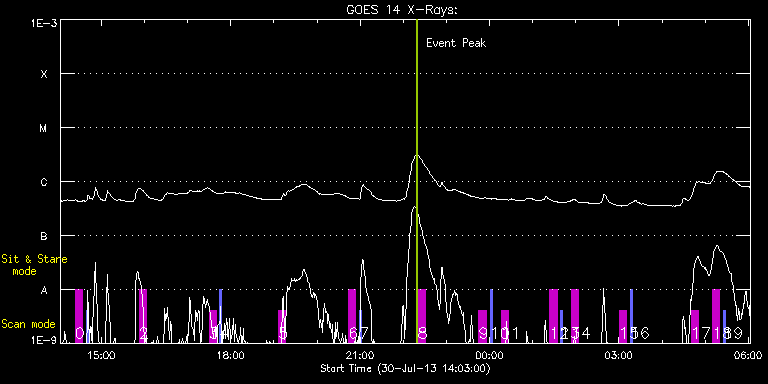 EIS Observation timeline overlay to GOES-Xray curve Code 1" 2" 40" 266" EIS Observations list for this event: STUDY ACRONYM ID DATE OBSERVED DESCRIPTION NOAA# TARGET 0 SK_DEEP_5x512_SLIT1 | 35312 | 2013/07/30 14:23:13 | HOP79 Irradiance Scan | | Quiet Sun TIMELINE ID DATE OBSERVED FITS FILE XCEN (+W/-E) YCEN (+N/-S) DUR ----------------------------------------------------------------------------------------------------------------- 35312 | 2013/07/30 14:23:13.000 | eis_l0_20130730_142313.fits.gz | -7.94 | -587.58 | 10m8s 1 PRY_slot_contextLITE | 35313 | 2013/07/30 14:38:34 | HOP79 Irradiance Scan | | Active Region TIMELINE ID DATE OBSERVED FITS FILE XCEN (+W/-E) YCEN (+N/-S) DUR ----------------------------------------------------------------------------------------------------------------- 35313 | 2013/07/30 14:38:34.000 | eis_l0_20130730_143834.fits.gz | -23.17 | -587.66 | 2m57s 2 SK_DEEP_5x512_SLIT1 | 35314 | 2013/07/30 15:52:20 | HOP79 Irradiance Scan | | Quiet Sun TIMELINE ID DATE OBSERVED FITS FILE XCEN (+W/-E) YCEN (+N/-S) DUR ----------------------------------------------------------------------------------------------------------------- 35314 | 2013/07/30 15:52:20.000 | eis_l0_20130730_155220.fits.gz | -7.94 | -487.47 | 10m8s 3 SK_DEEP_5x512_SLIT1 | 35316 | 2013/07/30 17:29:41 | HOP79 Irradiance Scan | | Quiet Sun TIMELINE ID DATE OBSERVED FITS FILE XCEN (+W/-E) YCEN (+N/-S) DUR ----------------------------------------------------------------------------------------------------------------- 35316 | 2013/07/30 17:29:41.000 | eis_l0_20130730_172941.fits.gz | -8.02 | -387.36 | 10m8s 4 PRY_slot_contextLITE | 35317 | 2013/07/30 17:44:34 | HOP79 Irradiance Scan | | Active Region TIMELINE ID DATE OBSERVED FITS FILE XCEN (+W/-E) YCEN (+N/-S) DUR ----------------------------------------------------------------------------------------------------------------- 35317 | 2013/07/30 17:44:34.000 | eis_l0_20130730_174434.fits.gz | -23.09 | -387.51 | 2m56s 5 SK_DEEP_5x512_SLIT1 | 35318 | 2013/07/30 19:06:20 | HOP79 Irradiance Scan | | Quiet Sun TIMELINE ID DATE OBSERVED FITS FILE XCEN (+W/-E) YCEN (+N/-S) DUR ----------------------------------------------------------------------------------------------------------------- 35318 | 2013/07/30 19:06:20.000 | eis_l0_20130730_190620.fits.gz | -7.94 | -287.40 | 10m8s 6 SK_DEEP_5x512_SLIT1 | 35320 | 2013/07/30 20:43:41 | HOP79 Irradiance Scan | | Quiet Sun TIMELINE ID DATE OBSERVED FITS FILE XCEN (+W/-E) YCEN (+N/-S) DUR ----------------------------------------------------------------------------------------------------------------- 35320 | 2013/07/30 20:43:41.000 | eis_l0_20130730_204341.fits.gz | -7.94 | -187.13 | 10m7s 7 PRY_slot_contextLITE | 35321 | 2013/07/30 20:58:34 | HOP79 Irradiance Scan | | Active Region TIMELINE ID DATE OBSERVED FITS FILE XCEN (+W/-E) YCEN (+N/-S) DUR ----------------------------------------------------------------------------------------------------------------- 35321 | 2013/07/30 20:58:34.000 | eis_l0_20130730_205834.fits.gz | -23.17 | -187.44 | 2m56s 8 SK_DEEP_5x512_SLIT1 | 35322 | 2013/07/30 22:20:20 | HOP79 Irradiance Scan | | Quiet Sun TIMELINE ID DATE OBSERVED FITS FILE XCEN (+W/-E) YCEN (+N/-S) DUR ----------------------------------------------------------------------------------------------------------------- 35322 | 2013/07/30 22:20:20.000 | eis_l0_20130730_222020.fits.gz | -7.87 | -87.56 | 10m8s 9 SK_DEEP_5x512_SLIT1 | 35324 | 2013/07/30 23:45:13 | HOP79 Irradiance Scan | | Quiet Sun TIMELINE ID DATE OBSERVED FITS FILE XCEN (+W/-E) YCEN (+N/-S) DUR ----------------------------------------------------------------------------------------------------------------- 35324 | 2013/07/30 23:45:13.000 | eis_l0_20130730_234513.fits.gz | -7.87 | 2.44 | 10m8s 10 PRY_slot_contextLITE | 35325 | 2013/07/31 00:00:34 | HOP79 Irradiance Scan | | Active Region TIMELINE ID DATE OBSERVED FITS FILE XCEN (+W/-E) YCEN (+N/-S) DUR ----------------------------------------------------------------------------------------------------------------- 35325 | 2013/07/31 00:00:34.000 | eis_l0_20130731_000034.fits.gz | -23.17 | 2.36 | 2m56s 11 SK_DEEP_5x512_SLIT1 | 35326 | 2013/07/31 00:16:20 | HOP79 Irradiance Scan | | Quiet Sun TIMELINE ID DATE OBSERVED FITS FILE XCEN (+W/-E) YCEN (+N/-S) DUR ----------------------------------------------------------------------------------------------------------------- 35326 | 2013/07/31 00:16:20.000 | eis_l0_20130731_001620.fits.gz | -8.02 | 102.55 | 10m8s 12 SK_DEEP_5x512_SLIT1 | 35328 | 2013/07/31 01:23:41 | HOP79 Irradiance Scan | | Quiet Sun TIMELINE ID DATE OBSERVED FITS FILE XCEN (+W/-E) YCEN (+N/-S) DUR ----------------------------------------------------------------------------------------------------------------- 35328 | 2013/07/31 01:23:41.000 | eis_l0_20130731_012341.fits.gz | -7.94 | 202.58 | 10m8s 13 PRY_slot_contextLITE | 35329 | 2013/07/31 01:38:34 | HOP79 Irradiance Scan | | Active Region TIMELINE ID DATE OBSERVED FITS FILE XCEN (+W/-E) YCEN (+N/-S) DUR ----------------------------------------------------------------------------------------------------------------- 35329 | 2013/07/31 01:38:34.000 | eis_l0_20130731_013834.fits.gz | -23.09 | 202.43 | 2m56s 14 SK_DEEP_5x512_SLIT1 | 35330 | 2013/07/31 01:53:20 | HOP79 Irradiance Scan | | Quiet Sun TIMELINE ID DATE OBSERVED FITS FILE XCEN (+W/-E) YCEN (+N/-S) DUR ----------------------------------------------------------------------------------------------------------------- 35330 | 2013/07/31 01:53:20.000 | eis_l0_20130731_015320.fits.gz | -7.94 | 302.62 | 10m8s 15 SK_DEEP_5x512_SLIT1 | 35332 | 2013/07/31 03:00:40 | HOP79 Irradiance Scan | | Quiet Sun TIMELINE ID DATE OBSERVED FITS FILE XCEN (+W/-E) YCEN (+N/-S) DUR ----------------------------------------------------------------------------------------------------------------- 35332 | 2013/07/31 03:00:40.000 | eis_l0_20130731_030040.fits.gz | -8.02 | 402.50 | 10m8s 16 PRY_slot_contextLITE | 35333 | 