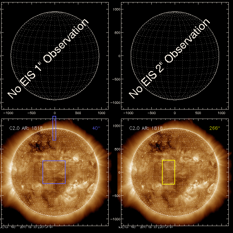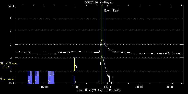 EIS Observation timeline overlay to GOES-Xray curve Code 1" 2" 40" 266" EIS Observations list for this event: STUDY ACRONYM ID DATE OBSERVED DESCRIPTION NOAA# TARGET 0 Alignment_modify_v2 | 35519 | 2013/08/09 13:26:17 | coalignment (N-limb) | | Quiet Sun TIMELINE ID DATE OBSERVED FITS FILE XCEN (+W/-E) YCEN (+N/-S) DUR ----------------------------------------------------------------------------------------------------------------- 35519 | 2013/08/09 13:26:17.000 | eis_l0_20130809_132617.fits.gz | -9.47 | 944.33 | 2m33s 35519 | 2013/08/09 13:29:24.000 | eis_l0_20130809_132924.fits.gz | -9.47 | 944.41 | 2m34s 35519 | 2013/08/09 13:32:32.000 | eis_l0_20130809_133232.fits.gz | -9.47 | 944.33 | 2m34s 35519 | 2013/08/09 13:35:39.000 | eis_l0_20130809_133539.fits.gz | -9.63 | 944.41 | 2m34s 35519 | 2013/08/09 13:38:47.000 | eis_l0_20130809_133847.fits.gz | -9.47 | 944.41 | 2m34s 35519 | 2013/08/09 13:41:54.000 | eis_l0_20130809_134154.fits.gz | -9.47 | 944.33 | 2m34s 35519 | 2013/08/09 13:45:02.000 | eis_l0_20130809_134502.fits.gz | -9.47 | 944.41 | 2m34s 35519 | 2013/08/09 13:48:09.000 | eis_l0_20130809_134809.fits.gz | -9.47 | 944.25 | 2m34s 1 Alignment_modify_v2 | 35520 | 2013/08/09 14:06:45 | coalignment (W-limb) | | Quiet Sun TIMELINE ID DATE OBSERVED FITS FILE XCEN (+W/-E) YCEN (+N/-S) DUR ----------------------------------------------------------------------------------------------------------------- 35520 | 2013/08/09 14:06:45.000 | eis_l0_20130809_140645.fits.gz | -9893.92 | -9963.20 | 2m34s 35520 | 2013/08/09 14:09:53.000 | eis_l0_20130809_140953.fits.gz | -9893.92 | -9963.20 | 2m33s 35520 | 2013/08/09 14:13:00.000 | eis_l0_20130809_141300.fits.gz | -9893.92 | -9963.20 | 2m34s 35520 | 2013/08/09 14:16:07.000 | eis_l0_20130809_141607.fits.gz | -9893.92 | -9963.20 | 2m34s 35520 | 2013/08/09 14:19:15.000 | eis_l0_20130809_141915.fits.gz | -9893.92 | -9963.20 | 2m34s 35520 | 2013/08/09 14:22:23.000 | eis_l0_20130809_142223.fits.gz | -9893.92 | -9963.20 | 2m34s 35520 | 2013/08/09 14:25:30.000 | eis_l0_20130809_142530.fits.gz | -9893.92 | -9963.20 | 2m34s 35520 | 2013/08/09 14:28:38.000 | eis_l0_20130809_142838.fits.gz | -9893.92 | -9963.20 | 2m34s 2 Alignment_modify_v2 | 35521 | 2013/08/09 15:22:15 | coalignment (W-limb) | | Quiet Sun TIMELINE ID DATE OBSERVED FITS FILE XCEN (+W/-E) YCEN (+N/-S) DUR ----------------------------------------------------------------------------------------------------------------- 35521 | 2013/08/09 15:22:15.000 | eis_l0_20130809_152215.fits.gz | -9893.92 | -9963.20 | 2m34s 35521 | 2013/08/09 15:25:23.000 | eis_l0_20130809_152523.fits.gz | -9893.92 | -9963.20 | 2m33s 35521 | 2013/08/09 15:28:30.000 | eis_l0_20130809_152830.fits.gz | -9893.92 | -9963.20 | 2m34s 35521 | 2013/08/09 15:31:38.000 | eis_l0_20130809_153138.fits.gz | -9893.92 | -9963.20 | 2m34s 35521 | 2013/08/09 15:34:45.000 | eis_l0_20130809_153445.fits.gz | -9893.92 | -9963.20 | 2m34s 35521 | 2013/08/09 15:37:53.000 | eis_l0_20130809_153753.fits.gz | -9893.92 | -9963.20 | 2m33s 35521 | 2013/08/09 15:41:00.000 | eis_l0_20130809_154100.fits.gz | -9893.92 | -9963.20 | 2m34s 35521 | 2013/08/09 15:44:08.000 | eis_l0_20130809_154408.fits.gz | -9893.92 | -9963.20 | 2m33s 35521 | 2013/08/09 15:47:15.000 | eis_l0_20130809_154715.fits.gz | -9893.92 | -9963.20 | 2m34s 35521 | 2013/08/09 15:50:23.000 | eis_l0_20130809_155023.fits.gz | -9893.92 | -9963.20 | 2m34s 35521 | 2013/08/09 15:53:30.000 | eis_l0_20130809_155330.fits.gz | -9893.92 | -9963.20 | 2m34s 3 PRY_slot_contextLITE | 35515 | 2013/08/09 17:48:11 | EIS-AIA alignment | | Active Region TIMELINE ID DATE OBSERVED FITS FILE XCEN (+W/-E) YCEN (+N/-S) DUR ----------------------------------------------------------------------------------------------------------------- 35515 | 2013/08/09 17:48:11.000 | eis_l0_20130809_174811.fits.gz | -15.29 | -0.50 | 2m56s 4 Alignment_266 | 35516 | 2013/08/09 17:51:25 | EIS-AIA alignment | | Quiet Sun TIMELINE ID DATE OBSERVED FITS FILE XCEN (+W/-E) YCEN (+N/-S) DUR ----------------------------------------------------------------------------------------------------------------- 35516 | 2013/08/09 17:51:25.000 | eis_l0_20130809_175125.fits.gz | -132.57 | -0.50 | 1m22s 5 XRT_synop_AIA | 35517 | 2013/08/09 17:53:33 | EIS-AIA alignment | | Quiet Sun TIMELINE ID DATE OBSERVED FITS FILE XCEN (+W/-E) YCEN (+N/-S) DUR ----------------------------------------------------------------------------------------------------------------- 35517 | 2013/08/09 17:53:33.000 | eis_l0_20130809_175333.fits.gz | -132.49 | -0.50 | 10s : Check study information : Download file : View thumbnails For this event, also check for: