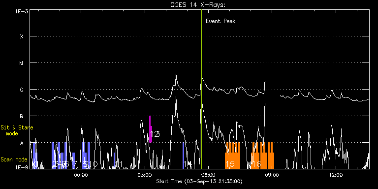 EIS Observation timeline overlay to GOES-Xray curve Code 1" 2" 40" 266" EIS Observations list for this event: STUDY ACRONYM ID DATE OBSERVED DESCRIPTION NOAA# TARGET 0 full_sun_slot_scan_2 | 36059 | 2013/09/03 21:44:43 | HOP130 full sun slot scan (8/15) | | Quiet Sun TIMELINE ID DATE OBSERVED FITS FILE XCEN (+W/-E) YCEN (+N/-S) DUR ----------------------------------------------------------------------------------------------------------------- 36059 | 2013/09/03 21:44:43.000 | eis_l0_20130903_214443.fits.gz | -15.37 | 1126.76 | 5m27s 1 full_sun_slot_scan_2 | 36060 | 2013/09/03 21:50:15 | HOP130 full sun slot scan (8/15) | | Quiet Sun TIMELINE ID DATE OBSERVED FITS FILE XCEN (+W/-E) YCEN (+N/-S) DUR ----------------------------------------------------------------------------------------------------------------- 36060 | 2013/09/03 21:50:15.000 | eis_l0_20130903_215015.fits.gz | -15.21 | 654.45 | 5m27s 2 full_sun_slot_scan_2 | 36061 | 2013/09/03 22:38:13 | HOP130 full sun slot scan (9/15) | | Quiet Sun TIMELINE ID DATE OBSERVED FITS FILE XCEN (+W/-E) YCEN (+N/-S) DUR ----------------------------------------------------------------------------------------------------------------- 36061 | 2013/09/03 22:38:13.000 | eis_l0_20130903_223813.fits.gz | -426.40 | 1032.52 | 5m27s 3 full_sun_slot_scan_2 | 36062 | 2013/09/03 22:43:45 | HOP130 full sun slot scan (9/15) | | Quiet Sun TIMELINE ID DATE OBSERVED FITS FILE XCEN (+W/-E) YCEN (+N/-S) DUR ----------------------------------------------------------------------------------------------------------------- 36062 | 2013/09/03 22:43:45.000 | eis_l0_20130903_224345.fits.gz | -426.40 | 560.52 | 5m27s 4 full_sun_slot_scan_2 | 36063 | 2013/09/03 22:54:13 | HOP130 full sun slot scan (10/15) | | Quiet Sun TIMELINE ID DATE OBSERVED FITS FILE XCEN (+W/-E) YCEN (+N/-S) DUR ----------------------------------------------------------------------------------------------------------------- 36063 | 2013/09/03 22:54:13.000 | eis_l0_20130903_225413.fits.gz | -830.25 | 655.55 | 5m27s 5 full_sun_slot_scan_2 | 36064 | 2013/09/03 23:04:13 | HOP130 full sun slot scan (11/15) | | Quiet Sun TIMELINE ID DATE OBSERVED FITS FILE XCEN (+W/-E) YCEN (+N/-S) DUR ----------------------------------------------------------------------------------------------------------------- 36064 | 2013/09/03 23:04:13.000 | eis_l0_20130903_230413.fits.gz | 799.75 | -756.71 | 5m27s 6 full_sun_slot_scan_2 | 36065 | 2013/09/03 23:14:13 | HOP130 full sun slot scan (12/15) | | Quiet Sun TIMELINE ID DATE OBSERVED FITS FILE XCEN (+W/-E) YCEN (+N/-S) DUR ----------------------------------------------------------------------------------------------------------------- 36065 | 2013/09/03 23:14:13.000 | eis_l0_20130903_231413.fits.gz | 395.90 | -661.67 | 5m27s 7 full_sun_slot_scan_2 | 36068 | 2013/09/03 23:35:45 | HOP130 full sun slot scan (13/15) | | Quiet Sun TIMELINE ID DATE OBSERVED FITS FILE XCEN (+W/-E) YCEN (+N/-S) DUR ----------------------------------------------------------------------------------------------------------------- 36068 | 2013/09/03 23:35:45.000 | eis_l0_20130903_233545.fits.gz | -15.21 | -1227.38 | 5m27s 8 full_sun_slot_scan_2 | 36069 | 2013/09/04 00:03:43 | HOP130 full sun slot scan (14/15) | | Quiet Sun TIMELINE ID DATE OBSERVED FITS FILE XCEN (+W/-E) YCEN (+N/-S) DUR ----------------------------------------------------------------------------------------------------------------- 36069 | 2013/09/04 00:03:43.000 | eis_l0_20130904_000343.fits.gz | -426.40 | -661.44 | 5m27s 9 full_sun_slot_scan_2 | 36070 | 2013/09/04 00:09:16 | HOP130 full sun slot scan (14/15) | | Quiet Sun TIMELINE ID DATE OBSERVED FITS FILE XCEN (+W/-E) YCEN (+N/-S) DUR ----------------------------------------------------------------------------------------------------------------- 36070 | 2013/09/04 00:09:16.000 | eis_l0_20130904_000916.fits.gz | -426.32 | -1133.52 | 5m26s 10 full_sun_slot_scan_2 | 36071 | 2013/09/04 00:19:43 | HOP130 full sun slot scan (15/15) | | Quiet Sun TIMELINE ID DATE OBSERVED FITS FILE XCEN (+W/-E) YCEN (+N/-S) DUR ----------------------------------------------------------------------------------------------------------------- 36071 | 2013/09/04 00:19:43.000 | eis_l0_20130904_001943.fits.gz | -830.33 | -757.25 | 5m27s 11 PRY_slot_context_v3 | 36090 | 2013/09/04 01:32:43 | Spectral Atlas Synoptic Program - QS | 1837 | Active Region TIMELINE ID DATE OBSERVED FITS FILE XCEN (+W/-E) YCEN (+N/-S) DUR ----------------------------------------------------------------------------------------------------------------- 36090 | 2013/09/04 01:32:43.000 | eis_l0_20130904_013243.fits.gz | 313.96 | -181.91 | 2m57s 12 regcal071 | 36093 | 2013/09/04 03:12:25 | Dark exposures, CCD bottom rows (100s | | Engineering TIMELINE ID DATE OBSERVED FITS FILE XCEN (+W/-E) YCEN (+N/-S) DUR ----------------------------------------------------------------------------------------------------------------- 36093 | 2013/09/04 03:12:25.000 | eis_l0_20130904_031225.fits.gz | 407.08 | -257.07 | 3m21s 13 regcal072 | 36094 | 2013/09/04 03:16:13 | Dark exposures, top CCD rows (100s exp | | Engineering TIMELINE ID DATE OBSERVED FITS FILE XCEN (+W/-E) YCEN (+N/-S) DUR ----------------------------------------------------------------------------------------------------------------- 36094 | 2013/09/04 03:16:13.000 | eis_l0_20130904_031613.fits.gz | 407.62 | 253.78 | 3m22s 14 PRY_slot_context_v3 | 36095 | 2013/09/04 04:47:20 | Spectral Atlas Synoptic Program - QS | 1837 | Active Region TIMELINE ID DATE OBSERVED FITS FILE XCEN (+W/-E) YCEN (+N/-S) DUR ----------------------------------------------------------------------------------------------------------------- 36095 | 2013/09/04 04:47:20.000 | eis_l0_20130904_044720.fits.gz | 340.84 | -180.29 | 2m56s 15 HH_Flare_162x152 | 36080 | 2013/09/04 06:46:57 | HOP236 - Collaboration with IRIS-SST o | 1836 | Flare TIMELINE ID DATE OBSERVED FITS FILE XCEN (+W/-E) YCEN (+N/-S) DUR -------------------