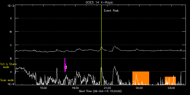EIS Observation timeline overlay to GOES-Xray curve Code 1" 2" 40" 266" EIS Observations list for this event: STUDY ACRONYM ID DATE OBSERVED DESCRIPTION NOAA# TARGET 0 regcal071 | 36718 | 2013/10/09 16:58:41 | Dark exposures, CCD bottom rows (100s | | Engineering TIMELINE ID DATE OBSERVED FITS FILE XCEN (+W/-E) YCEN (+N/-S) DUR ----------------------------------------------------------------------------------------------------------------- 36718 | 2013/10/09 16:58:41.000 | eis_l0_20131009_165841.fits.gz | -0.55 | 574.51 | 3m22s 1 regcal071 | 36719 | 2013/10/09 17:03:11 | Dark exposures, CCD bottom rows (100s | | Engineering TIMELINE ID DATE OBSERVED FITS FILE XCEN (+W/-E) YCEN (+N/-S) DUR ----------------------------------------------------------------------------------------------------------------- 36719 | 2013/10/09 17:03:11.000 | eis_l0_20131009_170311.fits.gz | -0.55 | 574.43 | 3m22s 2 FullSunSlit_SI | 36725 | 2013/10/09 23:20:56 | AR 11856 & 11857 obs. | 1856 | Quiet Sun TIMELINE ID DATE OBSERVED FITS FILE XCEN (+W/-E) YCEN (+N/-S) DUR ----------------------------------------------------------------------------------------------------------------- 36725 | 2013/10/09 23:20:56.000 | eis_l0_20131009_232056.fits.gz | 325.74 | -81.91 | 1h33m25s 3 sta_plume_context | 36726 | 2013/10/10 02:22:30 | AR 11856 & 11857 obs. | 1856 | Coronal Hole TIMELINE ID DATE OBSERVED FITS FILE XCEN (+W/-E) YCEN (+N/-S) DUR ----------------------------------------------------------------------------------------------------------------- 36726 | 2013/10/10 02:22:30.000 | eis_l0_20131010_022230.fits.gz | 371.01 | -80.75 | 1h1m52s : Check study information : Download file : View thumbnails For this event, also check for:
