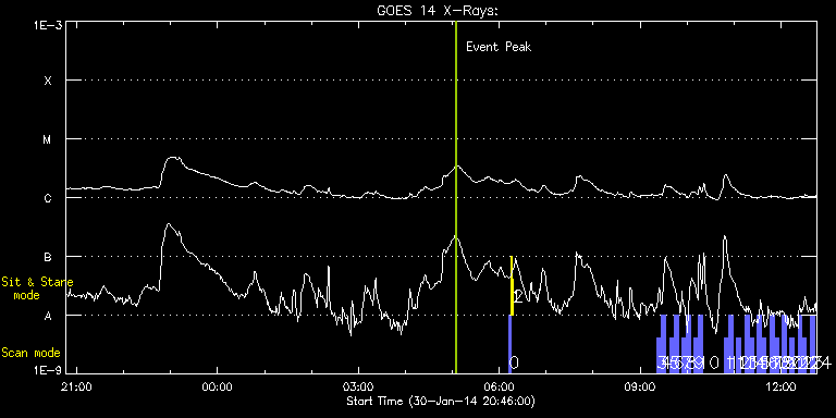 EIS Observation timeline overlay to GOES-Xray curve Code 1" 2" 40" 266" EIS Observations list for this event: STUDY ACRONYM ID DATE OBSERVED DESCRIPTION NOAA# TARGET 0 PRY_slot_contextLITE | 38338 | 2014/01/31 06:12:19 | EIS pointing and alignment | | Active Region TIMELINE ID DATE OBSERVED FITS FILE XCEN (+W/-E) YCEN (+N/-S) DUR ----------------------------------------------------------------------------------------------------------------- 38338 | 2014/01/31 06:12:19.000 | eis_l0_20140131_061219.fits.gz | -15.37 | -0.42 | 2m56s 1 Alignment_266 | 38339 | 2014/01/31 06:15:34 | EIS pointing and alignment | | Quiet Sun TIMELINE ID DATE OBSERVED FITS FILE XCEN (+W/-E) YCEN (+N/-S) DUR ----------------------------------------------------------------------------------------------------------------- 38339 | 2014/01/31 06:15:34.000 | eis_l0_20140131_061534.fits.gz | -132.57 | -0.50 | 1m22s 2 XRT_synop_AIA | 38340 | 2014/01/31 06:18:08 | EIS pointing and alignment | | Quiet Sun TIMELINE ID DATE OBSERVED FITS FILE XCEN (+W/-E) YCEN (+N/-S) DUR ----------------------------------------------------------------------------------------------------------------- 38340 | 2014/01/31 06:18:08.000 | eis_l0_20140131_061808.fits.gz | -132.49 | -0.50 | 10s 3 full_sun_slot_scan_1 | 38390 | 2014/01/31 09:21:26 | HOP130 | | Quiet Sun TIMELINE ID DATE OBSERVED FITS FILE XCEN (+W/-E) YCEN (+N/-S) DUR ----------------------------------------------------------------------------------------------------------------- 38390 | 2014/01/31 09:21:26.000 | eis_l0_20140131_092126.fits.gz | 920.80 | 185.73 | 5m27s 4 full_sun_slot_scan_1 | 38391 | 2014/01/31 09:27:26 | HOP130 | 1959 | Quiet Sun TIMELINE ID DATE OBSERVED FITS FILE XCEN (+W/-E) YCEN (+N/-S) DUR ----------------------------------------------------------------------------------------------------------------- 38391 | 2014/01/31 09:27:26.000 | eis_l0_20140131_092726.fits.gz | 920.72 | -286.50 | 5m26s 5 full_sun_slot_scan_1 | 38392 | 2014/01/31 09:37:40 | HOP130 | | Quiet Sun TIMELINE ID DATE OBSERVED FITS FILE XCEN (+W/-E) YCEN (+N/-S) DUR ----------------------------------------------------------------------------------------------------------------- 38392 | 2014/01/31 09:37:40.000 | eis_l0_20140131_093740.fits.gz | 452.68 | 185.58 | 5m27s 6 full_sun_slot_scan_1 | 38393 | 2014/01/31 09:43:12 | HOP130 | | Quiet Sun TIMELINE ID DATE OBSERVED FITS FILE XCEN (+W/-E) YCEN (+N/-S) DUR ----------------------------------------------------------------------------------------------------------------- 38393 | 2014/01/31 09:43:12.000 | eis_l0_20140131_094312.fits.gz | 452.83 | -286.58 | 5m26s 7 full_sun_slot_scan_1 | 38394 | 2014/01/31 09:53:13 | HOP130 | | Quiet Sun TIMELINE ID DATE OBSERVED FITS FILE XCEN (+W/-E) YCEN (+N/-S) DUR ----------------------------------------------------------------------------------------------------------------- 38394 | 2014/01/31 09:53:13.000 | eis_l0_20140131_095313.fits.gz | -15.29 | 185.58 | 5m26s 8 full_sun_slot_scan_1 | 38395 | 2014/01/31 09:58:45 | HOP130 | | Quiet Sun TIMELINE ID DATE OBSERVED FITS FILE XCEN (+W/-E) YCEN (+N/-S) DUR ----------------------------------------------------------------------------------------------------------------- 38395 | 2014/01/31 09:58:45.000 | eis_l0_20140131_095845.fits.gz | -15.29 | -286.35 | 5m26s 9 full_sun_slot_scan_1 | 38396 | 2014/01/31 10:09:13 | HOP130 | 1968 | Quiet Sun TIMELINE ID DATE OBSERVED FITS FILE XCEN (+W/-E) YCEN (+N/-S) DUR ----------------------------------------------------------------------------------------------------------------- 38396 | 2014/01/31 10:09:13.000 | eis_l0_20140131_100913.fits.gz | -483.26 | 185.58 | 5m27s 10 full_sun_slot_scan_1 | 38397 | 2014/01/31 10:14:45 | HOP130 | 1967 | Quiet Sun TIMELINE ID DATE OBSERVED FITS FILE XCEN (+W/-E) YCEN (+N/-S) DUR ----------------------------------------------------------------------------------------------------------------- 38397 | 2014/01/31 10:14:45.000 | eis_l0_20140131_101445.fits.gz | -483.26 | -286.42 | 5m27s 11 full_sun_slot_scan_1 | 38398 | 2014/01/31 10:47:43 | HOP130 | | Quiet Sun TIMELINE ID DATE OBSERVED FITS FILE XCEN (+W/-E) YCEN (+N/-S) DUR ----------------------------------------------------------------------------------------------------------------- 38398 | 2014/01/31 10:47:43.000 | eis_l0_20140131_104743.fits.gz | -9884.69 | -9777.20 | 5m27s 12 full_sun_slot_scan_1 | 38399 | 2014/01/31 10:53:15 | HOP130 | | Quiet Sun TIMELINE ID DATE OBSERVED FITS FILE XCEN (+W/-E) YCEN (+N/-S) DUR ----------------------------------------------------------------------------------------------------------------- 38399 | 2014/01/31 10:53:15.000 | eis_l0_20140131_105315.fits.gz | -9884.69 | -10249.20 | 5m26s 13 full_sun_slot_scan_1 | 38400 | 2014/01/31 11:03:43 | HOP130 | | Quiet Sun TIMELINE ID DATE OBSERVED FITS FILE XCEN (+W/-E) YCEN (+N/-S) DUR ----------------------------------------------------------------------------------------------------------------- 38400 | 2014/01/31 11:03:43.000 | eis_l0_20140131_110343.fits.gz | 743.44 | 655.55 | 5m27s 14 full_sun_slot_scan_1 | 38401 | 2014/01/31 11:13:43 | HOP130 | | Quiet Sun TIMELINE ID DATE OBSERVED FITS FILE XCEN (+W/-E) YCEN (+N/-S) DUR ----------------------------------------------------------------------------------------------------------------- 38401 | 2014/01/31 11:13:43.000 | eis_l0_20140131_111343.fits.gz | 395.74 | 1032.75 | 5m27s 15 full_sun_slot_scan_1 | 38402 | 2014/01/31 11:19:15 | HOP130 | | Quiet Sun TIMELINE ID DATE OBSERVED FITS FILE XCEN (+W/-E) YCEN (+N/-S) DUR ----------------------------------------------------------------------------------------------------------------- 38402 | 2014/01/31 11:19:15.000 | eis_l0_20140131_111915.fits.gz | 395.82 | 560.67 | 5m26s 16 full_sun_slot_scan_1 | 38403 | 2014/01/31 11:29:42 | HOP130 | | Quiet Sun TIMELINE ID DATE OBSERVED FITS FILE XCEN (+W/-E) YCEN (+N/-S) DUR -------------------------------------------------------