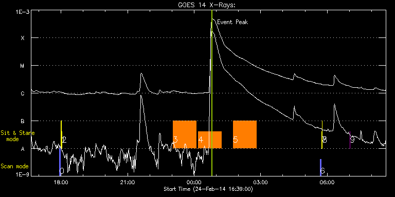 EIS Observation timeline overlay to GOES-Xray curve Code 1" 2" 40" 266" EIS Observations list for this event: STUDY ACRONYM ID DATE OBSERVED DESCRIPTION NOAA# TARGET 0 PRY_slot_contextLITE | 38815 | 2014/02/24 17:55:49 | Synoptic observations | 1982 | Active Region TIMELINE ID DATE OBSERVED FITS FILE XCEN (+W/-E) YCEN (+N/-S) DUR ----------------------------------------------------------------------------------------------------------------- 38815 | 2014/02/24 17:55:49.000 | eis_l0_20140224_175549.fits.gz | -15.21 | -0.58 | 2m56s 1 Alignment_266 | 38816 | 2014/02/24 17:59:25 | Synoptic observations | | Quiet Sun TIMELINE ID DATE OBSERVED FITS FILE XCEN (+W/-E) YCEN (+N/-S) DUR ----------------------------------------------------------------------------------------------------------------- 38816 | 2014/02/24 17:59:25.000 | eis_l0_20140224_175925.fits.gz | -132.41 | -0.58 | 1m23s 2 XRT_synop_AIA | 38817 | 2014/02/24 18:02:14 | Synoptic observations | | Quiet Sun TIMELINE ID DATE OBSERVED FITS FILE XCEN (+W/-E) YCEN (+N/-S) DUR ----------------------------------------------------------------------------------------------------------------- 38817 | 2014/02/24 18:02:14.000 | eis_l0_20140224_180214.fits.gz | -132.49 | -0.42 | 11s 3 vhh_slowar_sas_1h6m | 38837 | 2014/02/24 23:02:19 | IHOP 249 | | Active Region TIMELINE ID DATE OBSERVED FITS FILE XCEN (+W/-E) YCEN (+N/-S) DUR ----------------------------------------------------------------------------------------------------------------- 38837 | 2014/02/24 23:02:19.000 | eis_l0_20140224_230219.fits.gz | -9869.95 | -9963.20 | 1h2m48s 4 vhh_slowar_sas_1h6m | 38838 | 2014/02/25 00:11:09 | IHOP 249 | | Active Region TIMELINE ID DATE OBSERVED FITS FILE XCEN (+W/-E) YCEN (+N/-S) DUR ----------------------------------------------------------------------------------------------------------------- 38838 | 2014/02/25 00:11:09.000 | eis_l0_20140225_001109.fits.gz | -9869.95 | -9963.20 | 1h2m49s 5 vhh_slowar_sas_1h6m | 38839 | 2014/02/25 01:45:39 | IHOP 249 | | Active Region TIMELINE ID DATE OBSERVED FITS FILE XCEN (+W/-E) YCEN (+N/-S) DUR ----------------------------------------------------------------------------------------------------------------- 38839 | 2014/02/25 01:45:39.000 | eis_l0_20140225_014539.fits.gz | -9869.95 | -9963.20 | 1h2m49s 6 PRY_slot_contextLITE | 38818 | 2014/02/25 05:40:48 | Synoptic observations | | Active Region TIMELINE ID DATE OBSERVED FITS FILE XCEN (+W/-E) YCEN (+N/-S) DUR ----------------------------------------------------------------------------------------------------------------- 38818 | 2014/02/25 05:40:48.000 | eis_l0_20140225_054048.fits.gz | -15.29 | -0.42 | 2m57s 7 Alignment_266 | 38819 | 2014/02/25 05:44:26 | Synoptic observations | | Quiet Sun TIMELINE ID DATE OBSERVED FITS FILE XCEN (+W/-E) YCEN (+N/-S) DUR ----------------------------------------------------------------------------------------------------------------- 38819 | 2014/02/25 05:44:26.000 | eis_l0_20140225_054426.fits.gz | -132.57 | -0.58 | 1m22s 8 XRT_synop_AIA | 38820 | 2014/02/25 05:46:48 | Synoptic observations | | Quiet Sun TIMELINE ID DATE OBSERVED FITS FILE XCEN (+W/-E) YCEN (+N/-S) DUR ----------------------------------------------------------------------------------------------------------------- 38820 | 2014/02/25 05:46:48.000 | eis_l0_20140225_054648.fits.gz | -132.57 | -0.58 | 10s 9 regcal077 | 38824 | 2014/02/25 07:01:40 | Flatfield, 2 exposures, led 80ms, full | | Engineering TIMELINE ID DATE OBSERVED FITS FILE XCEN (+W/-E) YCEN (+N/-S) DUR ----------------------------------------------------------------------------------------------------------------- 38824 | 2014/02/25 07:01:40.000 | eis_l0_20140225_070140.fits.gz | 429.41 | -97.16 | 4s : Check study information : Download file : View thumbnails For this event, also check for: