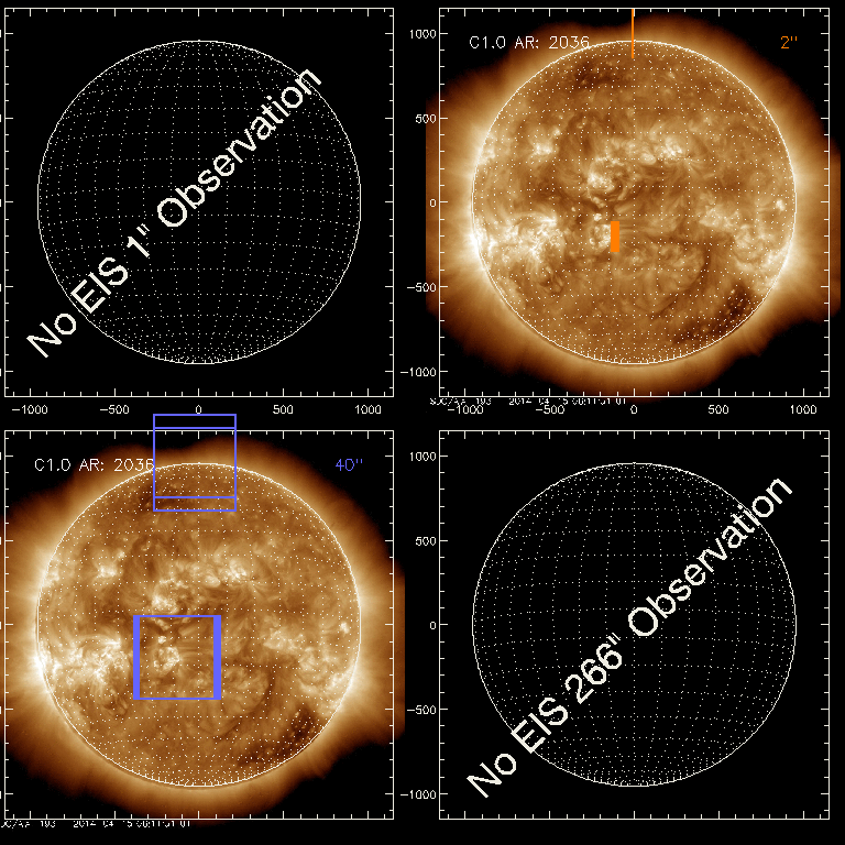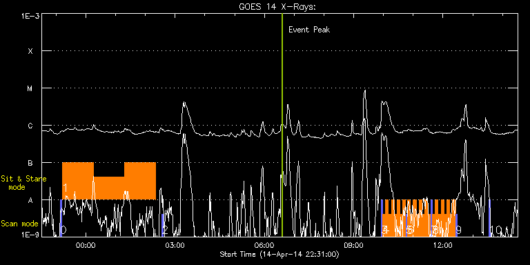 EIS Observation timeline overlay to GOES-Xray curve Code 1" 2" 40" 266" EIS Observations list for this event: STUDY ACRONYM ID DATE OBSERVED DESCRIPTION NOAA# TARGET 0 PRY_slot_contextLITE | 39657 | 2014/04/14 23:07:55 | IHOP 249 | | Active Region TIMELINE ID DATE OBSERVED FITS FILE XCEN (+W/-E) YCEN (+N/-S) DUR ----------------------------------------------------------------------------------------------------------------- 39657 | 2014/04/14 23:07:55.000 | eis_l0_20140414_230755.fits.gz | -21.12 | 914.50 | 2m57s 1 vhh_slowar_sas_1h6m | 39658 | 2014/04/14 23:12:03 | IHOP 249 | | Active Region TIMELINE ID DATE OBSERVED FITS FILE XCEN (+W/-E) YCEN (+N/-S) DUR ----------------------------------------------------------------------------------------------------------------- 39658 | 2014/04/14 23:12:03.000 | eis_l0_20140414_231203.fits.gz | -6.63 | 994.35 | 1h2m50s 39658 | 2014/04/15 00:14:56.000 | eis_l0_20140415_001456.fits.gz | -6.55 | 994.42 | 1h2m50s 39658 | 2014/04/15 01:17:49.000 | eis_l0_20140415_011749.fits.gz | -6.71 | 994.35 | 1h2m50s 2 PRY_slot_contextLITE | 39659 | 2014/04/15 02:33:18 | IHOP 249 | | Active Region TIMELINE ID DATE OBSERVED FITS FILE XCEN (+W/-E) YCEN (+N/-S) DUR ----------------------------------------------------------------------------------------------------------------- 39659 | 2014/04/15 02:33:18.000 | eis_l0_20140415_023318.fits.gz | -21.12 | 994.27 | 2m57s 3 PRY_slot_context_v3 | 39676 | 2014/04/15 09:54:57 | IHOP 252: Transition region explosive | 2036 | Active Region TIMELINE ID DATE OBSERVED FITS FILE XCEN (+W/-E) YCEN (+N/-S) DUR ----------------------------------------------------------------------------------------------------------------- 39676 | 2014/04/15 09:54:57.000 | eis_l0_20140415_095457.fits.gz | -143.91 | -198.64 | 2m56s 4 Cor_Hole_Jet_v1 | 39677 | 2014/04/15 09:58:19 | IHOP 252: Transition region explosive | | Quiet Sun TIMELINE ID DATE OBSERVED FITS FILE XCEN (+W/-E) YCEN (+N/-S) DUR ----------------------------------------------------------------------------------------------------------------- 39677 | 2014/04/15 09:58:19.000 | eis_l0_20140415_095819.fits.gz | -120.97 | -208.72 | 5m47s 39677 | 2014/04/15 10:04:08.000 | eis_l0_20140415_100408.fits.gz | -120.04 | -208.56 | 5m47s 39677 | 2014/04/15 10:09:58.000 | eis_l0_20140415_100958.fits.gz | -119.27 | -208.56 | 5m47s 39677 | 2014/04/15 10:15:48.000 | eis_l0_20140415_101548.fits.gz | -118.42 | -208.56 | 5m47s 39677 | 2014/04/15 10:21:38.000 | eis_l0_20140415_102138.fits.gz | -117.64 | -208.49 | 5m47s 39677 | 2014/04/15 10:27:27.000 | eis_l0_20140415_102727.fits.gz | -116.72 | -208.41 | 5m47s 39677 | 2014/04/15 10:33:17.000 | eis_l0_20140415_103317.fits.gz | -115.95 | -208.49 | 5m47s 39677 | 2014/04/15 10:39:07.000 | eis_l0_20140415_103907.fits.gz | -115.02 | -208.41 | 5m47s 5 PRY_slot_context_v3 | 39767 | 2014/04/15 10:45:05 | IHOP 252: Transition region explosive | 2036 | Active Region TIMELINE ID DATE OBSERVED FITS FILE XCEN (+W/-E) YCEN (+N/-S) DUR ----------------------------------------------------------------------------------------------------------------- 39767 | 2014/04/15 10:45:05.000 | eis_l0_20140415_104505.fits.gz | -136.65 | -198.41 | 2m57s 6 Cor_Hole_Jet_v1 | 39768 | 2014/04/15 10:48:27 | IHOP 252: Transition region explosive | | Quiet Sun TIMELINE ID DATE OBSERVED FITS FILE XCEN (+W/-E) YCEN (+N/-S) DUR ----------------------------------------------------------------------------------------------------------------- 39768 | 2014/04/15 10:48:27.000 | eis_l0_20140415_104827.fits.gz | -113.71 | -208.56 | 5m47s 39768 | 2014/04/15 10:54:16.000 | eis_l0_20140415_105416.fits.gz | -112.86 | -208.49 | 5m47s 39768 | 2014/04/15 11:00:06.000 | eis_l0_20140415_110006.fits.gz | -112.01 | -208.41 | 5m46s 39768 | 2014/04/15 11:05:55.000 | eis_l0_20140415_110555.fits.gz | -111.16 | -208.49 | 5m47s 39768 | 2014/04/15 11:11:45.000 | eis_l0_20140415_111145.fits.gz | -110.31 | -208.56 | 5m47s 39768 | 2014/04/15 11:17:34.000 | eis_l0_20140415_111734.fits.gz | -109.46 | -208.41 | 5m47s 39768 | 2014/04/15 11:23:24.000 | eis_l0_20140415_112324.fits.gz | -108.61 | -208.41 | 5m47s 39768 | 2014/04/15 11:29:13.000 | eis_l0_20140415_112913.fits.gz | -107.76 | -208.49 | 5m47s 7 PRY_slot_context_v3 | 39769 | 2014/04/15 11:35:11 | IHOP 252: Transition region explosive | 2036 | Active Region TIMELINE ID DATE OBSERVED FITS FILE XCEN (+W/-E) YCEN (+N/-S) DUR ----------------------------------------------------------------------------------------------------------------- 39769 | 2014/04/15 11:35:11.000 | eis_l0_20140415_113511.fits.gz | -129.38 | -198.49 | 2m57s 8 Cor_Hole_Jet_v1 | 39770 | 2014/04/15 11:38:33 | IHOP 252: Transition region explosive | | Quiet Sun TIMELINE ID DATE OBSERVED FITS FILE XCEN (+W/-E) YCEN (+N/-S) DUR ----------------------------------------------------------------------------------------------------------------- 39770 | 2014/04/15 11:38:33.000 | eis_l0_20140415_113833.fits.gz | -106.44 | -208.49 | 5m47s 39770 | 2014/04/15 11:44:23.000 | eis_l0_20140415_114423.fits.gz | -105.60 | -208.33 | 5m47s 39770 | 2014/04/15 11:50:12.000 | eis_l0_20140415_115012.fits.gz | -104.75 | -208.41 | 5m47s 39770 | 2014/04/15 11:56:02.000 | eis_l0_20140415_115602.fits.gz | -103.89 | -208.33 | 5m47s 39770 | 2014/04/15 12:01:52.000 | eis_l0_20140415_120152.fits.gz | -103.12 | -208.41 | 5m47s 39770 | 2014/04/15 12:07:41.000 | eis_l0_20140415_120741.fits.gz | -102.27 | -208.33 | 5m47s 39770 | 2014/04/15 12:13:31.000 | eis_l0_20140415_121331.fits.gz | -101.42 | -208.33 | 5m47s 39770 | 2014/04/15 12:19:21.000 | eis_l0_20140415_121921.fits.gz | -100.57 | -208.33 | 5m47s 9 PRY_slot_context_v3 | 39771 | 2014/04/15 12:25:19 | IHOP 252: Transition region explosive | 2036 | Active Region TIMELINE ID DATE OBSERVED FITS FILE XCEN (+W/-E) YCEN (+N/-S) DUR ----------------------------------------------------------------------------------------------------------------- 39771 | 2014/04/15 12:25:19.000 | eis_l0_20140415_1225