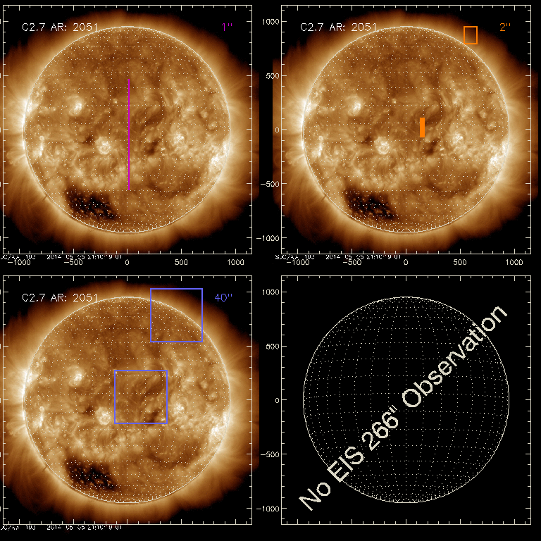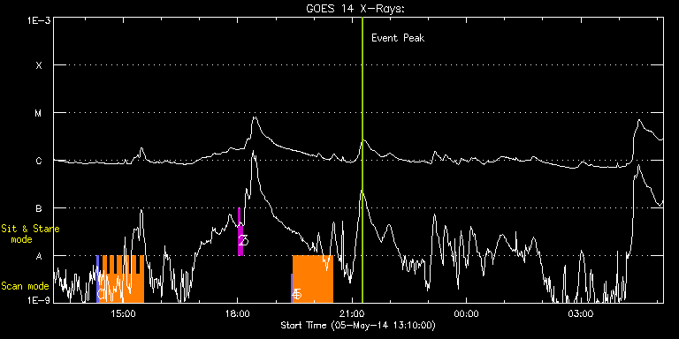 EIS Observation timeline overlay to GOES-Xray curve Code 1" 2" 40" 266" EIS Observations list for this event: STUDY ACRONYM ID DATE OBSERVED DESCRIPTION NOAA# TARGET 0 PRY_slot_context_v3 | 40265 | 2014/05/05 14:18:19 | | 2049 | Active Region TIMELINE ID DATE OBSERVED FITS FILE XCEN (+W/-E) YCEN (+N/-S) DUR ----------------------------------------------------------------------------------------------------------------- 40265 | 2014/05/05 14:18:19.000 | eis_l0_20140505_141819.fits.gz | 125.22 | 23.52 | 2m56s 1 Cor_Hole_Jet_v1 | 40266 | 2014/05/05 14:21:39 | Hinode - La Palma joint observation (q | | Quiet Sun TIMELINE ID DATE OBSERVED FITS FILE XCEN (+W/-E) YCEN (+N/-S) DUR ----------------------------------------------------------------------------------------------------------------- 40266 | 2014/05/05 14:21:39.000 | eis_l0_20140505_142139.fits.gz | 149.74 | 13.60 | 5m47s 40266 | 2014/05/05 14:27:29.000 | eis_l0_20140505_142729.fits.gz | 150.67 | 13.45 | 5m46s 40266 | 2014/05/05 14:33:18.000 | eis_l0_20140505_143318.fits.gz | 151.51 | 13.52 | 5m47s 40266 | 2014/05/05 14:39:08.000 | eis_l0_20140505_143908.fits.gz | 152.44 | 13.45 | 5m46s 40266 | 2014/05/05 14:44:57.000 | eis_l0_20140505_144457.fits.gz | 153.37 | 13.37 | 5m47s 40266 | 2014/05/05 14:50:47.000 | eis_l0_20140505_145047.fits.gz | 154.22 | 13.22 | 5m47s 40266 | 2014/05/05 14:56:36.000 | eis_l0_20140505_145636.fits.gz | 155.07 | 13.37 | 5m47s 40266 | 2014/05/05 15:02:26.000 | eis_l0_20140505_150226.fits.gz | 155.92 | 13.37 | 5m47s 40266 | 2014/05/05 15:08:15.000 | eis_l0_20140505_150815.fits.gz | 156.85 | 13.22 | 5m47s 40266 | 2014/05/05 15:14:05.000 | eis_l0_20140505_151405.fits.gz | 157.77 | 13.14 | 5m47s 40266 | 2014/05/05 15:19:55.000 | eis_l0_20140505_151955.fits.gz | 158.70 | 13.37 | 5m47s 40266 | 2014/05/05 15:25:45.000 | eis_l0_20140505_152545.fits.gz | 159.55 | 13.14 | 5m46s 2 regcal071 | 40233 | 2014/05/05 18:00:41 | Dark exposures, CCD bottom rows (100s | | Engineering TIMELINE ID DATE OBSERVED FITS FILE XCEN (+W/-E) YCEN (+N/-S) DUR ----------------------------------------------------------------------------------------------------------------- 40233 | 2014/05/05 18:00:41.000 | eis_l0_20140505_180041.fits.gz | 14.51 | -305.42 | 3m22s 3 regcal072 | 40234 | 2014/05/05 18:04:30 | Dark exposures, top CCD rows (100s exp | | Engineering TIMELINE ID DATE OBSERVED FITS FILE XCEN (+W/-E) YCEN (+N/-S) DUR ----------------------------------------------------------------------------------------------------------------- 40234 | 2014/05/05 18:04:30.000 | eis_l0_20140505_180430.fits.gz | 14.51 | 205.50 | 3m22s 4 PRY_slot_context_v3 | 40231 | 2014/05/05 19:24:19 | EIS spectral atlas - quiet Sun off-lim | | Active Region TIMELINE ID DATE OBSERVED FITS FILE XCEN (+W/-E) YCEN (+N/-S) DUR ----------------------------------------------------------------------------------------------------------------- 40231 | 2014/05/05 19:24:19.000 | eis_l0_20140505_192419.fits.gz | 454.84 | 779.70 | 2m56s 5 Atlas_60 | 40232 | 2014/05/05 19:27:39 | EIS spectral atlas - quiet Sun off-lim | | Quiet Sun TIMELINE ID DATE OBSERVED FITS FILE XCEN (+W/-E) YCEN (+N/-S) DUR ----------------------------------------------------------------------------------------------------------------- 40232 | 2014/05/05 19:27:39.000 | eis_l0_20140505_192739.fits.gz | 597.70 | 866.78 | 1h1m40s : Check study information : Download file : View thumbnails For this event, also check for: