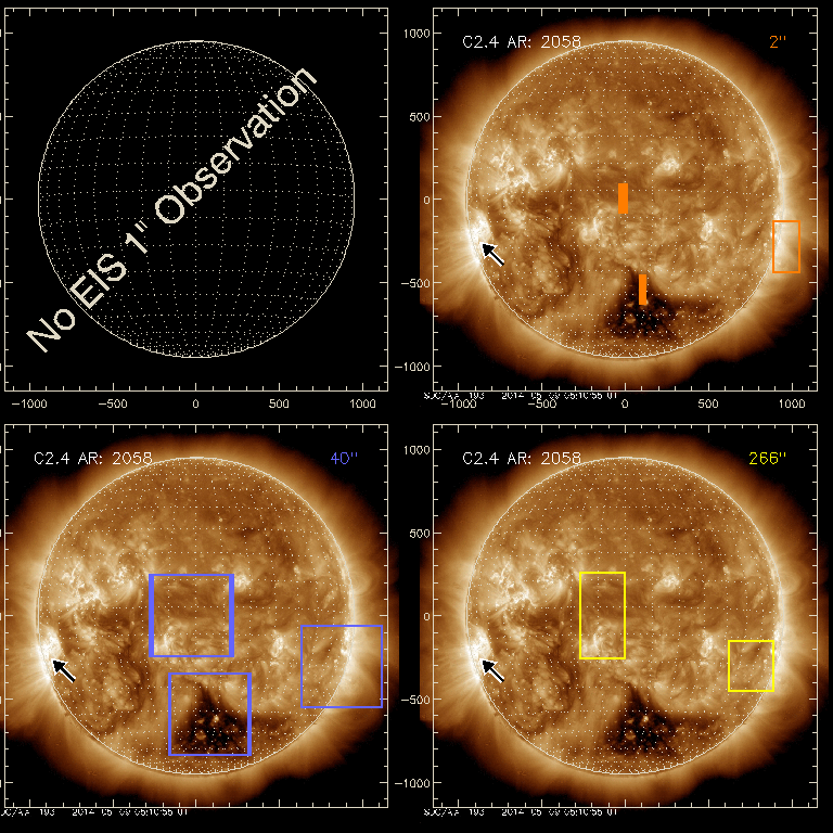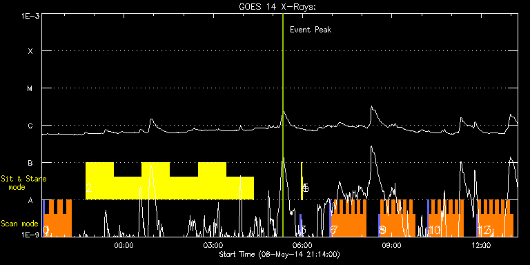 EIS Observation timeline overlay to GOES-Xray curve Code 1" 2" 40" 266" EIS Observations list for this event: STUDY ACRONYM ID DATE OBSERVED DESCRIPTION NOAA# TARGET 0 PRY_slot_context_v3 | 40359 | 2014/05/08 21:16:20 | | 2049 | Active Region TIMELINE ID DATE OBSERVED FITS FILE XCEN (+W/-E) YCEN (+N/-S) DUR ----------------------------------------------------------------------------------------------------------------- 40359 | 2014/05/08 21:16:20.000 | eis_l0_20140508_211620.fits.gz | 874.60 | -304.24 | 2m56s 1 FlareResponse01 | 40360 | 2014/05/08 21:19:42 | AR/flare observation | | Flare TIMELINE ID DATE OBSERVED FITS FILE XCEN (+W/-E) YCEN (+N/-S) DUR ----------------------------------------------------------------------------------------------------------------- 40360 | 2014/05/08 21:19:42.000 | eis_l0_20140508_211942.fits.gz | 969.04 | -289.32 | 8m52s 40360 | 2014/05/08 21:28:37.000 | eis_l0_20140508_212837.fits.gz | 969.04 | -289.24 | 8m52s 40360 | 2014/05/08 21:37:32.000 | eis_l0_20140508_213732.fits.gz | 968.96 | -289.24 | 8m52s 40360 | 2014/05/08 21:46:27.000 | eis_l0_20140508_214627.fits.gz | 968.96 | -289.16 | 8m52s 40360 | 2014/05/08 21:55:22.000 | eis_l0_20140508_215522.fits.gz | 968.89 | -289.24 | 8m52s 40360 | 2014/05/08 22:04:17.000 | eis_l0_20140508_220417.fits.gz | 968.96 | -289.16 | 8m52s 2 Flare266_Hunter01 | 40354 | 2014/05/08 22:42:34 | HOP 244 - supra-arcade plasma | | Flare TIMELINE ID DATE OBSERVED FITS FILE XCEN (+W/-E) YCEN (+N/-S) DUR ----------------------------------------------------------------------------------------------------------------- 40354 | 2014/05/08 22:42:34.000 | eis_l0_20140508_224234.fits.gz | 757.33 | -304.16 | 55m49s 40354 | 2014/05/08 23:39:14.000 | eis_l0_20140508_233914.fits.gz | 757.33 | -304.24 | 55m50s 40354 | 2014/05/09 00:35:56.000 | eis_l0_20140509_003556.fits.gz | 757.41 | -304.16 | 55m49s 40354 | 2014/05/09 01:32:37.000 | eis_l0_20140509_013237.fits.gz | 757.41 | -304.32 | 55m49s 40354 | 2014/05/09 02:29:17.000 | eis_l0_20140509_022917.fits.gz | 757.41 | -304.32 | 55m50s 40354 | 2014/05/09 03:25:58.000 | eis_l0_20140509_032558.fits.gz | 757.33 | -304.32 | 55m50s 3 PRY_slot_contextLITE | 40315 | 2014/05/09 05:54:27 | EIS-AIA alignment study | 2054 | Active Region TIMELINE ID DATE OBSERVED FITS FILE XCEN (+W/-E) YCEN (+N/-S) DUR ----------------------------------------------------------------------------------------------------------------- 40315 | 2014/05/09 05:54:27.000 | eis_l0_20140509_055427.fits.gz | -15.29 | -0.42 | 2m56s 4 Alignment_266 | 40316 | 2014/05/09 05:57:42 | EIS-AIA alignment study | 2054 | Quiet Sun TIMELINE ID DATE OBSERVED FITS FILE XCEN (+W/-E) YCEN (+N/-S) DUR ----------------------------------------------------------------------------------------------------------------- 40316 | 2014/05/09 05:57:42.000 | eis_l0_20140509_055742.fits.gz | -132.57 | -0.58 | 1m22s 5 XRT_synop_AIA | 40317 | 2014/05/09 05:59:49 | EIS-AIA alignment study | 2054 | Quiet Sun TIMELINE ID DATE OBSERVED FITS FILE XCEN (+W/-E) YCEN (+N/-S) DUR ----------------------------------------------------------------------------------------------------------------- 40317 | 2014/05/09 05:59:49.000 | eis_l0_20140509_055949.fits.gz | -132.64 | -0.42 | 10s 6 PRY_slot_context_v3 | 40334 | 2014/05/09 06:54:27 | | 2054 | Active Region TIMELINE ID DATE OBSERVED FITS FILE XCEN (+W/-E) YCEN (+N/-S) DUR ----------------------------------------------------------------------------------------------------------------- 40334 | 2014/05/09 06:54:27.000 | eis_l0_20140509_065427.fits.gz | -35.92 | 0.81 | 2m56s 7 Cor_Hole_Jet_v1 | 40335 | 2014/05/09 06:57:48 | Hinode - La Palma joint observation (q | | Quiet Sun TIMELINE ID DATE OBSERVED FITS FILE XCEN (+W/-E) YCEN (+N/-S) DUR ----------------------------------------------------------------------------------------------------------------- 40335 | 2014/05/09 06:57:48.000 | eis_l0_20140509_065748.fits.gz | -21.63 | 0.81 | 5m47s 40335 | 2014/05/09 07:03:38.000 | eis_l0_20140509_070338.fits.gz | -20.71 | 0.89 | 5m47s 40335 | 2014/05/09 07:09:28.000 | eis_l0_20140509_070928.fits.gz | -19.86 | 0.66 | 5m47s 40335 | 2014/05/09 07:15:17.000 | eis_l0_20140509_071517.fits.gz | -18.93 | 0.81 | 5m47s 40335 | 2014/05/09 07:21:07.000 | eis_l0_20140509_072107.fits.gz | -18.00 | 0.50 | 5m47s 40335 | 2014/05/09 07:26:57.000 | eis_l0_20140509_072657.fits.gz | -17.15 | 0.74 | 5m46s 40335 | 2014/05/09 07:32:46.000 | eis_l0_20140509_073246.fits.gz | -16.30 | 0.50 | 5m47s 40335 | 2014/05/09 07:38:36.000 | eis_l0_20140509_073836.fits.gz | -15.30 | 0.66 | 5m46s 40335 | 2014/05/09 07:44:25.000 | eis_l0_20140509_074425.fits.gz | -14.45 | 0.50 | 5m47s 40335 | 2014/05/09 07:50:15.000 | eis_l0_20140509_075015.fits.gz | -13.52 | 0.58 | 5m46s 40335 | 2014/05/09 07:56:04.000 | eis_l0_20140509_075604.fits.gz | -12.67 | 0.50 | 5m47s 40335 | 2014/05/09 08:01:54.000 | eis_l0_20140509_080154.fits.gz | -11.75 | 0.58 | 5m46s 8 PRY_slot_context_v3 | 40336 | 2014/05/09 08:33:20 | | 2054 | Active Region TIMELINE ID DATE OBSERVED FITS FILE XCEN (+W/-E) YCEN (+N/-S) DUR ----------------------------------------------------------------------------------------------------------------- 40336 | 2014/05/09 08:33:20.000 | eis_l0_20140509_083320.fits.gz | -20.70 | 0.74 | 2m57s 9 Cor_Hole_Jet_v1 | 40337 | 2014/05/09 08:36:42 | Hinode - La Palma joint observation (q | | Quiet Sun TIMELINE ID DATE OBSERVED FITS FILE XCEN (+W/-E) YCEN (+N/-S) DUR ----------------------------------------------------------------------------------------------------------------- 40337 | 2014/05/09 08:36:42.000 | eis_l0_20140509_083642.fits.gz | -6.49 | 0.66 | 5m47s 40337 | 2014/05/09 08:42:32.000 | eis_l0_20140509_084232.fits.gz | -5.49 | 0.66 | 5m47s 40337 | 2014/05/09 08:48:22.000 | eis_l0_20140509_084822.fits.gz | -4.64 | 0.58 | 5m47s 40337 | 2014/05/09 08:54:11.000 | eis_l0_20140509_085411.fits.gz | -3.71 | 0.58 | 5m47s 40337 | 2014/05/09 09:00:01.000 | eis_l0_20140509_090001.fits.gz | -2.