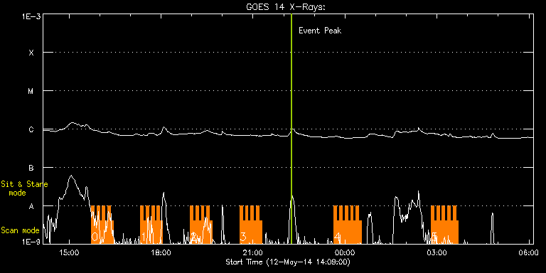 EIS Observation timeline overlay to GOES-Xray curve Code 1" 2" 40" 266" EIS Observations list for this event: STUDY ACRONYM ID DATE OBSERVED DESCRIPTION NOAA# TARGET 0 HH_Flare+AR_180x152 | 40405 | 2014/05/12 15:43:42 | Flare Study | 2056 | Flare TIMELINE ID DATE OBSERVED FITS FILE XCEN (+W/-E) YCEN (+N/-S) DUR ----------------------------------------------------------------------------------------------------------------- 40405 | 2014/05/12 15:43:42.000 | eis_l0_20140512_154342.fits.gz | 27.06 | 118.38 | 5m19s 40405 | 2014/05/12 15:49:04.000 | eis_l0_20140512_154904.fits.gz | 27.91 | 118.31 | 5m17s 40405 | 2014/05/12 15:54:24.000 | eis_l0_20140512_155424.fits.gz | 28.76 | 118.38 | 5m18s 40405 | 2014/05/12 15:59:45.000 | eis_l0_20140512_155945.fits.gz | 29.53 | 118.31 | 5m18s 40405 | 2014/05/12 16:05:06.000 | eis_l0_20140512_160506.fits.gz | 30.38 | 118.31 | 5m18s 40405 | 2014/05/12 16:10:27.000 | eis_l0_20140512_161027.fits.gz | 31.15 | 118.46 | 5m19s 40405 | 2014/05/12 16:15:48.000 | eis_l0_20140512_161548.fits.gz | 32.08 | 118.31 | 5m18s 40405 | 2014/05/12 16:21:09.000 | eis_l0_20140512_162109.fits.gz | 32.85 | 118.31 | 5m19s 1 HH_Flare+AR_180x152 | 40418 | 2014/05/12 17:20:12 | Flare Study | | Flare TIMELINE ID DATE OBSERVED FITS FILE XCEN (+W/-E) YCEN (+N/-S) DUR ----------------------------------------------------------------------------------------------------------------- 40418 | 2014/05/12 17:20:12.000 | eis_l0_20140512_172012.fits.gz | 41.89 | 118.31 | 5m18s 40418 | 2014/05/12 17:25:33.000 | eis_l0_20140512_172533.fits.gz | 42.74 | 118.23 | 5m18s 40418 | 2014/05/12 17:30:54.000 | eis_l0_20140512_173054.fits.gz | 43.51 | 118.23 | 5m18s 40418 | 2014/05/12 17:36:15.000 | eis_l0_20140512_173615.fits.gz | 44.36 | 118.38 | 5m19s 40418 | 2014/05/12 17:41:36.000 | eis_l0_20140512_174136.fits.gz | 45.13 | 118.23 | 5m18s 40418 | 2014/05/12 17:46:57.000 | eis_l0_20140512_174657.fits.gz | 46.06 | 118.15 | 5m18s 40418 | 2014/05/12 17:52:17.000 | eis_l0_20140512_175217.fits.gz | 46.83 | 118.07 | 5m19s 40418 | 2014/05/12 17:57:38.000 | eis_l0_20140512_175738.fits.gz | 47.68 | 118.31 | 5m18s 2 HH_Flare+AR_180x152 | 40408 | 2014/05/12 18:57:12 | Flare Study | | Flare TIMELINE ID DATE OBSERVED FITS FILE XCEN (+W/-E) YCEN (+N/-S) DUR ----------------------------------------------------------------------------------------------------------------- 40408 | 2014/05/12 18:57:12.000 | eis_l0_20140512_185712.fits.gz | 56.87 | 118.00 | 5m18s 40408 | 2014/05/12 19:02:33.000 | eis_l0_20140512_190233.fits.gz | 57.65 | 118.07 | 5m18s 40408 | 2014/05/12 19:07:53.000 | eis_l0_20140512_190753.fits.gz | 58.42 | 118.07 | 5m19s 40408 | 2014/05/12 19:13:15.000 | eis_l0_20140512_191315.fits.gz | 59.27 | 118.15 | 5m18s 40408 | 2014/05/12 19:18:36.000 | eis_l0_20140512_191836.fits.gz | 60.12 | 117.77 | 5m18s 40408 | 2014/05/12 19:23:57.000 | eis_l0_20140512_192357.fits.gz | 60.89 | 118.07 | 5m18s 40408 | 2014/05/12 19:29:18.000 | eis_l0_20140512_192918.fits.gz | 61.74 | 118.07 | 5m18s 40408 | 2014/05/12 19:34:39.000 | eis_l0_20140512_193439.fits.gz | 62.51 | 118.07 | 5m18s 3 HH_Flare+AR_180x152 | 40410 | 2014/05/12 20:34:12 | Flare Study | | Flare TIMELINE ID DATE OBSERVED FITS FILE XCEN (+W/-E) YCEN (+N/-S) DUR ----------------------------------------------------------------------------------------------------------------- 40410 | 2014/05/12 20:34:12.000 | eis_l0_20140512_203412.fits.gz | 71.71 | 117.92 | 5m19s 40410 | 2014/05/12 20:39:34.000 | eis_l0_20140512_203934.fits.gz | 72.48 | 117.92 | 5m18s 40410 | 2014/05/12 20:44:54.000 | eis_l0_20140512_204454.fits.gz | 73.33 | 117.84 | 5m18s 40410 | 2014/05/12 20:50:15.000 | eis_l0_20140512_205015.fits.gz | 74.10 | 117.77 | 5m18s 40410 | 2014/05/12 20:55:36.000 | eis_l0_20140512_205536.fits.gz | 75.03 | 117.84 | 5m18s 40410 | 2014/05/12 21:00:57.000 | eis_l0_20140512_210057.fits.gz | 75.80 | 117.84 | 5m18s 40410 | 2014/05/12 21:06:18.000 | eis_l0_20140512_210618.fits.gz | 76.49 | 117.77 | 5m17s 40410 | 2014/05/12 21:11:38.000 | eis_l0_20140512_211138.fits.gz | 77.42 | 117.92 | 5m18s 4 HH_Flare+AR_180x152 | 40406 | 2014/05/12 23:38:42 | Flare Study | | Flare TIMELINE ID DATE OBSERVED FITS FILE XCEN (+W/-E) YCEN (+N/-S) DUR ----------------------------------------------------------------------------------------------------------------- 40406 | 2014/05/12 23:38:42.000 | eis_l0_20140512_233842.fits.gz | 99.98 | 117.61 | 5m18s 40406 | 2014/05/12 23:44:03.000 | eis_l0_20140512_234403.fits.gz | 100.75 | 117.61 | 5m18s 40406 | 2014/05/12 23:49:23.000 | eis_l0_20140512_234923.fits.gz | 101.52 | 117.53 | 5m18s 40406 | 2014/05/12 23:54:44.000 | eis_l0_20140512_235444.fits.gz | 102.37 | 117.69 | 5m18s 40406 | 2014/05/13 00:00:05.000 | eis_l0_20140513_000005.fits.gz | 103.22 | 117.38 | 5m17s 40406 | 2014/05/13 00:05:25.000 | eis_l0_20140513_000525.fits.gz | 104.00 | 117.53 | 5m18s 40406 | 2014/05/13 00:10:46.000 | eis_l0_20140513_001046.fits.gz | 104.85 | 117.38 | 5m17s 40406 | 2014/05/13 00:16:06.000 | eis_l0_20140513_001606.fits.gz | 105.62 | 117.38 | 5m19s 40406 | 2014/05/13 00:21:27.000 | eis_l0_20140513_002127.fits.gz | 106.39 | 117.46 | 5m18s 40406 | 2014/05/13 00:26:48.000 | eis_l0_20140513_002648.fits.gz | 107.32 | 117.38 | 5m18s 5 HH_Flare+AR_180x152 | 40409 | 2014/05/13 02:48:42 | Flare Study | 2056 | Flare TIMELINE ID DATE OBSERVED FITS FILE XCEN (+W/-E) YCEN (+N/-S) DUR ----------------------------------------------------------------------------------------------------------------- 40409 | 2014/05/13 02:48:42.000 | eis_l0_20140513_024842.fits.gz | 128.87 | 117.22 | 5m17s 40409 | 2014/05/13 02:54:02.000 | eis_l0_20140513_025402.fits.gz | 129.80 | 117.22 | 5m17s 40409 | 2014/05/13 02:59:22.000 | eis_l0_20140513_025922.fits.gz | 130.49 | 117.22 | 5m18s 40409 | 2014/05/13 03:04:43.000 | eis_l0_20140513_030443.fits.gz | 131.34 | 117.07 | 5m18s 40409 | 2014/05/13 03:10:03.000 | eis_l0_20140513_031003.fits.gz | 132.19 | 117.15 | 5m18s 40409 | 2014/05/13 03:15:24.000 | eis_l0_201