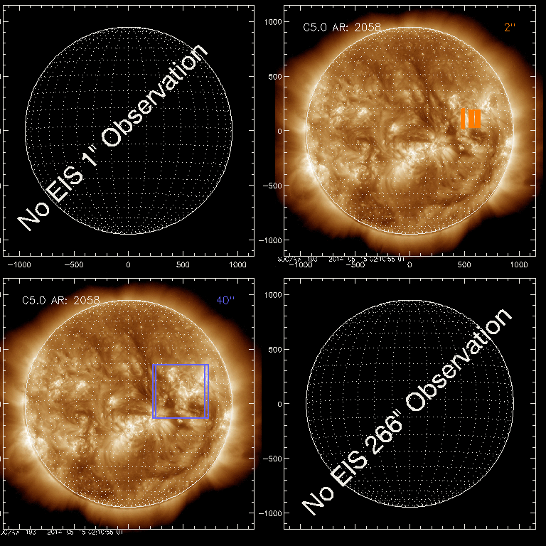 EIS Observation timeline overlay to GOES-Xray curve Code 1" 2" 40" 266" EIS Observations list for this event: STUDY ACRONYM ID DATE OBSERVED DESCRIPTION NOAA# TARGET 0 PRY_slot_context_v3 | 40453 | 2014/05/14 18:43:26 | HOP241 | 2055 | Active Region TIMELINE ID DATE OBSERVED FITS FILE XCEN (+W/-E) YCEN (+N/-S) DUR ----------------------------------------------------------------------------------------------------------------- 40453 | 2014/05/14 18:43:26.000 | eis_l0_20140514_184326.fits.gz | 461.48 | 108.42 | 2m56s 1 FLAREDOP_EIS | 40454 | 2014/05/14 18:46:47 | HOP241 | | Flare TIMELINE ID DATE OBSERVED FITS FILE XCEN (+W/-E) YCEN (+N/-S) DUR ----------------------------------------------------------------------------------------------------------------- 40454 | 2014/05/14 18:46:47.000 | eis_l0_20140514_184647.fits.gz | 476.53 | 108.11 | 55m51s 40454 | 2014/05/14 19:42:40.000 | eis_l0_20140514_194240.fits.gz | 483.95 | 108.11 | 55m51s 40454 | 2014/05/14 20:38:33.000 | eis_l0_20140514_203833.fits.gz | 491.28 | 107.49 | 55m52s 40454 | 2014/05/14 21:34:27.000 | eis_l0_20140514_213427.fits.gz | 498.62 | 107.42 | 55m51s 2 PRY_slot_context_v3 | 40455 | 2014/05/14 22:30:29 | HOP241 | 2055 | Active Region TIMELINE ID DATE OBSERVED FITS FILE XCEN (+W/-E) YCEN (+N/-S) DUR ----------------------------------------------------------------------------------------------------------------- 40455 | 2014/05/14 22:30:29.000 | eis_l0_20140514_223029.fits.gz | 491.22 | 106.80 | 2m57s 3 HH_Flare+AR_180x152 | 40458 | 2014/05/15 00:45:32 | Flare study | 2056 | Flare TIMELINE ID DATE OBSERVED FITS FILE XCEN (+W/-E) YCEN (+N/-S) DUR ----------------------------------------------------------------------------------------------------------------- 40458 | 2014/05/15 00:45:32.000 | eis_l0_20140515_004532.fits.gz | 576.93 | 107.41 | 5m18s 40458 | 2014/05/15 00:50:52.000 | eis_l0_20140515_005052.fits.gz | 577.62 | 107.33 | 5m19s 40458 | 2014/05/15 00:56:14.000 | eis_l0_20140515_005614.fits.gz | 578.24 | 107.33 | 5m17s 40458 | 2014/05/15 01:01:34.000 | eis_l0_20140515_010134.fits.gz | 579.02 | 107.26 | 5m18s 40458 | 2014/05/15 01:06:55.000 | eis_l0_20140515_010655.fits.gz | 579.71 | 107.26 | 5m18s 40458 | 2014/05/15 01:12:15.000 | eis_l0_20140515_011215.fits.gz | 580.41 | 107.18 | 5m18s 40458 | 2014/05/15 01:17:36.000 | eis_l0_20140515_011736.fits.gz | 581.10 | 107.18 | 5m18s 40458 | 2014/05/15 01:22:57.000 | eis_l0_20140515_012257.fits.gz | 581.64 | 107.18 | 5m18s 40458 | 2014/05/15 01:28:17.000 | eis_l0_20140515_012817.fits.gz | 582.41 | 107.26 | 5m18s 40458 | 2014/05/15 01:33:38.000 | eis_l0_20140515_013338.fits.gz | 583.19 | 106.95 | 5m18s 40458 | 2014/05/15 01:38:59.000 | eis_l0_20140515_013859.fits.gz | 583.80 | 107.10 | 5m18s 40458 | 2014/05/15 01:44:20.000 | eis_l0_20140515_014420.fits.gz | 584.50 | 106.87 | 5m19s 4 HH_Flare+AR_180x152 | 40460 | 2014/05/15 02:23:43 | Flare study | 2056 | Flare TIMELINE ID DATE OBSERVED FITS FILE XCEN (+W/-E) YCEN (+N/-S) DUR ----------------------------------------------------------------------------------------------------------------- 40460 | 2014/05/15 02:23:43.000 | eis_l0_20140515_022343.fits.gz | 586.37 | 107.02 | 5m18s 40460 | 2014/05/15 02:29:03.000 | eis_l0_20140515_022903.fits.gz | 587.14 | 106.71 | 5m19s 40460 | 2014/05/15 02:34:25.000 | eis_l0_20140515_023425.fits.gz | 587.84 | 106.79 | 5m17s 40460 | 2014/05/15 02:39:45.000 | eis_l0_20140515_023945.fits.gz | 588.53 | 106.87 | 5m19s 40460 | 2014/05/15 02:45:06.000 | eis_l0_20140515_024506.fits.gz | 589.15 | 106.71 | 5m18s 40460 | 2014/05/15 02:50:27.000 | eis_l0_20140515_025027.fits.gz | 589.85 | 106.64 | 5m18s 40460 | 2014/05/15 02:55:47.000 | eis_l0_20140515_025547.fits.gz | 590.62 | 106.56 | 5m19s 40460 | 2014/05/15 03:01:09.000 | eis_l0_20140515_030109.fits.gz | 591.16 | 106.64 | 5m18s 40460 | 2014/05/15 03:06:30.000 | eis_l0_20140515_030630.fits.gz | 591.86 | 106.64 | 5m17s 40460 | 2014/05/15 03:11:50.000 | eis_l0_20140515_031150.fits.gz | 592.55 | 106.64 | 5m18s 40460 | 2014/05/15 03:17:11.000 | eis_l0_20140515_031711.fits.gz | 593.25 | 106.48 | 5m18s 5 HH_Flare+AR_180x152 | 40459 | 2014/05/15 04:02:13 | Flare study | 2056 | Flare TIMELINE ID DATE OBSERVED FITS FILE XCEN (+W/-E) YCEN (+N/-S) DUR ----------------------------------------------------------------------------------------------------------------- 40459 | 2014/05/15 04:02:13.000 | eis_l0_20140515_040213.fits.gz | 596.81 | 106.41 | 5m17s 40459 | 2014/05/15 04:07:33.000 | eis_l0_20140515_040733.fits.gz | 597.58 | 106.33 | 5m18s 40459 | 2014/05/15 04:12:54.000 | eis_l0_20140515_041254.fits.gz | 598.28 | 106.25 | 5m18s 40459 | 2014/05/15 04:18:14.000 | eis_l0_20140515_041814.fits.gz | 598.90 | 106.10 | 5m19s 40459 | 2014/05/15 04:23:35.000 | eis_l0_20140515_042335.fits.gz | 599.52 | 106.18 | 5m19s 40459 | 2014/05/15 04:28:57.000 | eis_l0_20140515_042857.fits.gz | 600.21 | 106.18 | 5m18s 40459 | 2014/05/15 04:34:17.000 | eis_l0_20140515_043417.fits.gz | 600.83 | 106.10 | 5m18s 40459 | 2014/05/15 04:39:38.000 | eis_l0_20140515_043938.fits.gz | 601.52 | 106.18 | 5m18s 40459 | 2014/05/15 04:44:59.000 | eis_l0_20140515_044459.fits.gz | 602.22 | 105.94 | 5m18s 40459 | 2014/05/15 04:50:20.000 | eis_l0_20140515_045020.fits.gz | 602.84 | 106.10 | 5m18s 6 HH_Flare+AR_180x152 | 40461 | 2014/05/15 05:40:13 | Flare study | 2056 | Flare TIMELINE ID DATE OBSERVED FITS FILE XCEN (+W/-E) YCEN (+N/-S) DUR ----------------------------------------------------------------------------------------------------------------- 40461 | 2014/05/15 05:40:13.000 | eis_l0_20140515_054013.fits.gz | 607.52 | 105.94 | 5m18s 40461 | 2014/05/15 05:45:33.000 | eis_l0_20140515_054533.fits.gz | 608.21 | 105.79 | 5m18s 40461 | 2014/05/15 05:50:54.000 | eis_l0_20140515_055054.fits.gz | 608.91 | 105.79 | 5m19s 40461 | 2014/05/15 05:56:16.000 | eis_l0_20140515_055616.fits.gz | 609.60 | 105.79 | 5m17s 40461 | 2014/05/15 06:01:36.000 | eis_l0_20140515_060136.fits.gz | 610.22 | 105.71 | 5m18s 40461 | 20