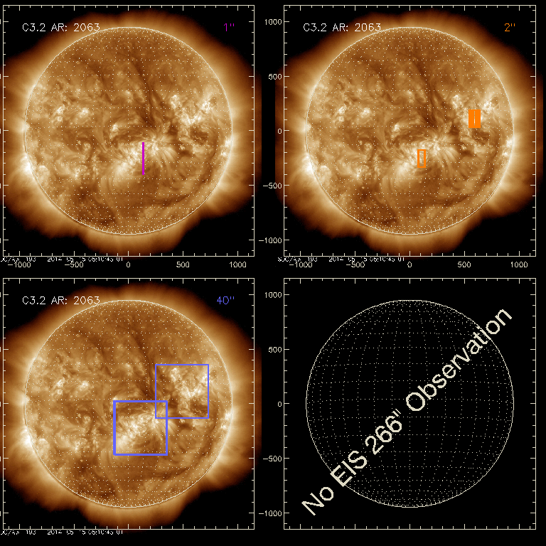 EIS Observation timeline overlay to GOES-Xray curve Code 1" 2" 40" 266" EIS Observations list for this event: STUDY ACRONYM ID DATE OBSERVED DESCRIPTION NOAA# TARGET 0 PRY_slot_context_v3 | 40455 | 2014/05/14 22:30:29 | HOP241 | 2055 | Active Region TIMELINE ID DATE OBSERVED FITS FILE XCEN (+W/-E) YCEN (+N/-S) DUR ----------------------------------------------------------------------------------------------------------------- 40455 | 2014/05/14 22:30:29.000 | eis_l0_20140514_223029.fits.gz | 491.22 | 106.80 | 2m57s 1 HH_Flare+AR_180x152 | 40458 | 2014/05/15 00:45:32 | Flare study | 2056 | Flare TIMELINE ID DATE OBSERVED FITS FILE XCEN (+W/-E) YCEN (+N/-S) DUR ----------------------------------------------------------------------------------------------------------------- 40458 | 2014/05/15 00:45:32.000 | eis_l0_20140515_004532.fits.gz | 576.93 | 107.41 | 5m18s 40458 | 2014/05/15 00:50:52.000 | eis_l0_20140515_005052.fits.gz | 577.62 | 107.33 | 5m19s 40458 | 2014/05/15 00:56:14.000 | eis_l0_20140515_005614.fits.gz | 578.24 | 107.33 | 5m17s 40458 | 2014/05/15 01:01:34.000 | eis_l0_20140515_010134.fits.gz | 579.02 | 107.26 | 5m18s 40458 | 2014/05/15 01:06:55.000 | eis_l0_20140515_010655.fits.gz | 579.71 | 107.26 | 5m18s 40458 | 2014/05/15 01:12:15.000 | eis_l0_20140515_011215.fits.gz | 580.41 | 107.18 | 5m18s 40458 | 2014/05/15 01:17:36.000 | eis_l0_20140515_011736.fits.gz | 581.10 | 107.18 | 5m18s 40458 | 2014/05/15 01:22:57.000 | eis_l0_20140515_012257.fits.gz | 581.64 | 107.18 | 5m18s 40458 | 2014/05/15 01:28:17.000 | eis_l0_20140515_012817.fits.gz | 582.41 | 107.26 | 5m18s 40458 | 2014/05/15 01:33:38.000 | eis_l0_20140515_013338.fits.gz | 583.19 | 106.95 | 5m18s 40458 | 2014/05/15 01:38:59.000 | eis_l0_20140515_013859.fits.gz | 583.80 | 107.10 | 5m18s 40458 | 2014/05/15 01:44:20.000 | eis_l0_20140515_014420.fits.gz | 584.50 | 106.87 | 5m19s 2 HH_Flare+AR_180x152 | 40460 | 2014/05/15 02:23:43 | Flare study | 2056 | Flare TIMELINE ID DATE OBSERVED FITS FILE XCEN (+W/-E) YCEN (+N/-S) DUR ----------------------------------------------------------------------------------------------------------------- 40460 | 2014/05/15 02:23:43.000 | eis_l0_20140515_022343.fits.gz | 586.37 | 107.02 | 5m18s 40460 | 2014/05/15 02:29:03.000 | eis_l0_20140515_022903.fits.gz | 587.14 | 106.71 | 5m19s 40460 | 2014/05/15 02:34:25.000 | eis_l0_20140515_023425.fits.gz | 587.84 | 106.79 | 5m17s 40460 | 2014/05/15 02:39:45.000 | eis_l0_20140515_023945.fits.gz | 588.53 | 106.87 | 5m19s 40460 | 2014/05/15 02:45:06.000 | eis_l0_20140515_024506.fits.gz | 589.15 | 106.71 | 5m18s 40460 | 2014/05/15 02:50:27.000 | eis_l0_20140515_025027.fits.gz | 589.85 | 106.64 | 5m18s 40460 | 2014/05/15 02:55:47.000 | eis_l0_20140515_025547.fits.gz | 590.62 | 106.56 | 5m19s 40460 | 2014/05/15 03:01:09.000 | eis_l0_20140515_030109.fits.gz | 591.16 | 106.64 | 5m18s 40460 | 2014/05/15 03:06:30.000 | eis_l0_20140515_030630.fits.gz | 591.86 | 106.64 | 5m17s 40460 | 2014/05/15 03:11:50.000 | eis_l0_20140515_031150.fits.gz | 592.55 | 106.64 | 5m18s 40460 | 2014/05/15 03:17:11.000 | eis_l0_20140515_031711.fits.gz | 593.25 | 106.48 | 5m18s 3 HH_Flare+AR_180x152 | 40459 | 2014/05/15 04:02:13 | Flare study | 2056 | Flare TIMELINE ID DATE OBSERVED FITS FILE XCEN (+W/-E) YCEN (+N/-S) DUR ----------------------------------------------------------------------------------------------------------------- 40459 | 2014/05/15 04:02:13.000 | eis_l0_20140515_040213.fits.gz | 596.81 | 106.41 | 5m17s 40459 | 2014/05/15 04:07:33.000 | eis_l0_20140515_040733.fits.gz | 597.58 | 106.33 | 5m18s 40459 | 2014/05/15 04:12:54.000 | eis_l0_20140515_041254.fits.gz | 598.28 | 106.25 | 5m18s 40459 | 2014/05/15 04:18:14.000 | eis_l0_20140515_041814.fits.gz | 598.90 | 106.10 | 5m19s 40459 | 2014/05/15 04:23:35.000 | eis_l0_20140515_042335.fits.gz | 599.52 | 106.18 | 5m19s 40459 | 2014/05/15 04:28:57.000 | eis_l0_20140515_042857.fits.gz | 600.21 | 106.18 | 5m18s 40459 | 2014/05/15 04:34:17.000 | eis_l0_20140515_043417.fits.gz | 600.83 | 106.10 | 5m18s 40459 | 2014/05/15 04:39:38.000 | eis_l0_20140515_043938.fits.gz | 601.52 | 106.18 | 5m18s 40459 | 2014/05/15 04:44:59.000 | eis_l0_20140515_044459.fits.gz | 602.22 | 105.94 | 5m18s 40459 | 2014/05/15 04:50:20.000 | eis_l0_20140515_045020.fits.gz | 602.84 | 106.10 | 5m18s 4 HH_Flare+AR_180x152 | 40461 | 2014/05/15 05:40:13 | Flare study | 2056 | Flare TIMELINE ID DATE OBSERVED FITS FILE XCEN (+W/-E) YCEN (+N/-S) DUR ----------------------------------------------------------------------------------------------------------------- 40461 | 2014/05/15 05:40:13.000 | eis_l0_20140515_054013.fits.gz | 607.52 | 105.94 | 5m18s 40461 | 2014/05/15 05:45:33.000 | eis_l0_20140515_054533.fits.gz | 608.21 | 105.79 | 5m18s 40461 | 2014/05/15 05:50:54.000 | eis_l0_20140515_055054.fits.gz | 608.91 | 105.79 | 5m19s 40461 | 2014/05/15 05:56:16.000 | eis_l0_20140515_055616.fits.gz | 609.60 | 105.79 | 5m17s 40461 | 2014/05/15 06:01:36.000 | eis_l0_20140515_060136.fits.gz | 610.22 | 105.71 | 5m18s 40461 | 2014/05/15 06:06:57.000 | eis_l0_20140515_060657.fits.gz | 610.92 | 105.63 | 5m18s 40461 | 2014/05/15 06:12:18.000 | eis_l0_20140515_061218.fits.gz | 611.54 | 105.56 | 5m17s 40461 | 2014/05/15 06:17:38.000 | eis_l0_20140515_061738.fits.gz | 612.15 | 105.63 | 5m18s 40461 | 2014/05/15 06:22:58.000 | eis_l0_20140515_062258.fits.gz | 612.85 | 105.48 | 5m18s 40461 | 2014/05/15 06:28:19.000 | eis_l0_20140515_062819.fits.gz | 613.47 | 105.48 | 5m18s 5 HH_Flare+AR_180x152 | 40501 | 2014/05/15 10:48:13 | Flare study | 2060 | Flare TIMELINE ID DATE OBSERVED FITS FILE XCEN (+W/-E) YCEN (+N/-S) DUR ----------------------------------------------------------------------------------------------------------------- 40501 | 2014/05/15 10:48:13.000 | eis_l0_20140515_104813.fits.gz | 108.17 | -258.45 | 5m18s 40501 | 2014/05/15 10:53:34.000 | eis_l0_20140515_105334.fits.gz | 109.02 | -258.52 | 5m18s 40501 | 2014/05/15 10:58:55.000 | eis_l0_20140515_105855.fits.gz | 109.71 | -