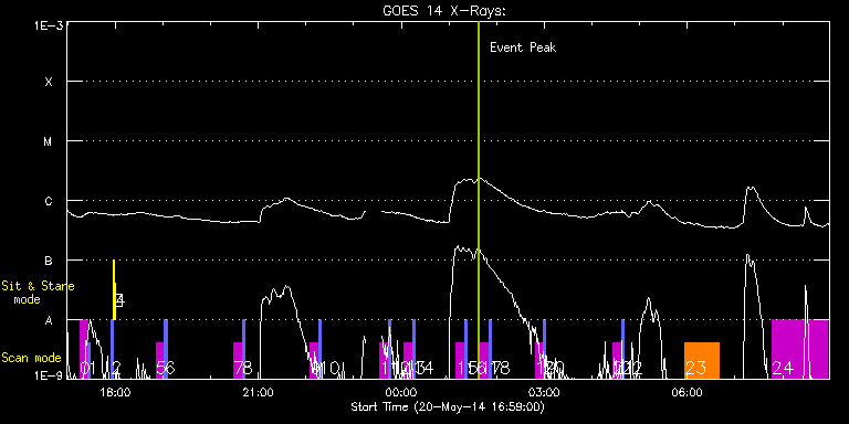 EIS Observation timeline overlay to GOES-Xray curve Code 1" 2" 40" 266" EIS Observations list for this event: STUDY ACRONYM ID DATE OBSERVED DESCRIPTION NOAA# TARGET 0 SK_DEEP_5x512_SLIT1 | 40596 | 2014/05/20 17:15:20 | HOP 79: solar irradiance scan (S-N). 4 | | Quiet Sun TIMELINE ID DATE OBSERVED FITS FILE XCEN (+W/-E) YCEN (+N/-S) DUR ----------------------------------------------------------------------------------------------------------------- 40596 | 2014/05/20 17:15:20.000 | eis_l0_20140520_171520.fits.gz | -11.96 | -685.46 | 10m8s 1 PRY_slot_contextLITE | 40597 | 2014/05/20 17:25:53 | HOP 79: solar irradiance scan (S-N). 4 | | Active Region TIMELINE ID DATE OBSERVED FITS FILE XCEN (+W/-E) YCEN (+N/-S) DUR ----------------------------------------------------------------------------------------------------------------- 40597 | 2014/05/20 17:25:53.000 | eis_l0_20140520_172553.fits.gz | -27.11 | -685.61 | 2m56s 2 PRY_slot_contextLITE | 40632 | 2014/05/20 17:54:40 | EIS-AIA alignment | | Active Region TIMELINE ID DATE OBSERVED FITS FILE XCEN (+W/-E) YCEN (+N/-S) DUR ----------------------------------------------------------------------------------------------------------------- 40632 | 2014/05/20 17:54:40.000 | eis_l0_20140520_175440.fits.gz | -15.21 | -0.35 | 2m57s 3 Alignment_266 | 40633 | 2014/05/20 17:57:55 | EIS-AIA alignment | | Quiet Sun TIMELINE ID DATE OBSERVED FITS FILE XCEN (+W/-E) YCEN (+N/-S) DUR ----------------------------------------------------------------------------------------------------------------- 40633 | 2014/05/20 17:57:55.000 | eis_l0_20140520_175755.fits.gz | -132.49 | -0.42 | 1m22s 4 XRT_synop_AIA | 40634 | 2014/05/20 18:00:02 | EIS-AIA alignment | | Quiet Sun TIMELINE ID DATE OBSERVED FITS FILE XCEN (+W/-E) YCEN (+N/-S) DUR ----------------------------------------------------------------------------------------------------------------- 40634 | 2014/05/20 18:00:02.000 | eis_l0_20140520_180002.fits.gz | -132.49 | -0.50 | 10s 5 SK_DEEP_5x512_SLIT1 | 40600 | 2014/05/20 18:51:33 | HOP 79: solar irradiance scan (S-N). 5 | | Quiet Sun TIMELINE ID DATE OBSERVED FITS FILE XCEN (+W/-E) YCEN (+N/-S) DUR ----------------------------------------------------------------------------------------------------------------- 40600 | 2014/05/20 18:51:33.000 | eis_l0_20140520_185133.fits.gz | -11.96 | -585.50 | 10m8s 6 PRY_slot_contextLITE | 40601 | 2014/05/20 19:02:07 | HOP 79: solar irradiance scan (S-N). 5 | | Active Region TIMELINE ID DATE OBSERVED FITS FILE XCEN (+W/-E) YCEN (+N/-S) DUR ----------------------------------------------------------------------------------------------------------------- 40601 | 2014/05/20 19:02:07.000 | eis_l0_20140520_190207.fits.gz | -27.11 | -585.50 | 2m56s 7 SK_DEEP_5x512_SLIT1 | 40602 | 2014/05/20 20:29:20 | HOP 79: solar irradiance scan (S-N). 6 | | Quiet Sun TIMELINE ID DATE OBSERVED FITS FILE XCEN (+W/-E) YCEN (+N/-S) DUR ----------------------------------------------------------------------------------------------------------------- 40602 | 2014/05/20 20:29:20.000 | eis_l0_20140520_202920.fits.gz | -11.88 | -485.31 | 10m7s 8 PRY_slot_contextLITE | 40603 | 2014/05/20 20:39:53 | HOP 79: solar irradiance scan (S-N). 6 | 2065 | Active Region TIMELINE ID DATE OBSERVED FITS FILE XCEN (+W/-E) YCEN (+N/-S) DUR ----------------------------------------------------------------------------------------------------------------- 40603 | 2014/05/20 20:39:53.000 | eis_l0_20140520_203953.fits.gz | -27.03 | -485.31 | 2m56s 9 SK_DEEP_5x512_SLIT1 | 40604 | 2014/05/20 22:05:20 | HOP 79: solar irradiance scan (S-N). 7 | | Quiet Sun TIMELINE ID DATE OBSERVED FITS FILE XCEN (+W/-E) YCEN (+N/-S) DUR ----------------------------------------------------------------------------------------------------------------- 40604 | 2014/05/20 22:05:20.000 | eis_l0_20140520_220520.fits.gz | -11.81 | -385.19 | 10m8s 10 PRY_slot_contextLITE | 40605 | 2014/05/20 22:15:53 | HOP 79: solar irradiance scan (S-N). 7 | 2065 | Active Region TIMELINE ID DATE OBSERVED FITS FILE XCEN (+W/-E) YCEN (+N/-S) DUR ----------------------------------------------------------------------------------------------------------------- 40605 | 2014/05/20 22:15:53.000 | eis_l0_20140520_221553.fits.gz | -27.03 | -385.19 | 2m56s 11 SK_DEEP_5x512_SLIT1 | 40606 | 2014/05/20 23:33:20 | HOP 79: solar irradiance scan (S-N). 8 | | Quiet Sun TIMELINE ID DATE OBSERVED FITS FILE XCEN (+W/-E) YCEN (+N/-S) DUR ----------------------------------------------------------------------------------------------------------------- 40606 | 2014/05/20 23:33:20.000 | eis_l0_20140520_233320.fits.gz | -11.96 | -285.47 | 10m7s 12 PRY_slot_contextLITE | 40607 | 2014/05/20 23:43:53 | HOP 79: solar irradiance scan (S-N). 8 | 2065 | Active Region TIMELINE ID DATE OBSERVED FITS FILE XCEN (+W/-E) YCEN (+N/-S) DUR ----------------------------------------------------------------------------------------------------------------- 40607 | 2014/05/20 23:43:53.000 | eis_l0_20140520_234353.fits.gz | -27.11 | -285.39 | 2m56s 13 SK_DEEP_5x512_SLIT1 | 40608 | 2014/05/21 00:03:20 | HOP 79: solar irradiance scan (S-N). 9 | | Quiet Sun TIMELINE ID DATE OBSERVED FITS FILE XCEN (+W/-E) YCEN (+N/-S) DUR ----------------------------------------------------------------------------------------------------------------- 40608 | 2014/05/21 00:03:20.000 | eis_l0_20140521_000320.fits.gz | -11.88 | -185.43 | 10m7s 14 PRY_slot_contextLITE | 40609 | 2014/05/21 00:13:53 | HOP 79: solar irradiance scan (S-N). 9 | 2065 | Active Region TIMELINE ID DATE OBSERVED FITS FILE XCEN (+W/-E) YCEN (+N/-S) DUR ----------------------------------------------------------------------------------------------------------------- 40609 | 2014/05/21 00:13:53.000 | eis_l0_20140521_001353.fits.gz | -27.11 | -185.51 | 2m56s 15 SK_DEEP_5x512_SLIT1 | 40610 | 2014/05/21 01:09:20 | HOP 79: solar irradiance scan (S-N). 1 | | Quiet Sun TIMELINE ID DATE OBSERVED FITS FILE XCEN (+W/-E) YCEN (+N/-S) 