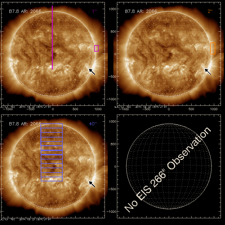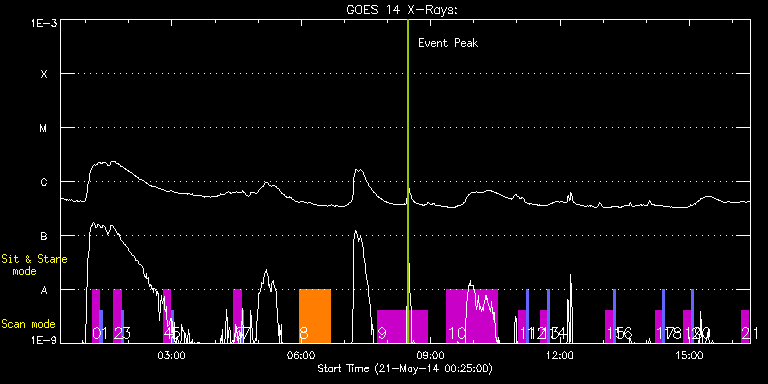 EIS Observation timeline overlay to GOES-Xray curve Code 1" 2" 40" 266" EIS Observations list for this event: STUDY ACRONYM ID DATE OBSERVED DESCRIPTION NOAA# TARGET 0 SK_DEEP_5x512_SLIT1 | 40610 | 2014/05/21 01:09:20 | HOP 79: solar irradiance scan (S-N). 1 | | Quiet Sun TIMELINE ID DATE OBSERVED FITS FILE XCEN (+W/-E) YCEN (+N/-S) DUR ----------------------------------------------------------------------------------------------------------------- 40610 | 2014/05/21 01:09:20.000 | eis_l0_20140521_010920.fits.gz | -11.96 | -85.24 | 10m7s 1 PRY_slot_contextLITE | 40611 | 2014/05/21 01:19:53 | HOP 79: solar irradiance scan (S-N). 1 | 2065 | Active Region TIMELINE ID DATE OBSERVED FITS FILE XCEN (+W/-E) YCEN (+N/-S) DUR ----------------------------------------------------------------------------------------------------------------- 40611 | 2014/05/21 01:19:53.000 | eis_l0_20140521_011953.fits.gz | -27.11 | -85.32 | 2m56s 2 SK_DEEP_5x512_SLIT1 | 40612 | 2014/05/21 01:39:20 | HOP 79: solar irradiance scan (S-N). 1 | | Quiet Sun TIMELINE ID DATE OBSERVED FITS FILE XCEN (+W/-E) YCEN (+N/-S) DUR ----------------------------------------------------------------------------------------------------------------- 40612 | 2014/05/21 01:39:20.000 | eis_l0_20140521_013920.fits.gz | -11.88 | 4.52 | 10m7s 3 PRY_slot_contextLITE | 40613 | 2014/05/21 01:49:53 | HOP 79: solar irradiance scan (S-N). 1 | | Active Region TIMELINE ID DATE OBSERVED FITS FILE XCEN (+W/-E) YCEN (+N/-S) DUR ----------------------------------------------------------------------------------------------------------------- 40613 | 2014/05/21 01:49:53.000 | eis_l0_20140521_014953.fits.gz | -27.03 | 4.60 | 2m56s 4 SK_DEEP_5x512_SLIT1 | 40614 | 2014/05/21 02:48:20 | HOP 79: solar irradiance scan (S-N). 1 | | Quiet Sun TIMELINE ID DATE OBSERVED FITS FILE XCEN (+W/-E) YCEN (+N/-S) DUR ----------------------------------------------------------------------------------------------------------------- 40614 | 2014/05/21 02:48:20.000 | eis_l0_20140521_024820.fits.gz | -11.88 | 104.79 | 10m7s 5 PRY_slot_contextLITE | 40615 | 2014/05/21 02:58:53 | HOP 79: solar irradiance scan (S-N). 1 | | Active Region TIMELINE ID DATE OBSERVED FITS FILE XCEN (+W/-E) YCEN (+N/-S) DUR ----------------------------------------------------------------------------------------------------------------- 40615 | 2014/05/21 02:58:53.000 | eis_l0_20140521_025853.fits.gz | -27.03 | 104.56 | 2m56s 6 SK_DEEP_5x512_SLIT1 | 40616 | 2014/05/21 04:26:20 | HOP 79: solar irradiance scan (S-N). 1 | | Quiet Sun TIMELINE ID DATE OBSERVED FITS FILE XCEN (+W/-E) YCEN (+N/-S) DUR ----------------------------------------------------------------------------------------------------------------- 40616 | 2014/05/21 04:26:20.000 | eis_l0_20140521_042620.fits.gz | -11.88 | 204.44 | 10m7s 7 PRY_slot_contextLITE | 40617 | 2014/05/21 04:36:53 | HOP 79: solar irradiance scan (S-N). 1 | | Active Region TIMELINE ID DATE OBSERVED FITS FILE XCEN (+W/-E) YCEN (+N/-S) DUR ----------------------------------------------------------------------------------------------------------------- 40617 | 2014/05/21 04:36:53.000 | eis_l0_20140521_043653.fits.gz | -27.11 | 204.44 | 2m56s 8 eis_tornadoes_scan_n | 40653 | 2014/05/21 05:57:03 | HOP 237. Prominence. W limb. | | Filament TIMELINE ID DATE OBSERVED FITS FILE XCEN (+W/-E) YCEN (+N/-S) DUR ----------------------------------------------------------------------------------------------------------------- 40653 | 2014/05/21 05:57:03.000 | eis_l0_20140521_055703.fits.gz | 979.47 | 117.57 | 43m3s 9 prom_rast_v1 | 40641 | 2014/05/21 07:46:26 | HOP 255. Prominence. W limb. | | Eruptive Filame TIMELINE ID DATE OBSERVED FITS FILE XCEN (+W/-E) YCEN (+N/-S) DUR ----------------------------------------------------------------------------------------------------------------- 40641 | 2014/05/21 07:46:26.000 | eis_l0_20140521_074626.fits.gz | 969.98 | 120.57 | 1h9m45s 10 prom_rast_v1 | 40642 | 2014/05/21 09:22:40 | HOP 255. Prominence. W limb. | | Eruptive Filame TIMELINE ID DATE OBSERVED FITS FILE XCEN (+W/-E) YCEN (+N/-S) DUR ----------------------------------------------------------------------------------------------------------------- 40642 | 2014/05/21 09:22:40.000 | eis_l0_20140521_092240.fits.gz | 970.05 | 120.57 | 1h9m44s 11 SK_DEEP_5x512_SLIT1 | 40618 | 2014/05/21 11:02:40 | HOP 79: solar irradiance scan (S-N). 1 | | Quiet Sun TIMELINE ID DATE OBSERVED FITS FILE XCEN (+W/-E) YCEN (+N/-S) DUR ----------------------------------------------------------------------------------------------------------------- 40618 | 2014/05/21 11:02:40.000 | eis_l0_20140521_110240.fits.gz | -11.96 | 304.32 | 10m8s 12 PRY_slot_contextLITE | 40619 | 2014/05/21 11:13:13 | HOP 79: solar irradiance scan (S-N). 1 | | Active Region TIMELINE ID DATE OBSERVED FITS FILE XCEN (+W/-E) YCEN (+N/-S) DUR ----------------------------------------------------------------------------------------------------------------- 40619 | 2014/05/21 11:13:13.000 | eis_l0_20140521_111313.fits.gz | -27.11 | 304.32 | 2m57s 13 SK_DEEP_5x512_SLIT1 | 40620 | 2014/05/21 11:32:19 | HOP 79: solar irradiance scan (S-N). 1 | | Quiet Sun TIMELINE ID DATE OBSERVED FITS FILE XCEN (+W/-E) YCEN (+N/-S) DUR ----------------------------------------------------------------------------------------------------------------- 40620 | 2014/05/21 11:32:19.000 | eis_l0_20140521_113219.fits.gz | -11.88 | 404.59 | 10m8s 14 PRY_slot_contextLITE | 40621 | 2014/05/21 11:42:52 | HOP 79: solar irradiance scan (S-N). 1 | | Active Region TIMELINE ID DATE OBSERVED FITS FILE XCEN (+W/-E) YCEN (+N/-S) DUR ----------------------------------------------------------------------------------------------------------------- 40621 | 2014/05/21 11:42:52.000 | eis_l0_20140521_114252.fits.gz | -27.11 | 404.51 | 2m57s 15 SK_DEEP_5x512_SLIT1 | 40622 | 2014/05/21 13:03:19 | HOP 79: solar irradiance scan (S-N). 1 | | Quiet Sun TIMELINE ID DATE OBSERVED FITS FILE XCEN (+W/-E)