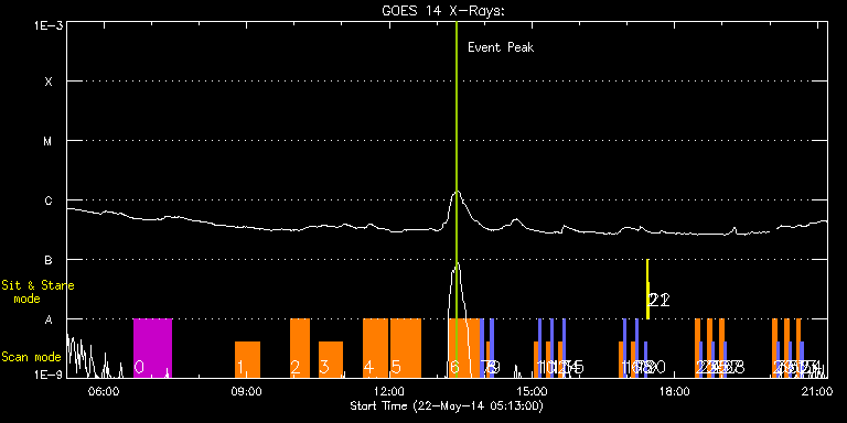 EIS Observation timeline overlay to GOES-Xray curve Code 1" 2" 40" 266" EIS Observations list for this event: STUDY ACRONYM ID DATE OBSERVED DESCRIPTION NOAA# TARGET 0 HPW021_VEL_120x512v2 | 40657 | 2014/05/22 06:38:26 | Active region 12063. Raster scan. | | Active Region TIMELINE ID DATE OBSERVED FITS FILE XCEN (+W/-E) YCEN (+N/-S) DUR ----------------------------------------------------------------------------------------------------------------- 40657 | 2014/05/22 06:38:26.000 | eis_l0_20140522_063826.fits.gz | 759.09 | 70.39 | 46m54s 1 madj_qs | 40655 | 2014/05/22 08:46:26 | HOP 255. Filament, NW hemisphere. | | Quiet Sun TIMELINE ID DATE OBSERVED FITS FILE XCEN (+W/-E) YCEN (+N/-S) DUR ----------------------------------------------------------------------------------------------------------------- 40655 | 2014/05/22 08:46:26.000 | eis_l0_20140522_084626.fits.gz | -423.64 | -33.53 | 30m7s 2 madj_qs | 40645 | 2014/05/22 09:55:12 | HOP 255. Filament, NW hemisphere. | | Quiet Sun TIMELINE ID DATE OBSERVED FITS FILE XCEN (+W/-E) YCEN (+N/-S) DUR ----------------------------------------------------------------------------------------------------------------- 40645 | 2014/05/22 09:55:12.000 | eis_l0_20140522_095512.fits.gz | -414.13 | -33.30 | 23m14s 3 madj_qs | 40658 | 2014/05/22 10:31:14 | HOP 255. Prominence, W limb. | | Quiet Sun TIMELINE ID DATE OBSERVED FITS FILE XCEN (+W/-E) YCEN (+N/-S) DUR ----------------------------------------------------------------------------------------------------------------- 40658 | 2014/05/22 10:31:14.000 | eis_l0_20140522_103114.fits.gz | 904.67 | 317.72 | 30m7s 4 madj_qs | 40659 | 2014/05/22 11:27:14 | HOP 255. Prominence, W limb. | | Quiet Sun TIMELINE ID DATE OBSERVED FITS FILE XCEN (+W/-E) YCEN (+N/-S) DUR ----------------------------------------------------------------------------------------------------------------- 40659 | 2014/05/22 11:27:14.000 | eis_l0_20140522_112714.fits.gz | 904.59 | 317.72 | 30m7s 5 Fast_moss_scan | 40660 | 2014/05/22 12:02:14 | HOP 247. Active region moss. Fast scan | | Active Region TIMELINE ID DATE OBSERVED FITS FILE XCEN (+W/-E) YCEN (+N/-S) DUR ----------------------------------------------------------------------------------------------------------------- 40660 | 2014/05/22 12:02:14.000 | eis_l0_20140522_120214.fits.gz | -684.17 | -209.18 | 18s 40660 | 2014/05/22 12:02:35.000 | eis_l0_20140522_120235.fits.gz | -684.25 | -209.26 | 19s 40660 | 2014/05/22 12:02:56.000 | eis_l0_20140522_120256.fits.gz | -684.25 | -209.18 | 19s 40660 | 2014/05/22 12:03:18.000 | eis_l0_20140522_120318.fits.gz | -684.10 | -209.26 | 18s 40660 | 2014/05/22 12:03:39.000 | eis_l0_20140522_120339.fits.gz | -684.17 | -209.34 | 18s 40660 | 2014/05/22 12:04:00.000 | eis_l0_20140522_120400.fits.gz | -684.10 | -209.18 | 19s 40660 | 2014/05/22 12:04:22.000 | eis_l0_20140522_120422.fits.gz | -684.02 | -209.26 | 18s 40660 | 2014/05/22 12:04:43.000 | eis_l0_20140522_120443.fits.gz | -684.02 | -209.18 | 18s 40660 | 2014/05/22 12:05:04.000 | eis_l0_20140522_120504.fits.gz | -683.94 | -209.26 | 19s 40660 | 2014/05/22 12:05:26.000 | eis_l0_20140522_120526.fits.gz | -683.86 | -209.26 | 18s 40660 | 2014/05/22 12:05:47.000 | eis_l0_20140522_120547.fits.gz | -683.94 | -209.26 | 18s 40660 | 2014/05/22 12:06:08.000 | eis_l0_20140522_120608.fits.gz | -683.86 | -209.03 | 19s 40660 | 2014/05/22 12:06:30.000 | eis_l0_20140522_120630.fits.gz | -683.86 | -209.03 | 18s 40660 | 2014/05/22 12:06:51.000 | eis_l0_20140522_120651.fits.gz | -683.86 | -209.11 | 19s 40660 | 2014/05/22 12:07:12.000 | eis_l0_20140522_120712.fits.gz | -683.79 | -209.18 | 19s 40660 | 2014/05/22 12:07:34.000 | eis_l0_20140522_120734.fits.gz | -683.79 | -209.03 | 18s 40660 | 2014/05/22 12:07:55.000 | eis_l0_20140522_120755.fits.gz | -683.79 | -209.03 | 18s 40660 | 2014/05/22 12:08:16.000 | eis_l0_20140522_120816.fits.gz | -683.63 | -209.11 | 18s 40660 | 2014/05/22 12:08:37.000 | eis_l0_20140522_120837.fits.gz | -683.71 | -208.88 | 18s 40660 | 2014/05/22 12:08:58.000 | eis_l0_20140522_120858.fits.gz | -683.63 | -209.11 | 19s 40660 | 2014/05/22 12:09:20.000 | eis_l0_20140522_120920.fits.gz | -683.55 | -208.95 | 18s 40660 | 2014/05/22 12:09:41.000 | eis_l0_20140522_120941.fits.gz | -683.55 | -209.03 | 19s 40660 | 2014/05/22 12:10:02.000 | eis_l0_20140522_121002.fits.gz | -683.55 | -208.88 | 19s 40660 | 2014/05/22 12:10:24.000 | eis_l0_20140522_121024.fits.gz | -683.55 | -208.95 | 18s 40660 | 2014/05/22 12:10:45.000 | eis_l0_20140522_121045.fits.gz | -683.48 | -209.03 | 18s 40660 | 2014/05/22 12:11:06.000 | eis_l0_20140522_121106.fits.gz | -683.40 | -209.11 | 18s 40660 | 2014/05/22 12:11:27.000 | eis_l0_20140522_121127.fits.gz | -683.32 | -208.95 | 19s 40660 | 2014/05/22 12:11:48.000 | eis_l0_20140522_121148.fits.gz | -683.32 | -209.11 | 19s 40660 | 2014/05/22 12:12:10.000 | eis_l0_20140522_121210.fits.gz | -683.25 | -208.88 | 18s 40660 | 2014/05/22 12:12:31.000 | eis_l0_20140522_121231.fits.gz | -683.25 | -208.88 | 19s 40660 | 2014/05/22 12:12:53.000 | eis_l0_20140522_121253.fits.gz | -683.17 | -209.03 | 18s 40660 | 2014/05/22 12:13:14.000 | eis_l0_20140522_121314.fits.gz | -683.17 | -208.95 | 18s 40660 | 2014/05/22 12:13:35.000 | eis_l0_20140522_121335.fits.gz | -683.17 | -209.11 | 19s 40660 | 2014/05/22 12:13:57.000 | eis_l0_20140522_121357.fits.gz | -683.09 | -208.95 | 18s 40660 | 2014/05/22 12:14:18.000 | eis_l0_20140522_121418.fits.gz | -683.17 | -208.88 | 18s 40660 | 2014/05/22 12:14:39.000 | eis_l0_20140522_121439.fits.gz | -683.02 | -209.03 | 19s 40660 | 2014/05/22 12:15:00.000 | eis_l0_20140522_121500.fits.gz | -683.02 | -208.88 | 19s 40660 | 2014/05/22 12:15:22.000 | eis_l0_20140522_121522.fits.gz | -683.02 | -208.88 | 18s 40660 | 2014/05/22 12:15:43.000 | eis_l0_20140522_121543.fits.gz | -682.94 | -208.95 | 19s 40660 | 2014/05/22 12:16:05.000 | eis_l0_20140522_121605.fits.gz | -682.86 | -208.95 | 18s 40660 | 2014/05/22 12:16:26.000 | eis_l0_20140522_121626.fits.gz | -682.86 | -208.95 | 18s 40