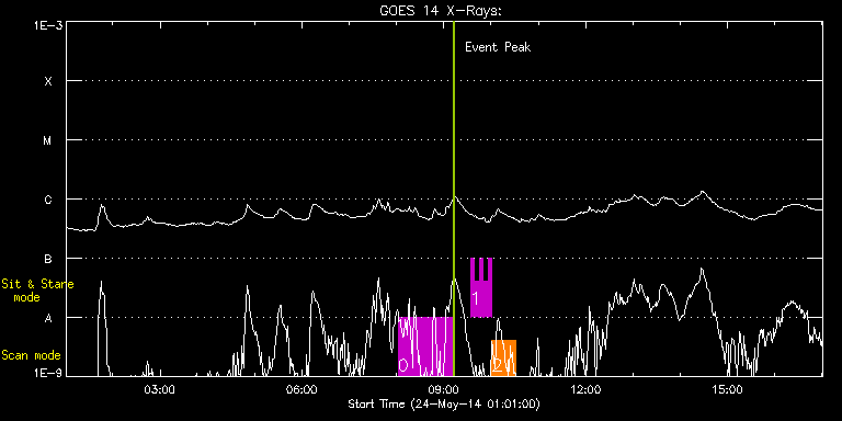 EIS Observation timeline overlay to GOES-Xray curve Code 1" 2" 40" 266" EIS Observations list for this event: STUDY ACRONYM ID DATE OBSERVED DESCRIPTION NOAA# TARGET 0 prom_rast_v1 | 40721 | 2014/05/24 08:02:13 | HOP 255. Prominence, NW limb. | | Eruptive Filame TIMELINE ID DATE OBSERVED FITS FILE XCEN (+W/-E) YCEN (+N/-S) DUR ----------------------------------------------------------------------------------------------------------------- 40721 | 2014/05/24 08:02:13.000 | eis_l0_20140524_080213.fits.gz | 890.22 | 338.68 | 1h9m44s 1 HPW023_FULLCCD_V2 | 40722 | 2014/05/24 09:34:13 | HOP 255. Prominence, NW limb. | | Quiet Sun TIMELINE ID DATE OBSERVED FITS FILE XCEN (+W/-E) YCEN (+N/-S) DUR ----------------------------------------------------------------------------------------------------------------- 40722 | 2014/05/24 09:34:13.000 | eis_l0_20140524_093413.fits.gz | 889.91 | 338.68 | 5m 40722 | 2014/05/24 09:39:40.000 | eis_l0_20140524_093940.fits.gz | 890.07 | 338.60 | 5m1s 40722 | 2014/05/24 09:45:08.000 | eis_l0_20140524_094508.fits.gz | 889.99 | 338.52 | 5m 40722 | 2014/05/24 09:50:35.000 | eis_l0_20140524_095035.fits.gz | 889.99 | 338.60 | 5m 40722 | 2014/05/24 09:56:02.000 | eis_l0_20140524_095602.fits.gz | 890.07 | 338.60 | 5m 2 madj_qs | 40723 | 2014/05/24 10:01:29 | HOP 255. Prominence, NW limb. | | Quiet Sun TIMELINE ID DATE OBSERVED FITS FILE XCEN (+W/-E) YCEN (+N/-S) DUR ----------------------------------------------------------------------------------------------------------------- 40723 | 2014/05/24 10:01:29.000 | eis_l0_20140524_100129.fits.gz | 889.51 | 338.60 | 30m8s : Check study information : Download file : View thumbnails For this event, also check for: