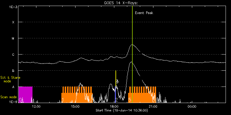 EIS Observation timeline overlay to GOES-Xray curve Code 1" 2" 40" 266" EIS Observations list for this event: STUDY ACRONYM ID DATE OBSERVED DESCRIPTION NOAA# TARGET 0 HPW021_VEL_120x512v1 | 41190 | 2014/06/19 10:38:56 | Active Region Studies | 2087 | Active Region TIMELINE ID DATE OBSERVED FITS FILE XCEN (+W/-E) YCEN (+N/-S) DUR ----------------------------------------------------------------------------------------------------------------- 41190 | 2014/06/19 10:38:56.000 | eis_l0_20140619_103856.fits.gz | 566.32 | -294.34 | 1h1m53s 1 HH_Flare+AR_180x152H | 41180 | 2014/06/19 13:55:56 | Flare watch AR 12087 | 2087 | Flare TIMELINE ID DATE OBSERVED FITS FILE XCEN (+W/-E) YCEN (+N/-S) DUR ----------------------------------------------------------------------------------------------------------------- 41180 | 2014/06/19 13:55:56.000 | eis_l0_20140619_135556.fits.gz | 585.75 | -294.11 | 5m18s 41180 | 2014/06/19 14:01:17.000 | eis_l0_20140619_140117.fits.gz | 586.37 | -294.26 | 5m18s 41180 | 2014/06/19 14:06:38.000 | eis_l0_20140619_140638.fits.gz | 586.91 | -294.11 | 5m18s 41180 | 2014/06/19 14:11:59.000 | eis_l0_20140619_141159.fits.gz | 587.53 | -294.26 | 5m18s 41180 | 2014/06/19 14:17:20.000 | eis_l0_20140619_141720.fits.gz | 588.07 | -294.03 | 5m18s 41180 | 2014/06/19 14:22:41.000 | eis_l0_20140619_142241.fits.gz | 588.61 | -294.26 | 5m18s 41180 | 2014/06/19 14:28:02.000 | eis_l0_20140619_142802.fits.gz | 589.22 | -294.18 | 5m18s 41180 | 2014/06/19 14:33:22.000 | eis_l0_20140619_143322.fits.gz | 589.77 | -294.18 | 5m18s 41180 | 2014/06/19 14:38:43.000 | eis_l0_20140619_143843.fits.gz | 590.31 | -294.18 | 5m18s 41180 | 2014/06/19 14:44:04.000 | eis_l0_20140619_144404.fits.gz | 590.92 | -294.26 | 5m18s 41180 | 2014/06/19 14:49:25.000 | eis_l0_20140619_144925.fits.gz | 591.39 | -294.11 | 5m18s 41180 | 2014/06/19 14:54:46.000 | eis_l0_20140619_145446.fits.gz | 592.08 | -294.18 | 5m18s 41180 | 2014/06/19 15:00:07.000 | eis_l0_20140619_150007.fits.gz | 592.62 | -294.11 | 5m17s 41180 | 2014/06/19 15:05:27.000 | eis_l0_20140619_150527.fits.gz | 593.09 | -294.11 | 5m17s 41180 | 2014/06/19 15:10:47.000 | eis_l0_20140619_151047.fits.gz | 593.71 | -294.11 | 5m19s 41180 | 2014/06/19 15:16:09.000 | eis_l0_20140619_151609.fits.gz | 594.25 | -294.03 | 5m18s 41180 | 2014/06/19 15:21:30.000 | eis_l0_20140619_152130.fits.gz | 594.71 | -293.80 | 5m18s 41180 | 2014/06/19 15:26:51.000 | eis_l0_20140619_152651.fits.gz | 595.48 | -293.95 | 5m18s 41180 | 2014/06/19 15:32:12.000 | eis_l0_20140619_153212.fits.gz | 595.95 | -294.11 | 5m18s 41180 | 2014/06/19 15:37:33.000 | eis_l0_20140619_153733.fits.gz | 596.49 | -294.03 | 5m19s 41180 | 2014/06/19 15:42:54.000 | eis_l0_20140619_154254.fits.gz | 597.10 | -294.11 | 5m18s 41180 | 2014/06/19 15:48:15.000 | eis_l0_20140619_154815.fits.gz | 597.65 | -294.11 | 5m18s 41180 | 2014/06/19 15:53:36.000 | eis_l0_20140619_155336.fits.gz | 598.19 | -294.03 | 5m18s 41180 | 2014/06/19 15:58:57.000 | eis_l0_20140619_155857.fits.gz | 598.73 | -293.95 | 5m18s 41180 | 2014/06/19 16:04:18.000 | eis_l0_20140619_160418.fits.gz | 599.34 | -293.95 | 5m18s 41180 | 2014/06/19 16:09:39.000 | eis_l0_20140619_160939.fits.gz | 599.89 | -293.95 | 5m17s 41180 | 2014/06/19 16:14:59.000 | eis_l0_20140619_161459.fits.gz | 600.35 | -293.95 | 5m17s 2 PRY_slot_contextLITE | 41120 | 2014/06/19 18:03:19 | synoptic | | Active Region TIMELINE ID DATE OBSERVED FITS FILE XCEN (+W/-E) YCEN (+N/-S) DUR ----------------------------------------------------------------------------------------------------------------- 41120 | 2014/06/19 18:03:19.000 | eis_l0_20140619_180319.fits.gz | -15.29 | -0.27 | 2m57s 3 Alignment_266 | 41121 | 2014/06/19 18:06:34 | synoptic | | Quiet Sun TIMELINE ID DATE OBSERVED FITS FILE XCEN (+W/-E) YCEN (+N/-S) DUR ----------------------------------------------------------------------------------------------------------------- 41121 | 2014/06/19 18:06:34.000 | eis_l0_20140619_180634.fits.gz | -132.57 | -0.50 | 1m22s 4 XRT_synop_AIA | 41122 | 2014/06/19 18:08:41 | synoptic | | Quiet Sun TIMELINE ID DATE OBSERVED FITS FILE XCEN (+W/-E) YCEN (+N/-S) DUR ----------------------------------------------------------------------------------------------------------------- 41122 | 2014/06/19 18:08:41.000 | eis_l0_20140619_180841.fits.gz | -132.57 | -0.50 | 10s 5 HH_Flare+AR_180x152H | 41171 | 2014/06/19 19:05:18 | Flare watch AR 12087 | | Flare TIMELINE ID DATE OBSERVED FITS FILE XCEN (+W/-E) YCEN (+N/-S) DUR ----------------------------------------------------------------------------------------------------------------- 41171 | 2014/06/19 19:05:18.000 | eis_l0_20140619_190518.fits.gz | 627.95 | -293.64 | 5m18s 41171 | 2014/06/19 19:10:39.000 | eis_l0_20140619_191039.fits.gz | 628.49 | -293.72 | 5m17s 41171 | 2014/06/19 19:15:59.000 | eis_l0_20140619_191559.fits.gz | 629.03 | -293.72 | 5m17s 41171 | 2014/06/19 19:21:19.000 | eis_l0_20140619_192119.fits.gz | 629.57 | -293.72 | 5m17s 41171 | 2014/06/19 19:26:39.000 | eis_l0_20140619_192639.fits.gz | 630.11 | -293.72 | 5m17s 41171 | 2014/06/19 19:31:59.000 | eis_l0_20140619_193159.fits.gz | 630.57 | -293.64 | 5m18s 41171 | 2014/06/19 19:37:19.000 | eis_l0_20140619_193719.fits.gz | 631.11 | -293.64 | 5m18s 41171 | 2014/06/19 19:42:40.000 | eis_l0_20140619_194240.fits.gz | 631.73 | -293.56 | 5m18s 41171 | 2014/06/19 19:48:01.000 | eis_l0_20140619_194801.fits.gz | 632.27 | -293.56 | 5m18s 41171 | 2014/06/19 19:53:21.000 | eis_l0_20140619_195321.fits.gz | 632.81 | -293.56 | 5m18s 41171 | 2014/06/19 19:58:42.000 | eis_l0_20140619_195842.fits.gz | 633.28 | -293.56 | 5m17s 41171 | 2014/06/19 20:04:02.000 | eis_l0_20140619_200402.fits.gz | 633.82 | -293.64 | 5m19s 41171 | 2014/06/19 20:09:24.000 | eis_l0_20140619_200924.fits.gz | 634.36 | -293.56 | 5m17s 41171 | 2014/06/19 20:14:44.000 | eis_l0_20140619_201444.fits.gz | 634.97 | -293.49 | 5m18s 41171 | 2014/06/19 20:20:05.000 | eis_l0_20140619_202005.fits.gz | 635.52 | -293.49 | 5m18s 41171 | 2014/06/19 20:25: